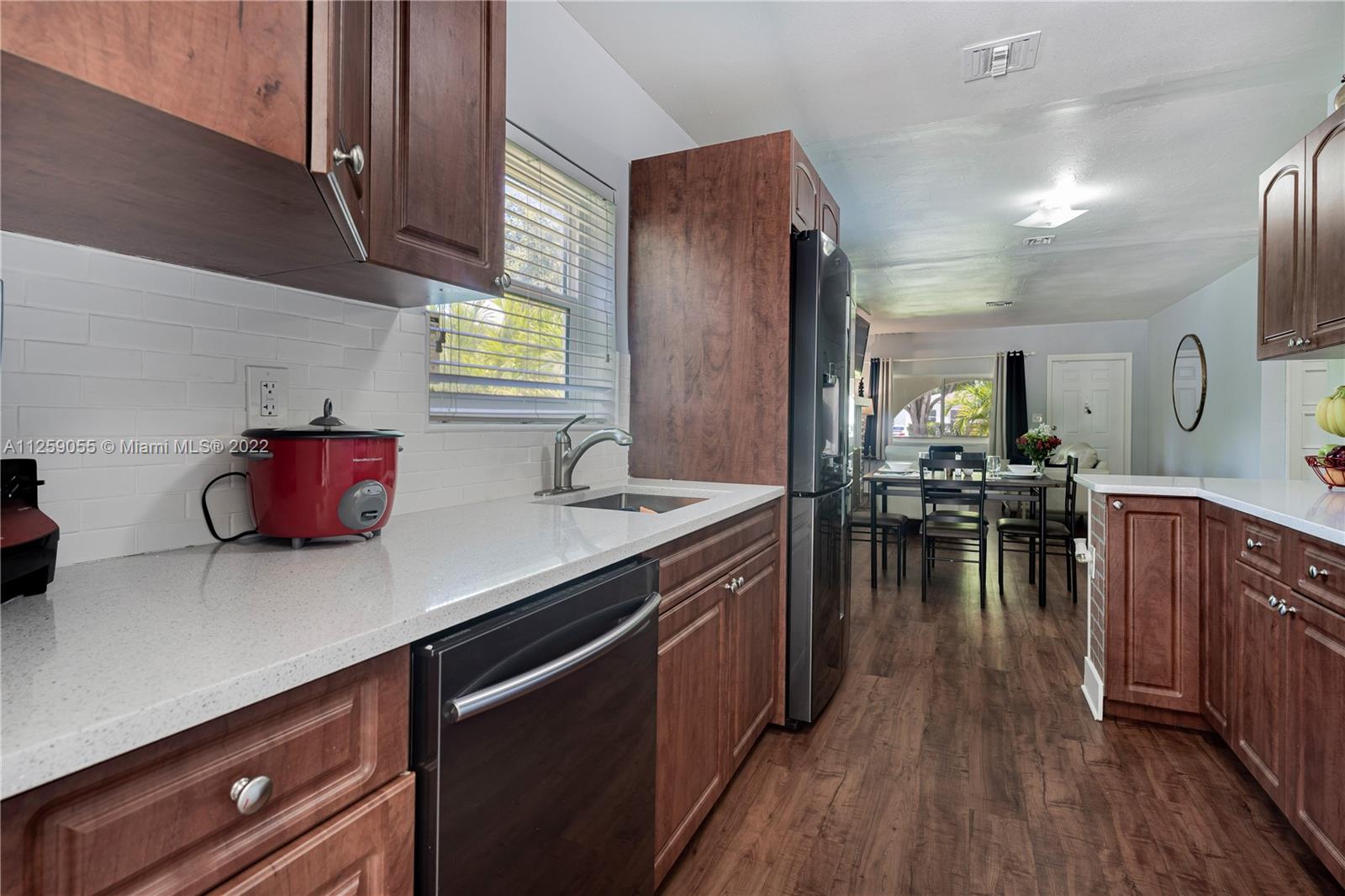 Welcome to Miami Shores One of the Most Desirable Neighborhoods in Miami. This Cozy home is waiting for you! Multiple recent renovations have been done to this charming home. Including a New Kitchen, a New Bathroom, New Floors, a New electric fence, and a New driveway in the rear entrance of the house. Tile roof and impact windows are only 7 years old. Attached carport and space to fit over 5 cars. Large fenced lot with storage shed. Permits Approved with the city for additional living area structure. Plenty of room for a pool. Super quiet and peaceful.