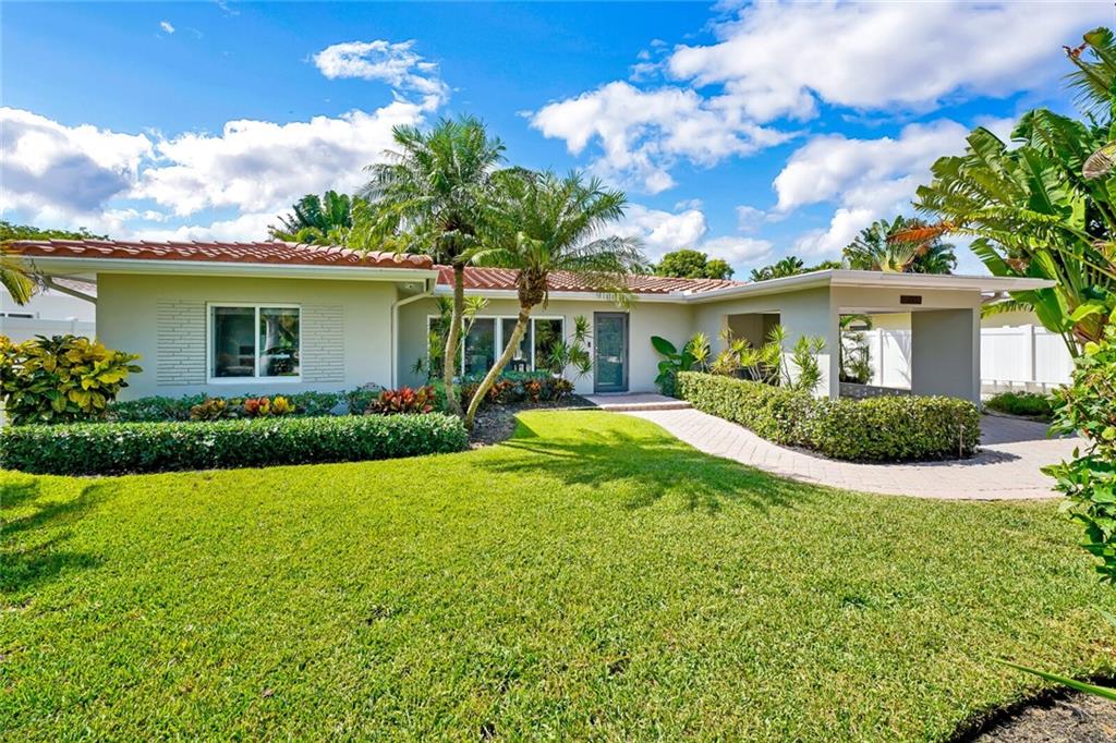 Tranquility and privacy are yours in this pristine residence, located on the most desirable street in Poinsettia Heights. Manicured landscaping, paved drive and walkway welcome you to this well-appointed East Lauderdale home. Wood plank floors flow throughout this 1800 sq ft open floor plan. Spacious master bedroom suite plus functional split bedroom plan. Warm white kitchen featuring newer SS appliances, ample storage, recessed LED lighting, waterfall island w/seating. South facing, palm-shaded patio plus hot tub for ultimate, year-round relaxation. Meticulously maintained and features new A/C 2021, impact windows/doors, newer S-tile roof, separate meter for irrigation with smart-controlled sprinklers, underground electric + portable generator hook-up. Previous buyer default. Tour today!