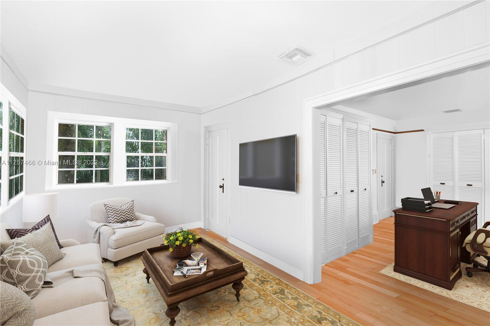 Designed by one of the architects of famed Vizcaya with impeccable woodwork, high ceilings, and large entertaining spaces, this historic estate on a waterfront street in Coconut Grove wows with character, charm, and warmth. Updated kitchen. Hardwood floors throughout. Serene, lush tropical courtyard and grounds. Two-story guest house with one bedroom apartment including full kitchen and separate laundry/storage. Ample parking for 5+ cars. Just steps from the bay and walking distance to parks, yacht clubs, and a top private school. Short drive to all the great restaurants, shopping and entertainment in Coconut Grove’s village center, Brickell/Downtown, and Coral Gables. **Some photos virtually staged/renovated. Please see unedited photos at the end of the series.