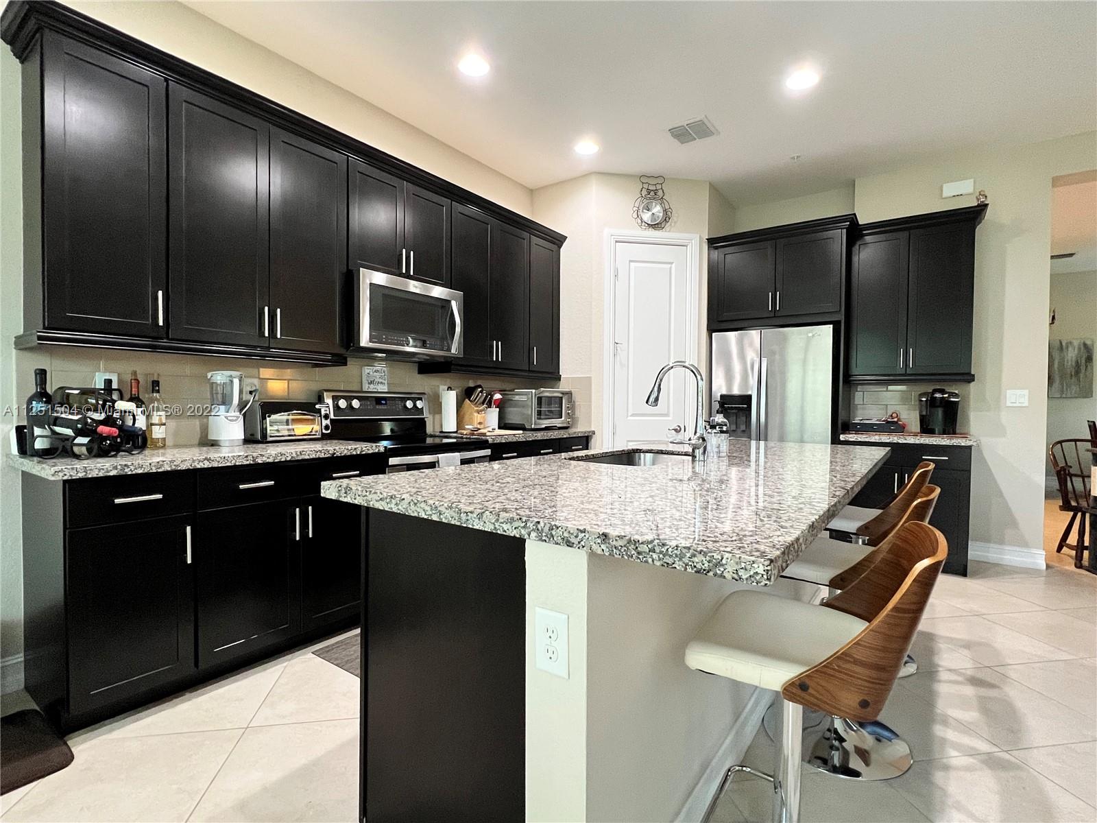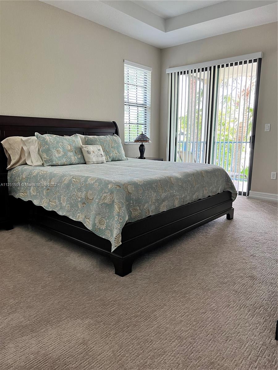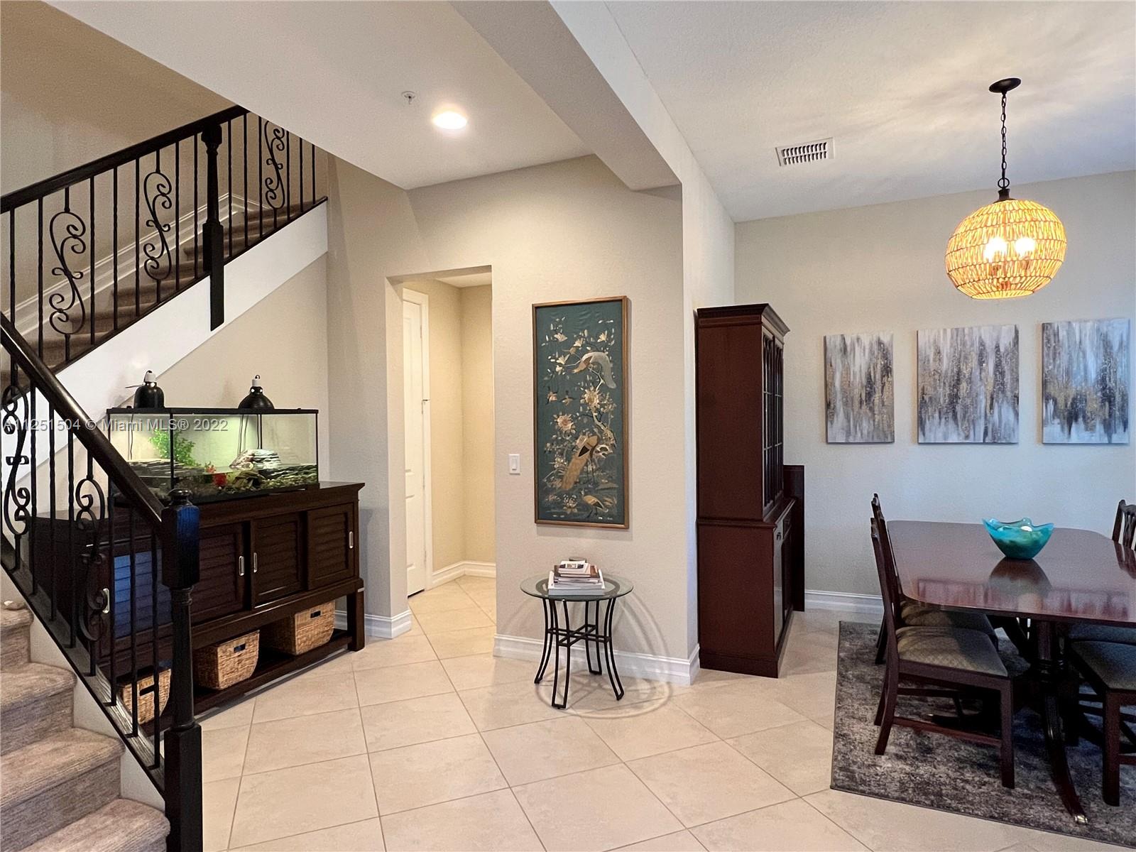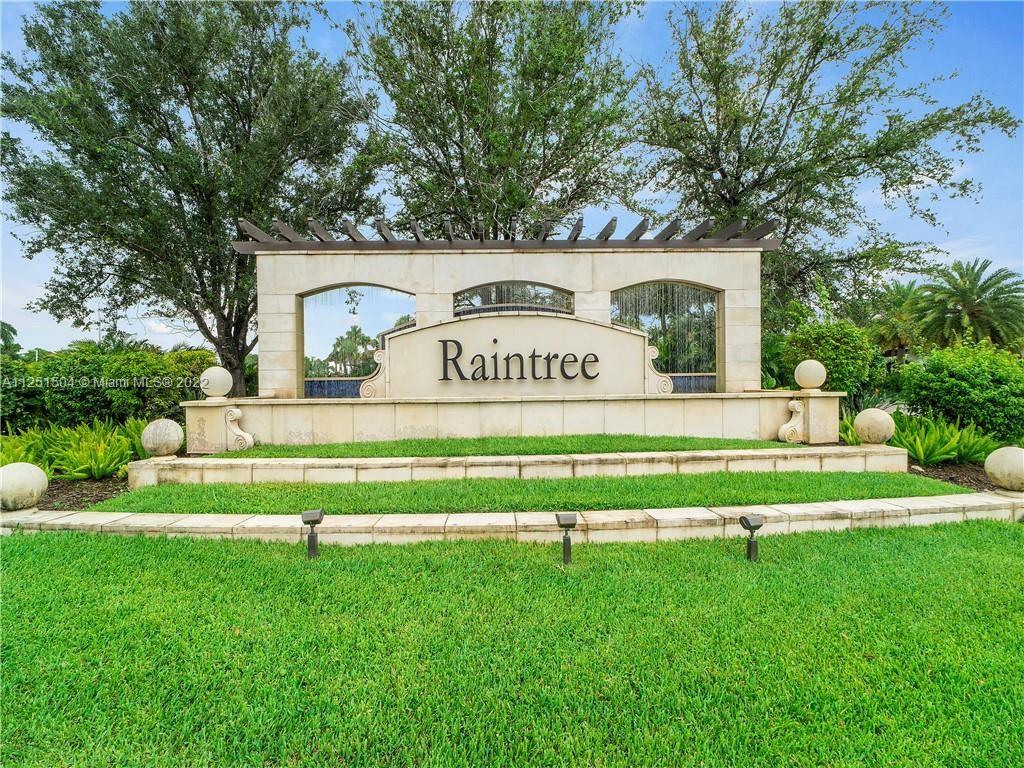 Welcome to Raintree! This 2-story Sonoma model is the largest corner unit townhouse & feels like a single-family home boasting 2,246 sq ft. The home is surrounded by thick, lush foliage which adds a comforting feel of privacy. Spacious open floor plan with impact windows on three sides for an open, bright feel. Large kitchen island and 42'' cabinets for extra space. Porcelain tile on main floor and updated carpet on stairs, landing and bedrooms. Large master suite w/ 2 large walk-in closets & a master bath featuring dual sinks, frameless shower enclosure & soaking tub. Large balcony off master bedroom with sunset view. Landscaped back yard with lighting. Ideally located next to the entrance, clubhouse, pool, mail kiosk and more.