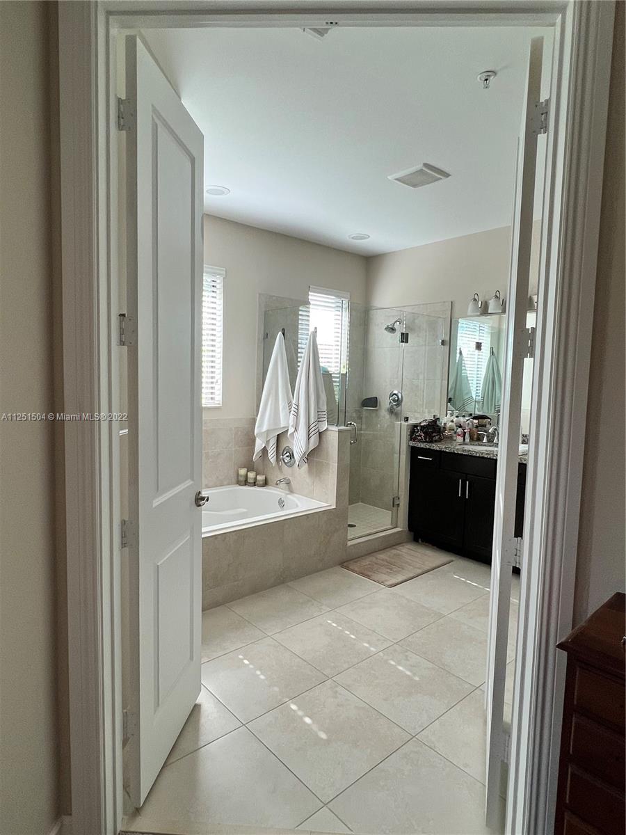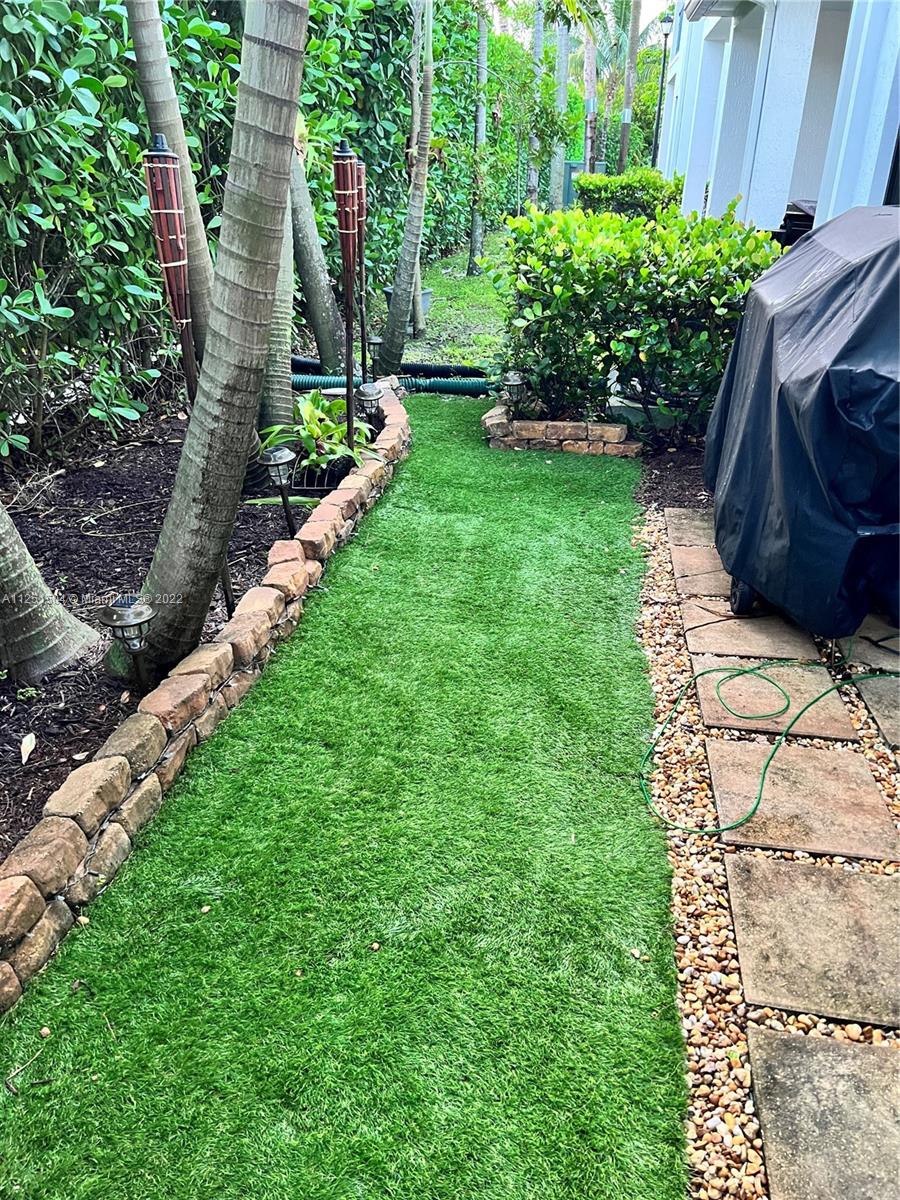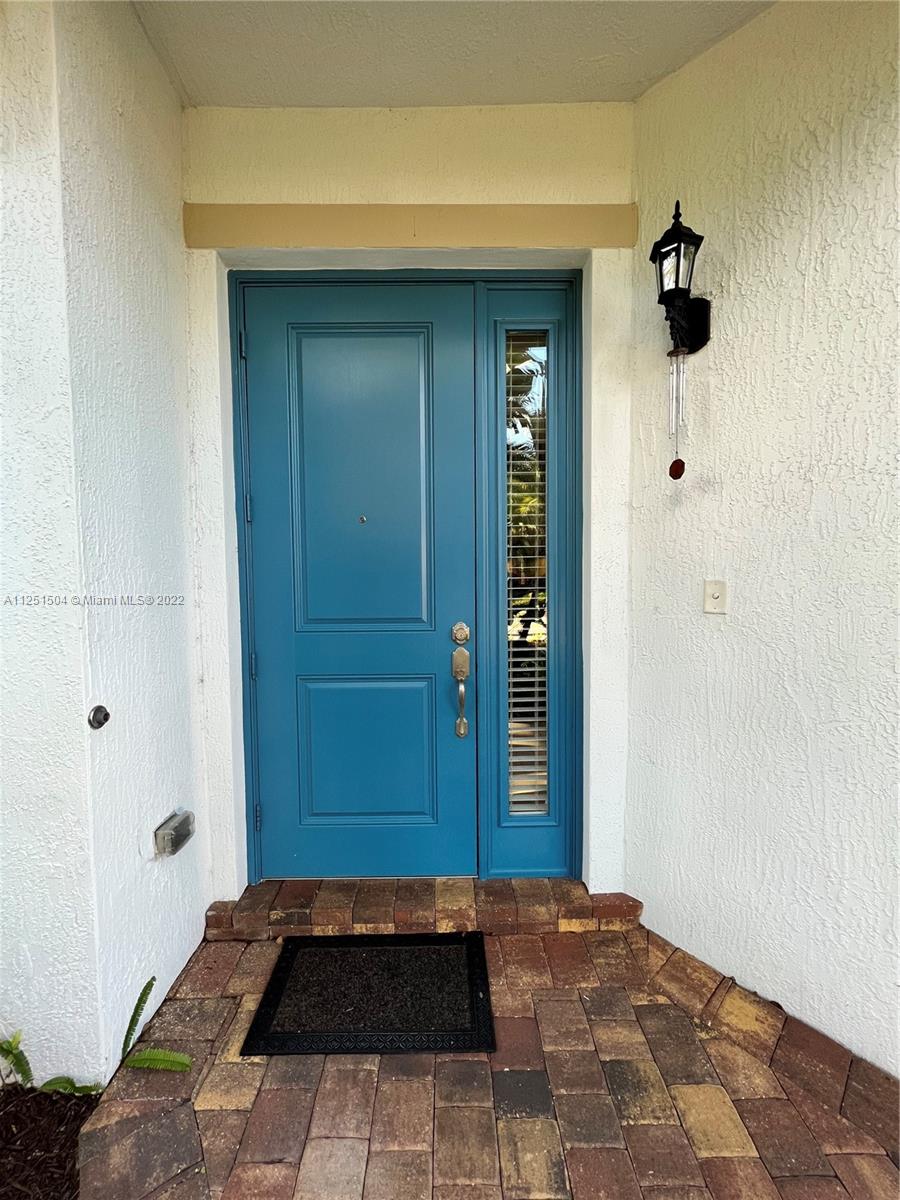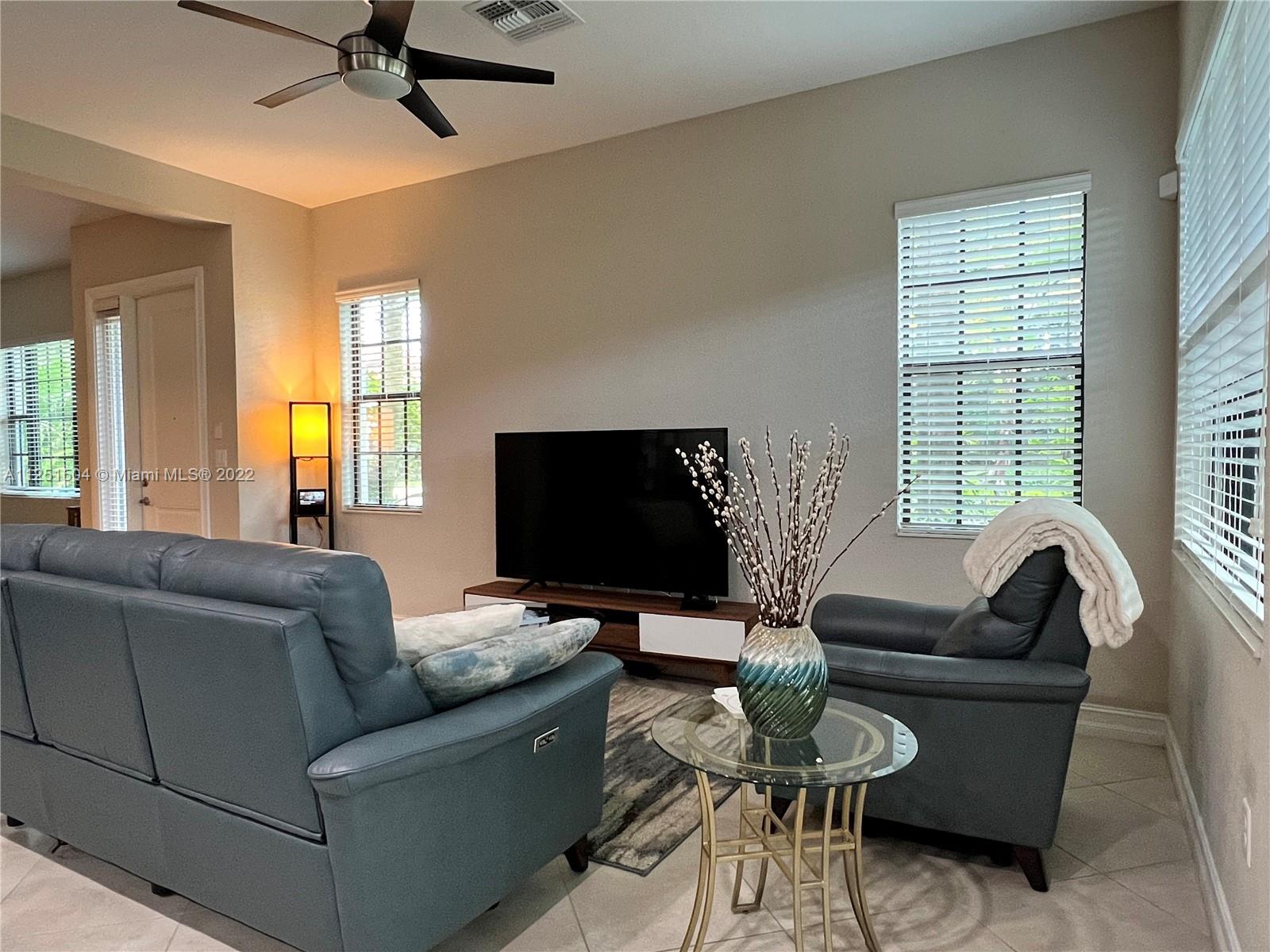 Welcome to Raintree! This 2-story Sonoma model is the largest corner unit townhouse & feels like a single-family home boasting 2,246 sq ft. The home is surrounded by thick, lush foliage which adds a comforting feel of privacy. Spacious open floor plan with impact windows on three sides for an open, bright feel. Large kitchen island and 42'' cabinets for extra space. Porcelain tile on main floor and updated carpet on stairs, landing and bedrooms. Large master suite w/ 2 large walk-in closets & a master bath featuring dual sinks, frameless shower enclosure & soaking tub. Large balcony off master bedroom with sunset view. Landscaped back yard with lighting. Ideally located next to the entrance, clubhouse, pool, mail kiosk and more.