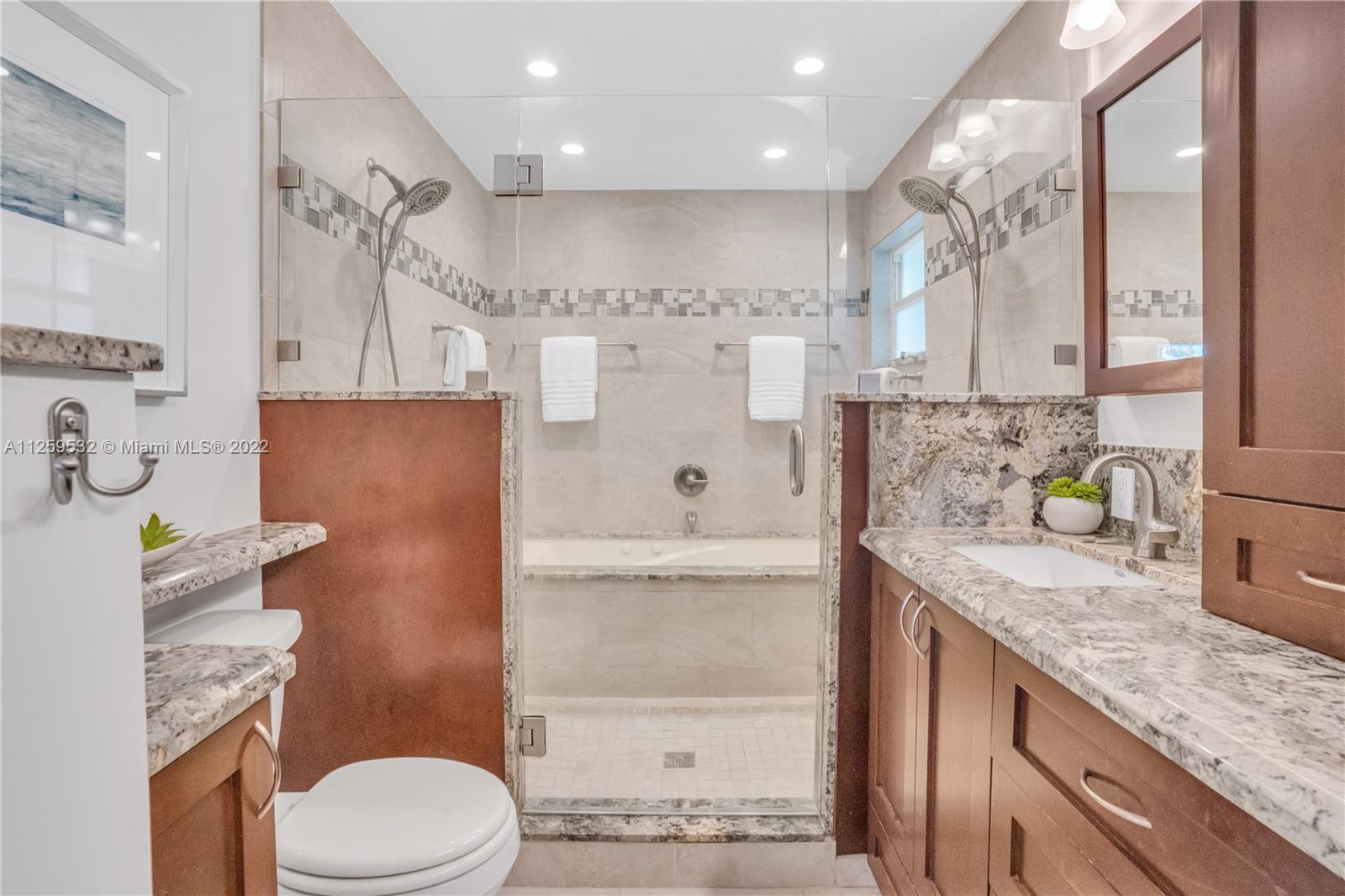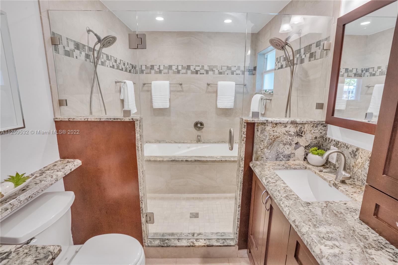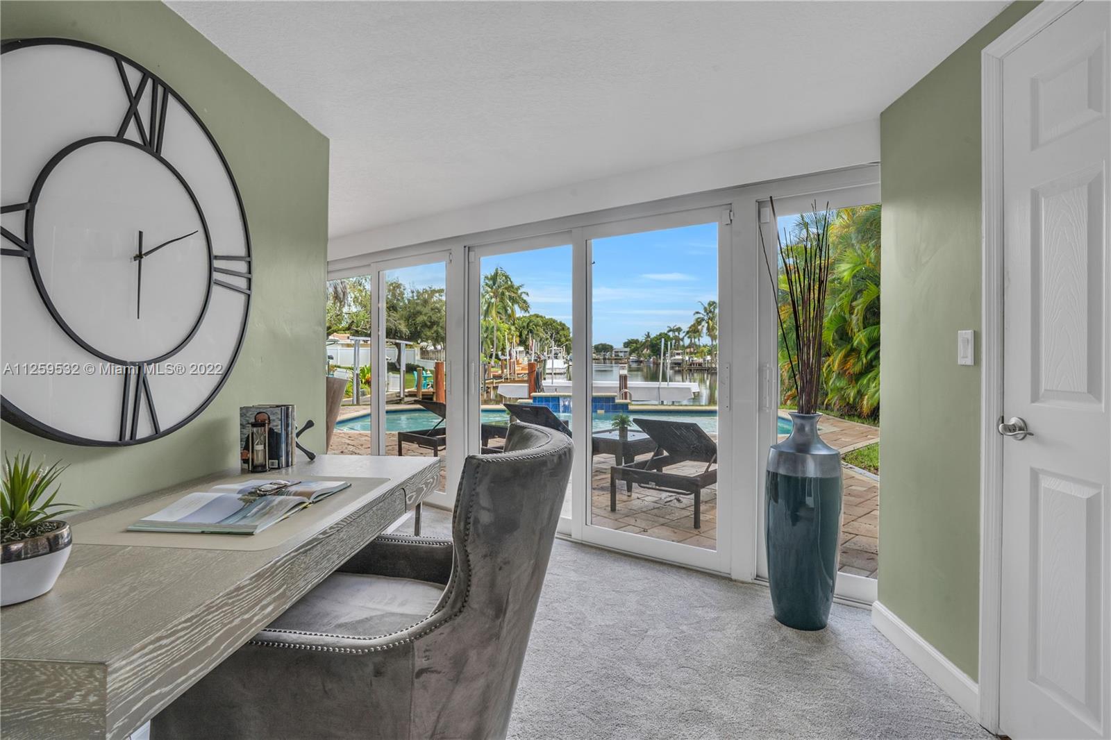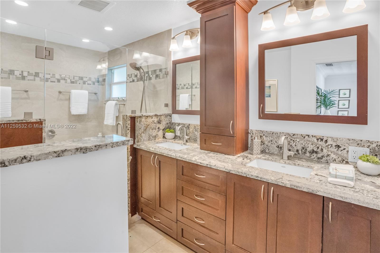 Charming updated waterfront pool home in Pompano Beach! Stunning water views from almost every room, wood & tile floors throughout the living areas w/ great natural light. Well-appointed kitchen w/ granite countertops, solid wood cabinetry, stainless steel appliances & open bar to the dining room. Double master suites, w/ large walk in closets & private bathrooms w/ the main featuring jacuzzi tub, extra large shower & double vanities. Indoor outdoor living under the waterfront seminole tiki hut, saltwater pool w/ waterfall & patio that opens from the wall of impact glass doors. 55' of waterfront, 2016 seawall, dock has 60amp hook up, quick ride to Hillsboro Inlet, closest fixed bridge being raised by +/-27". Full home generator included. Close to the beach, shopping, dining, and new pier