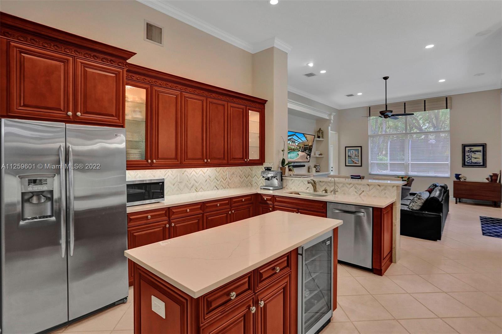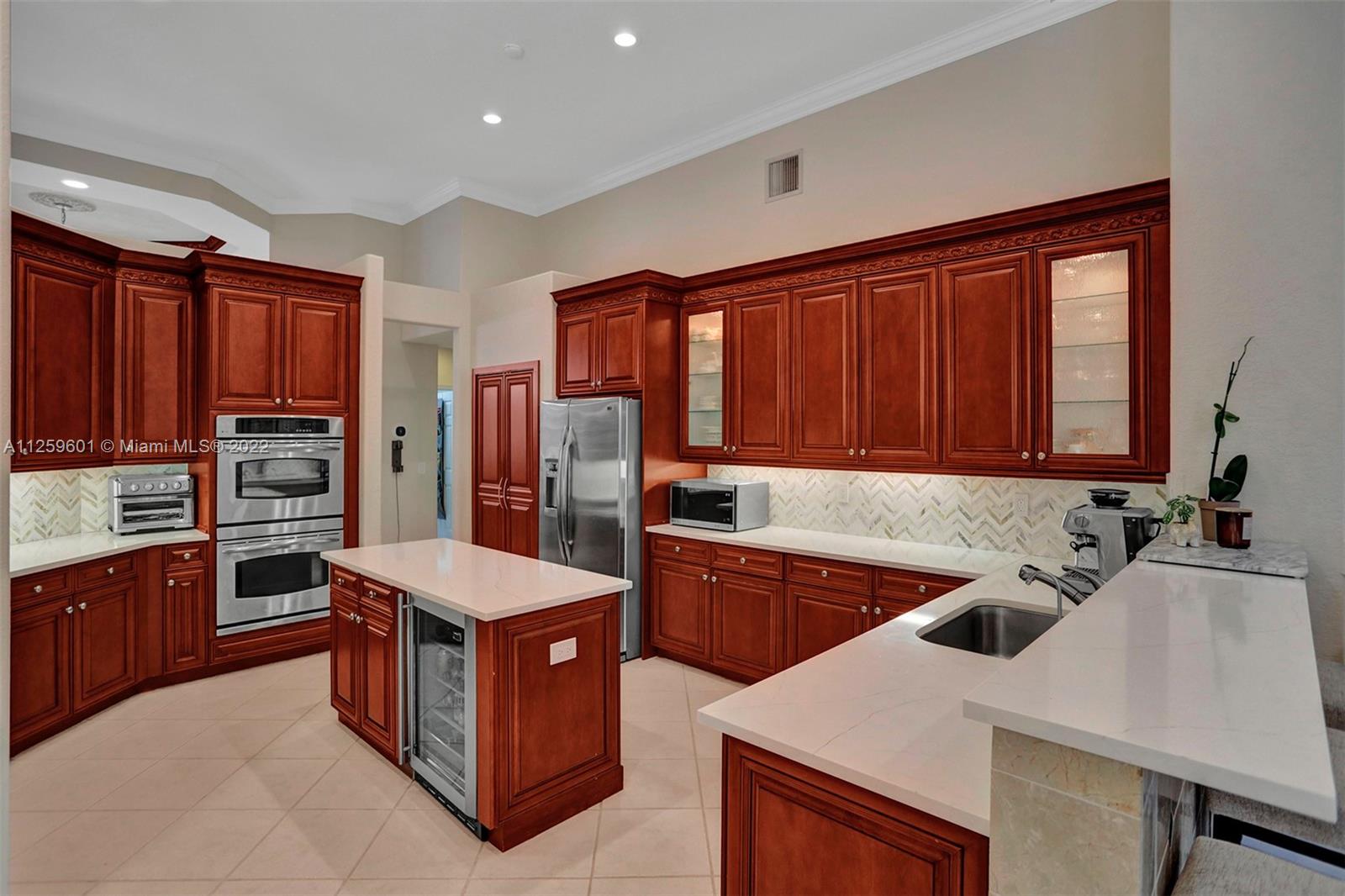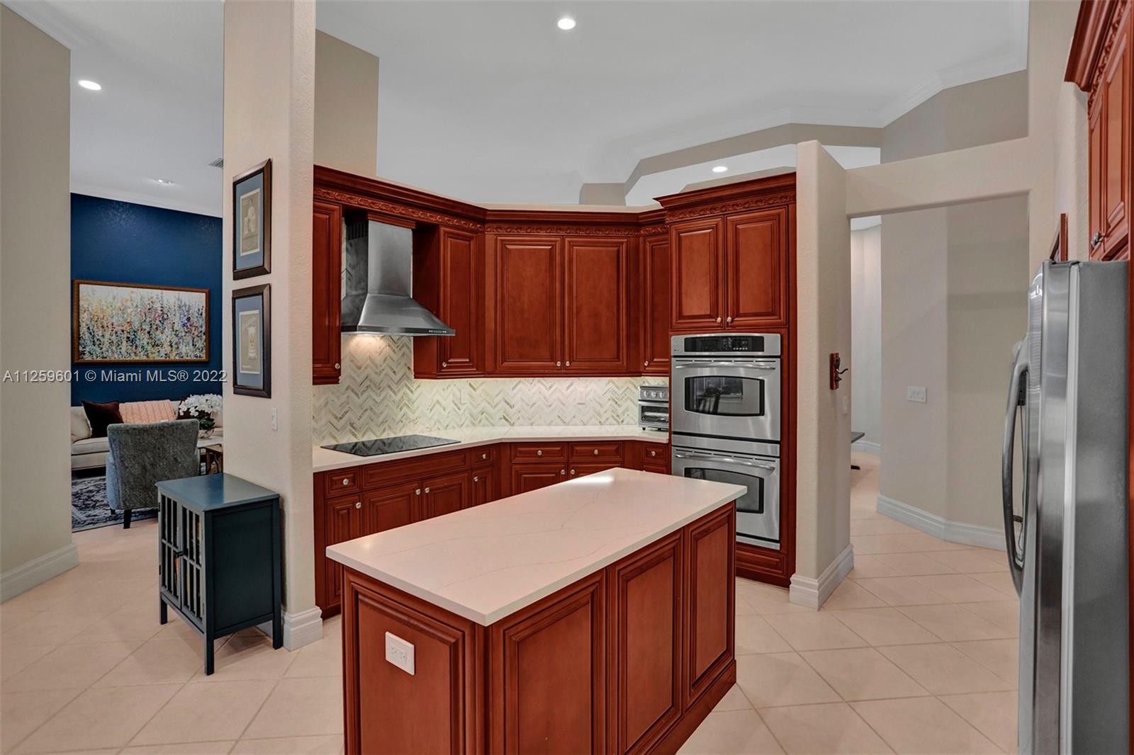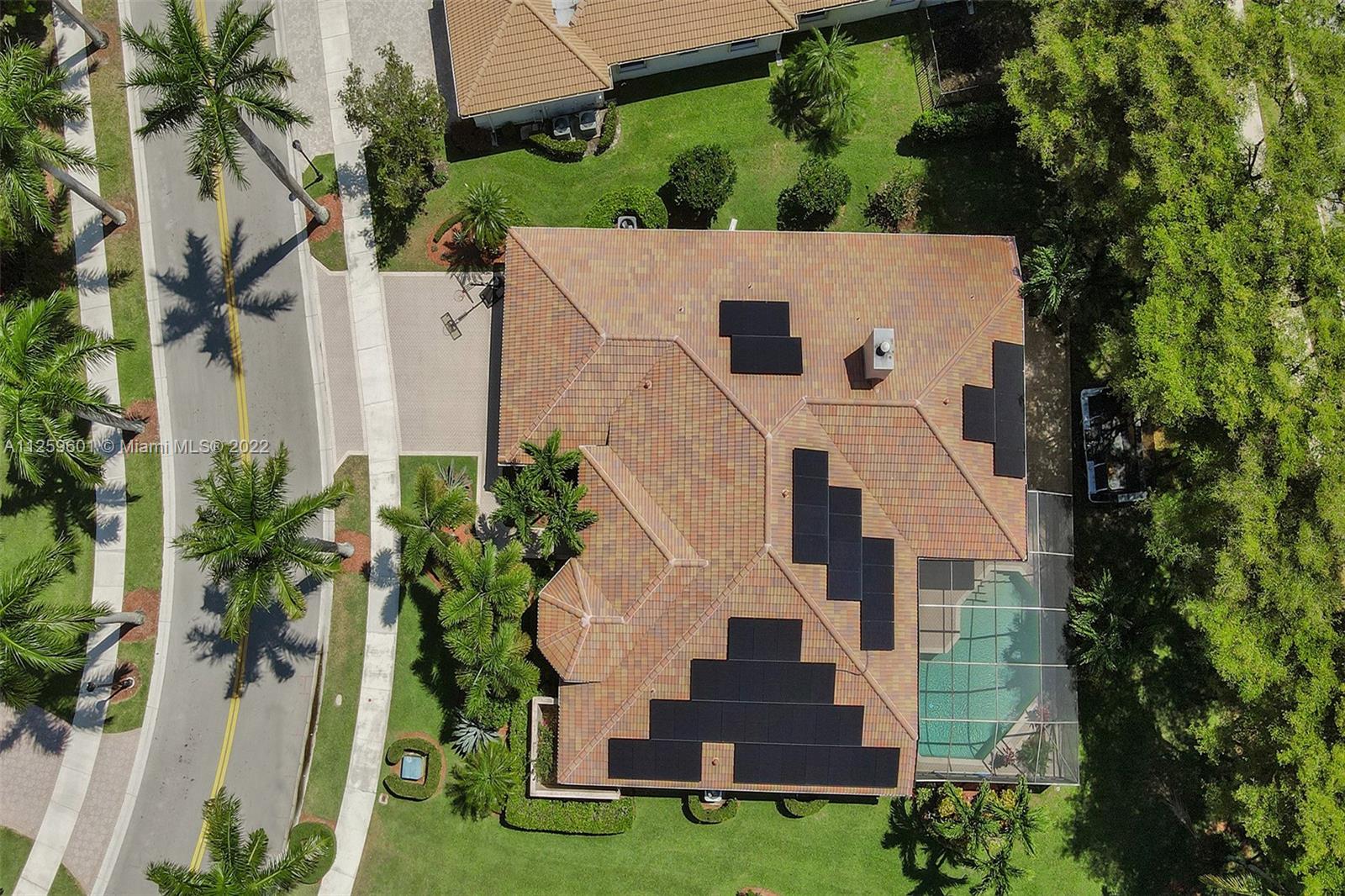 This beautiful home located in the Subdivision of Monterey in Weston Hills boast a new roof (2021) and a newly installed solar system (2021). August 2022 New hurricane impact windows and doors. This spacious 5 Bedroom 3 bath has a triple-split floor plan, the 5th bedroom is being used as an office. The kitchen boasts new quartz counter tops with stainless-steel appliances. New upgraded electrical and lighting system are featured in the formal living room. Custom Built-ins. The green thumb manicured lawn offers lush landscaping with a newly installed automated sprinkler system. Enjoy your screened patio and pool with waterfall and also a separate open-air patio. Wood burning fireplace.