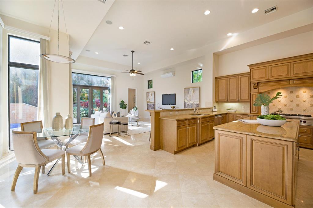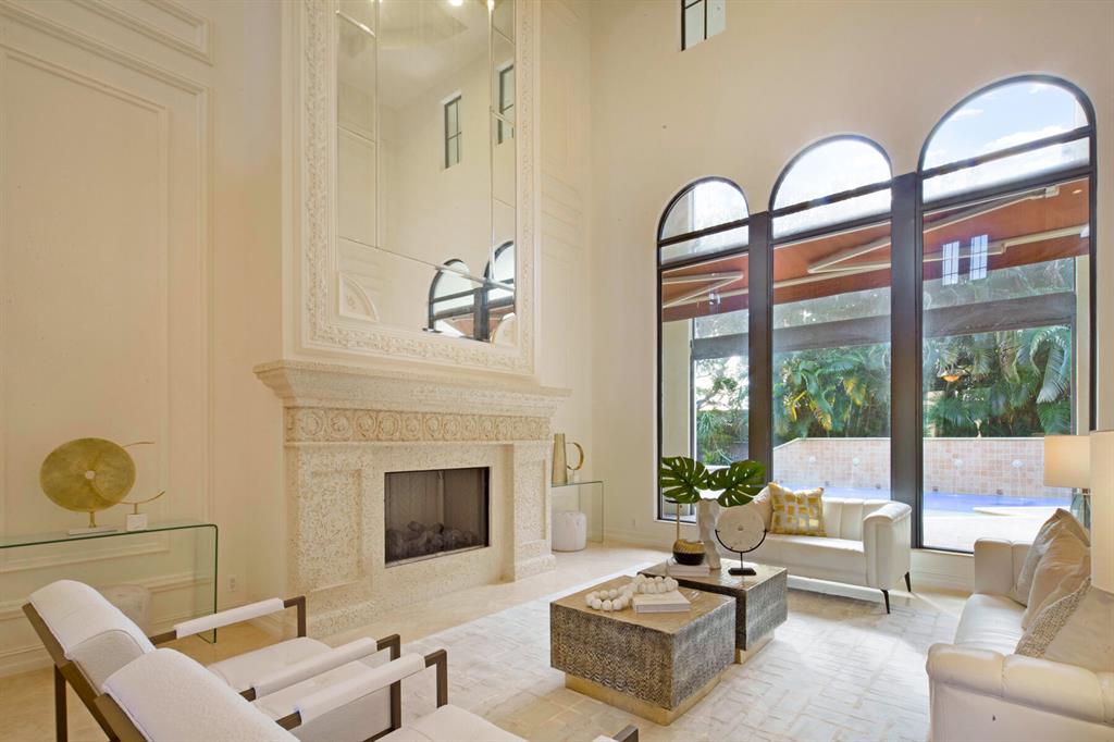 Exquisite design and detail are present throughout this magnificent estate in one of Boca Raton's most prestigious and exclusive neighborhoods, The Oaks. Boasting 5,168 square feet this elegant home with soaring ceilings, grand scale and natural light has 6 bedrooms all with walk in closets and ensuite bathrooms, a den/office, a large loft with built in beverage bar, two half baths and bespoke millwork. The living room with its 24 1/2 foot high ceilings is both spacious and open with a stunning gas fireplace with views of the covered patio and pool. The chef's kitchen features granite countertops, stainless steel appliances, a gas cooktop, a center island with prep sink and snack bar. Adjacent to the kitchen is the breakfast alcove and the family room which are drenched in natural