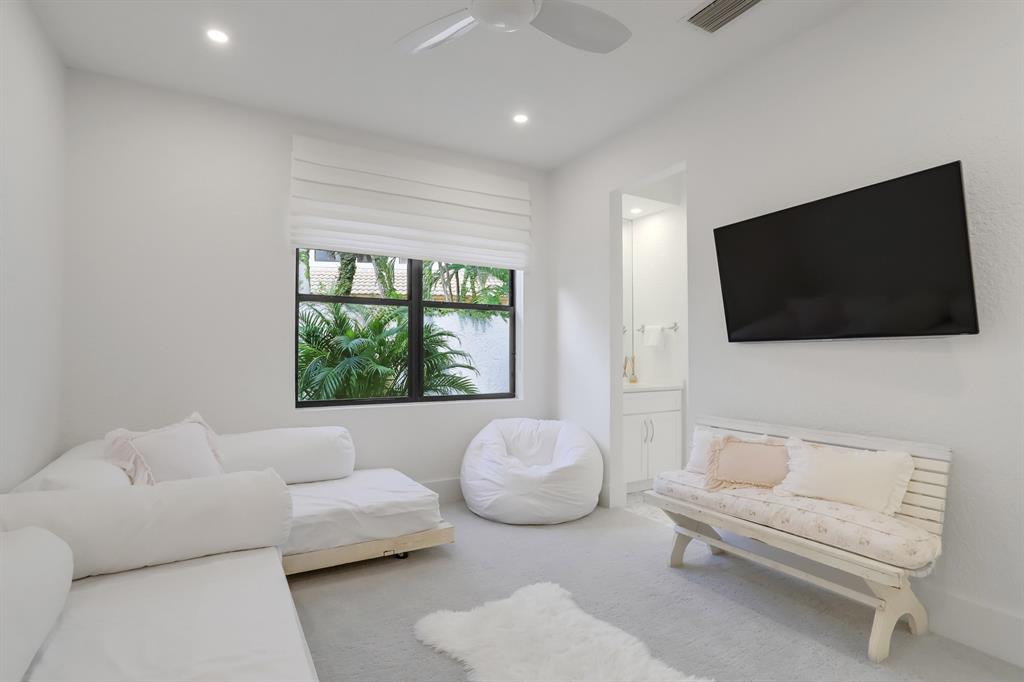 Explore a world of Luxury living from the moment you walk into this beautifully renovated private oasis. 4 bedrooms + an office, 4 full baths, 2 half baths, and a 2 car plus golf cart garage. Separate guesthouse with kitchenette and balcony. This courtyard estate home is perfectly situated on an extra large lot with lush vibrant landscaping, offering a golf course and long lake views. Oversized porcelain tile flooring throughout the main living areas, and a stunning gourmet kitchen with WOLF & SUBZERO appliances, chic cabinetry, quartz countertops. Luxurious ensuite bathrooms with custom marble floors. The courtyard features a summer kitchen, breathtaking saltwater pool and spa with waterfall for relaxation.