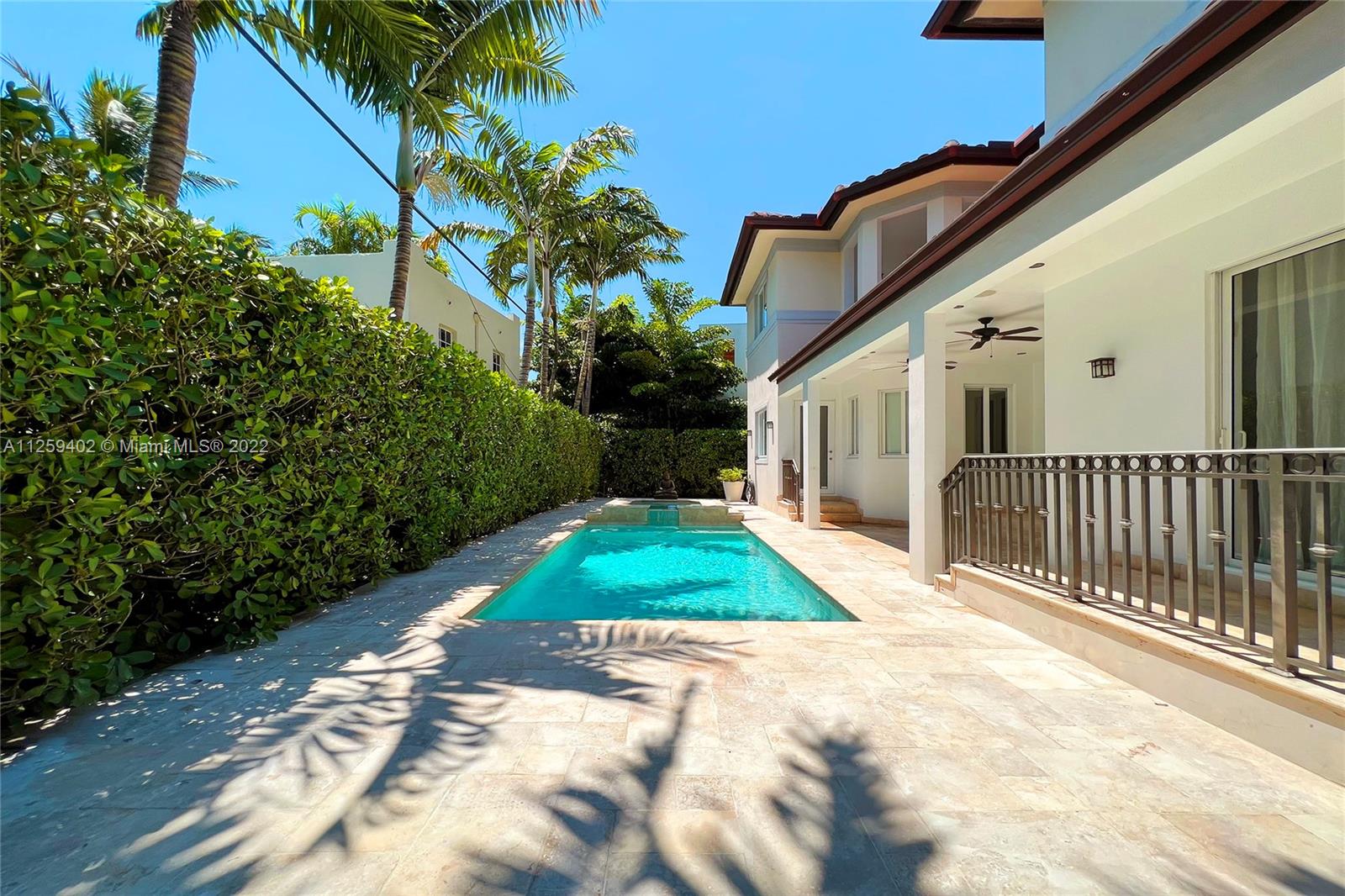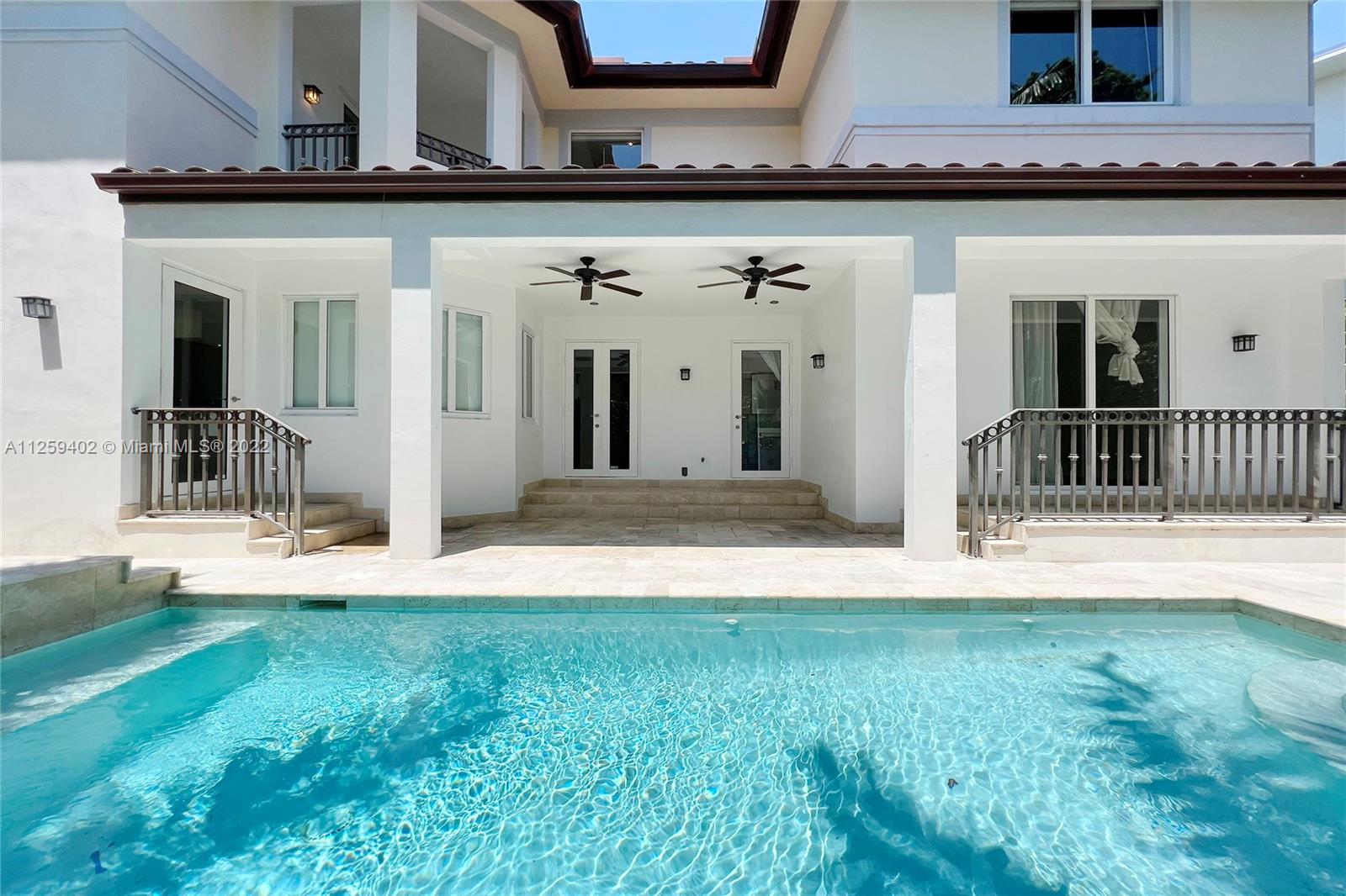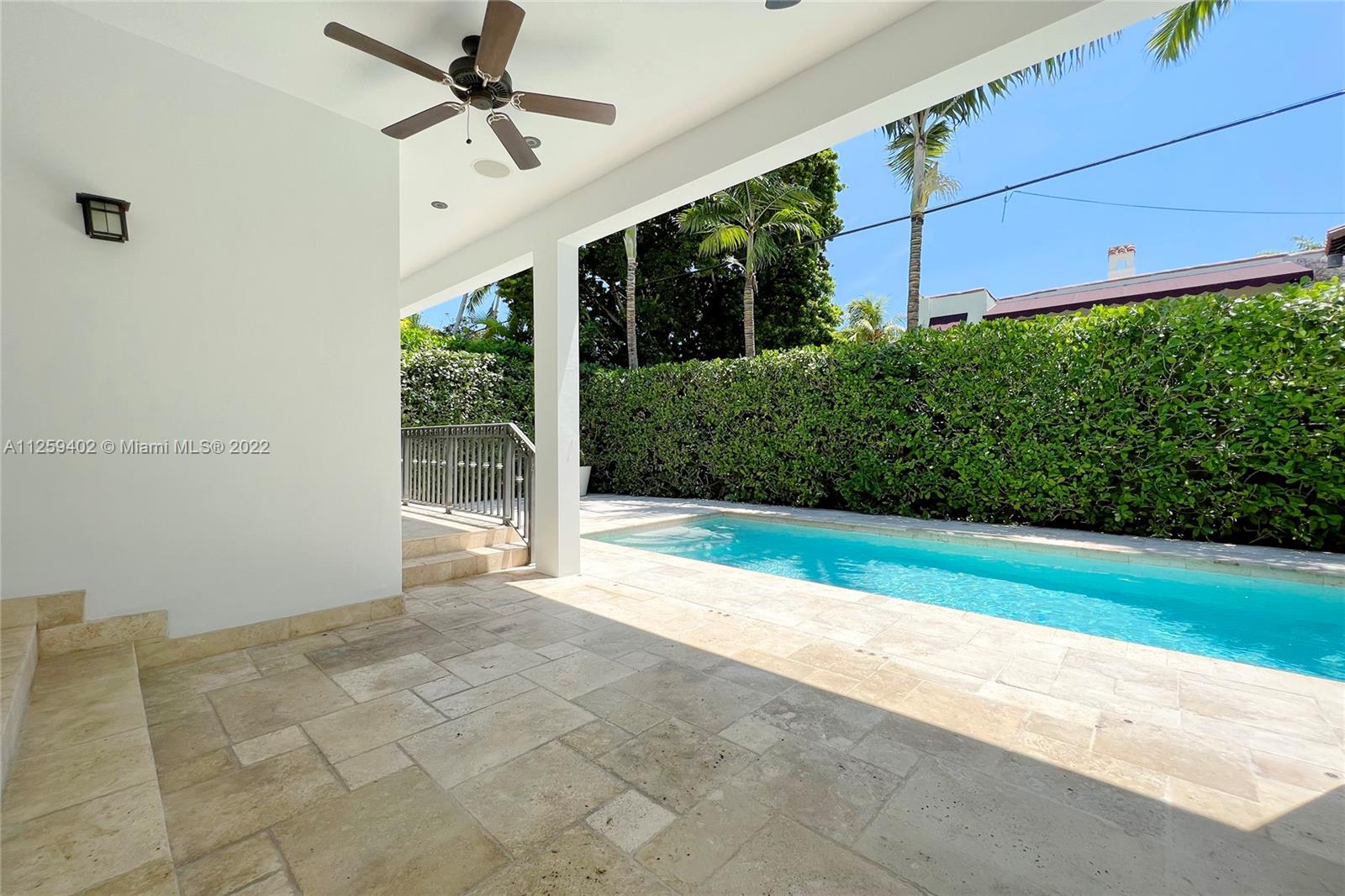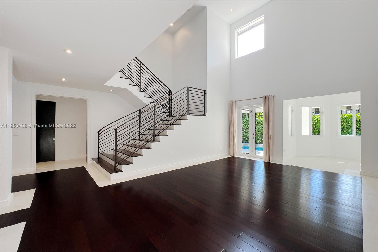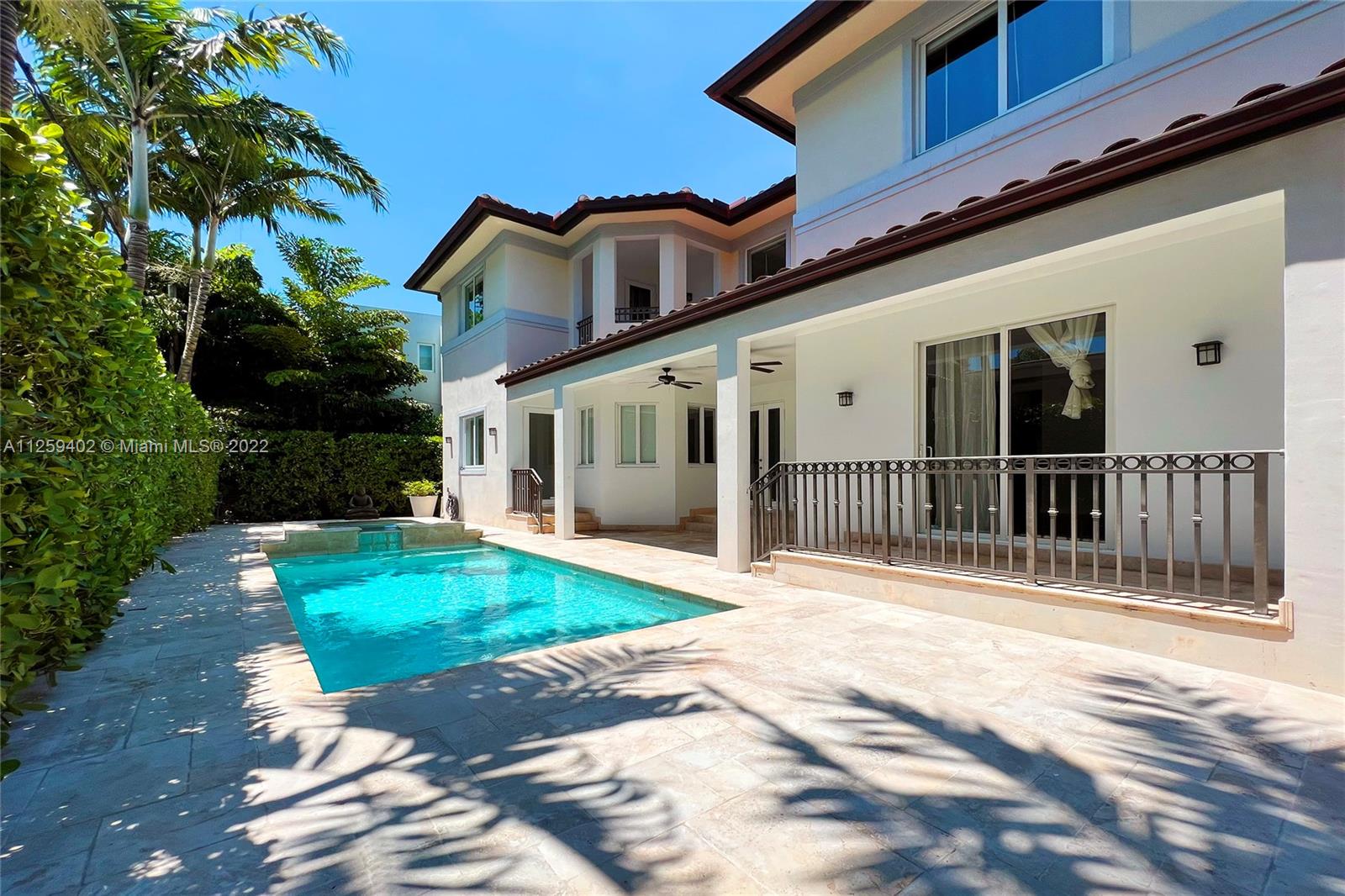 Welcome to N. Bay Road. This Mediterranean style home is newly painted and ready to move in. Built in 2008 with over 4,500 SF of spacious & bright interior space, this home has a modern open layout with 5 bedrooms & 6.5 bathrooms. Wood & stone floors intertwine in an open & expansive layout. The ceiling heights range from 9.5 and 11.5 ft high with double ceilings up to 20ft in entrance & living room. All bedrooms are spacious with high ceilings, en-suite bathrooms & walk in closets. Enjoy a private backyard with a pool surrounded by trees for complete privacy and serenity. Impact windows & recessed lighting throughout, recessed music speakers in social areas & pool porch, alarm and camera system at entrance. Available and ready to show!