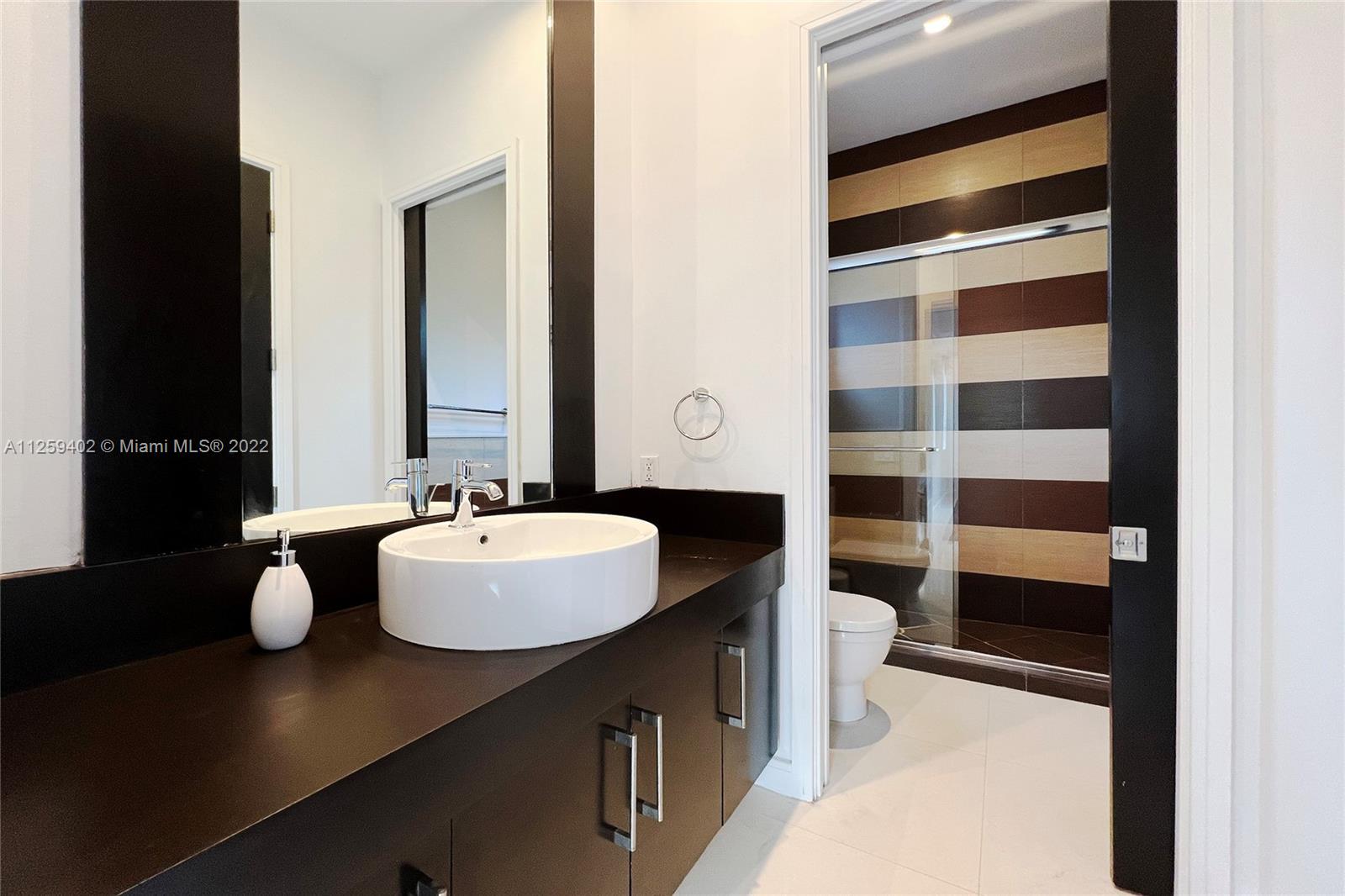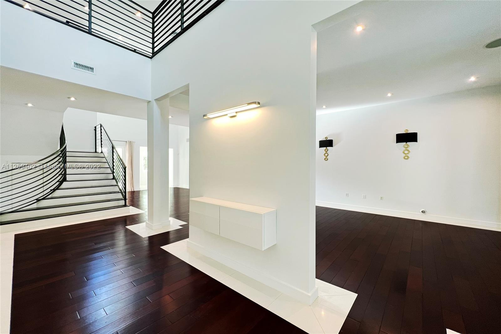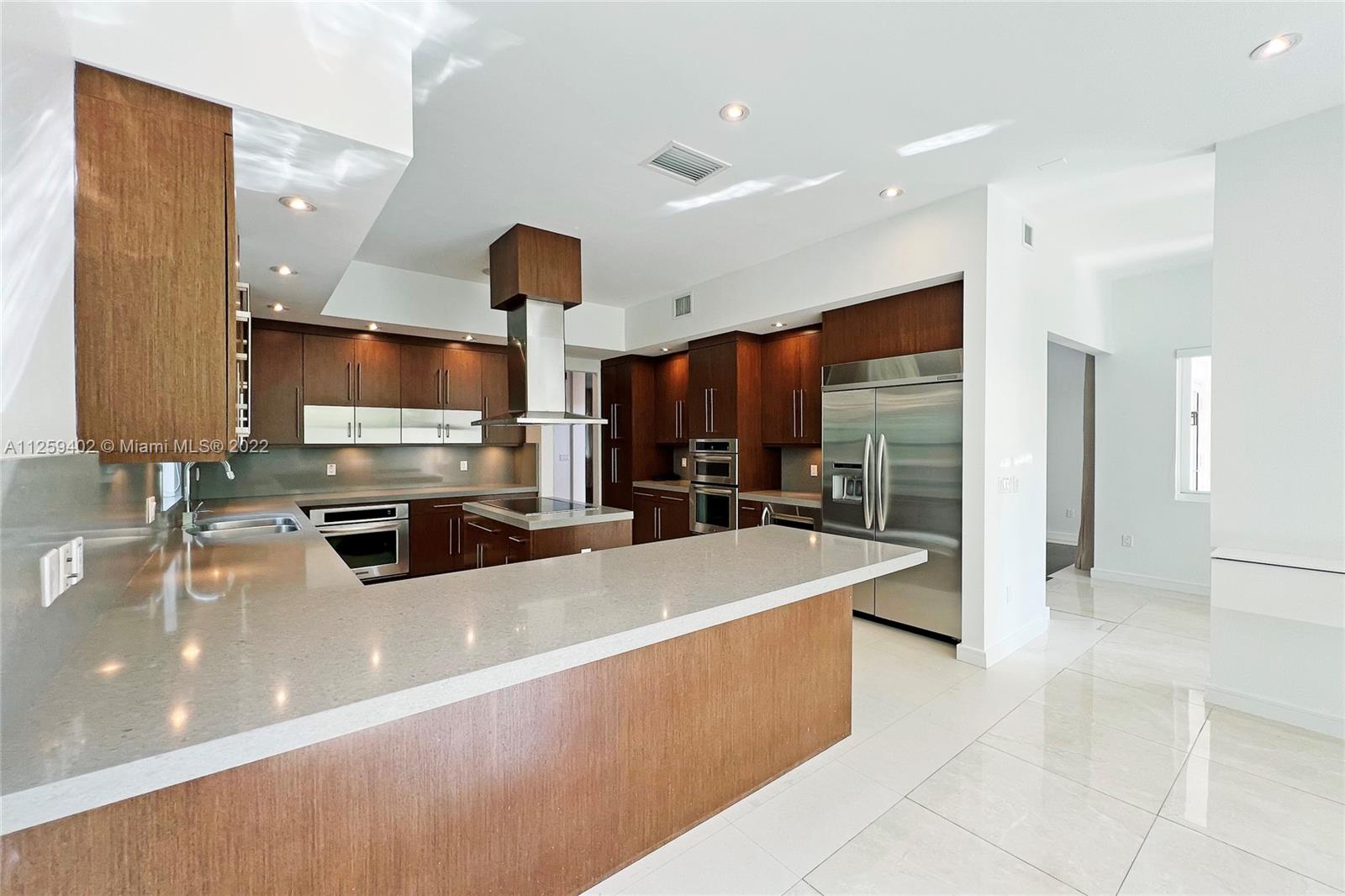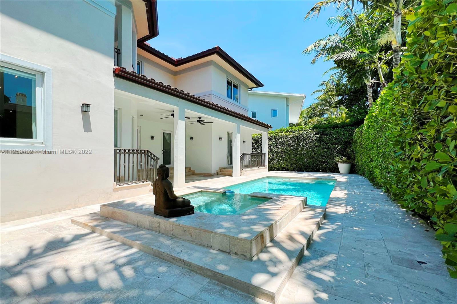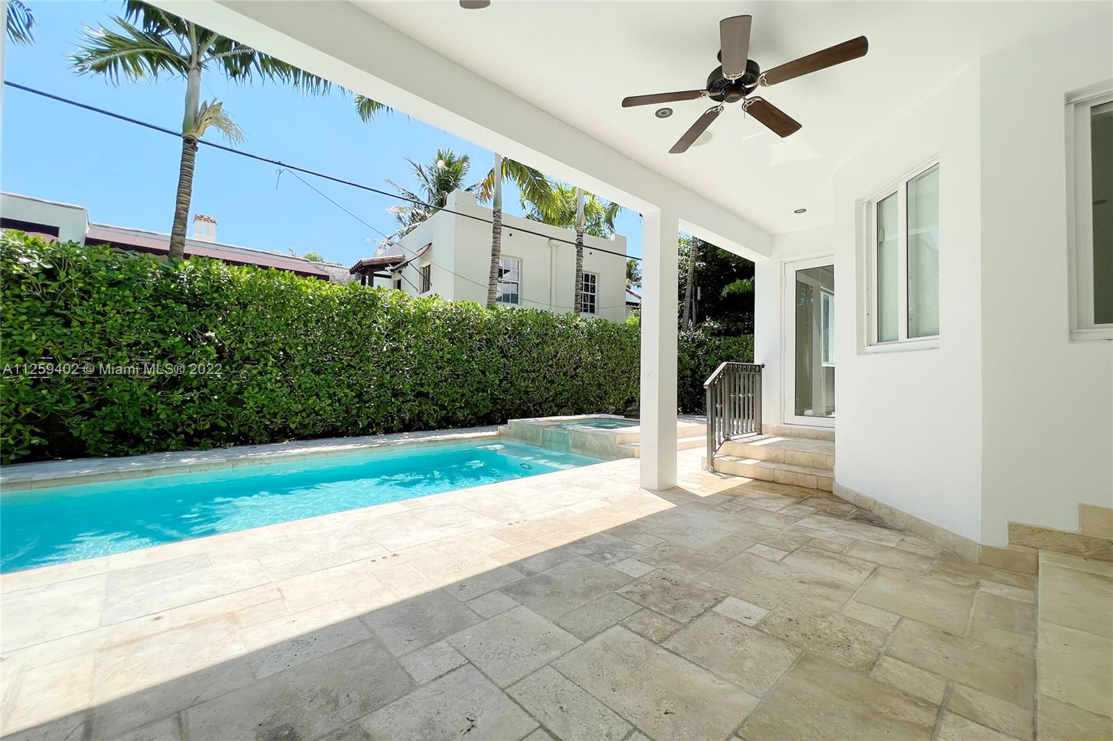 Welcome to N. Bay Road. This Mediterranean style home is newly painted and ready to move in. Built in 2008 with over 4,500 SF of spacious & bright interior space, this home has a modern open layout with 5 bedrooms & 6.5 bathrooms. Wood & stone floors intertwine in an open & expansive layout. The ceiling heights range from 9.5 and 11.5 ft high with double ceilings up to 20ft in entrance & living room. All bedrooms are spacious with high ceilings, en-suite bathrooms & walk in closets. Enjoy a private backyard with a pool surrounded by trees for complete privacy and serenity. Impact windows & recessed lighting throughout, recessed music speakers in social areas & pool porch, alarm and camera system at entrance. Available and ready to show!