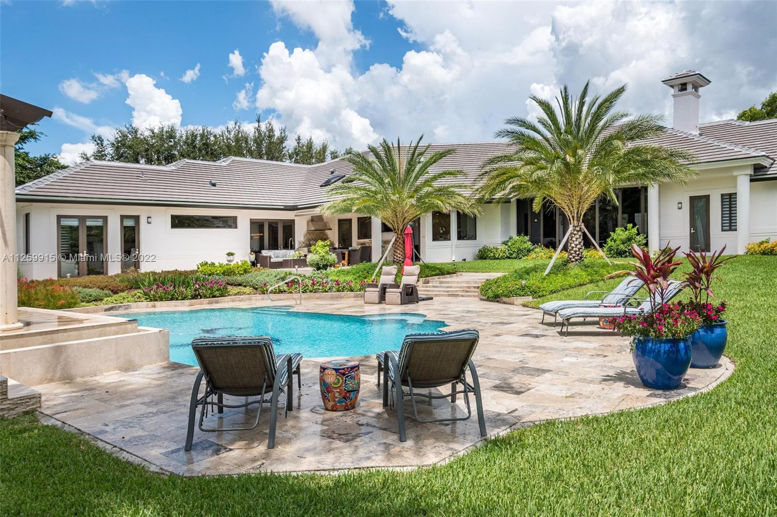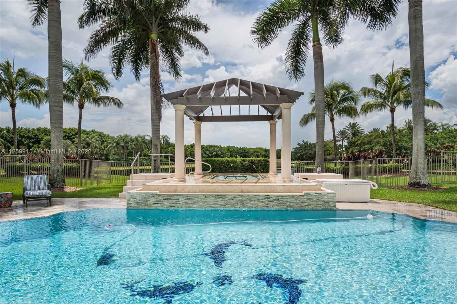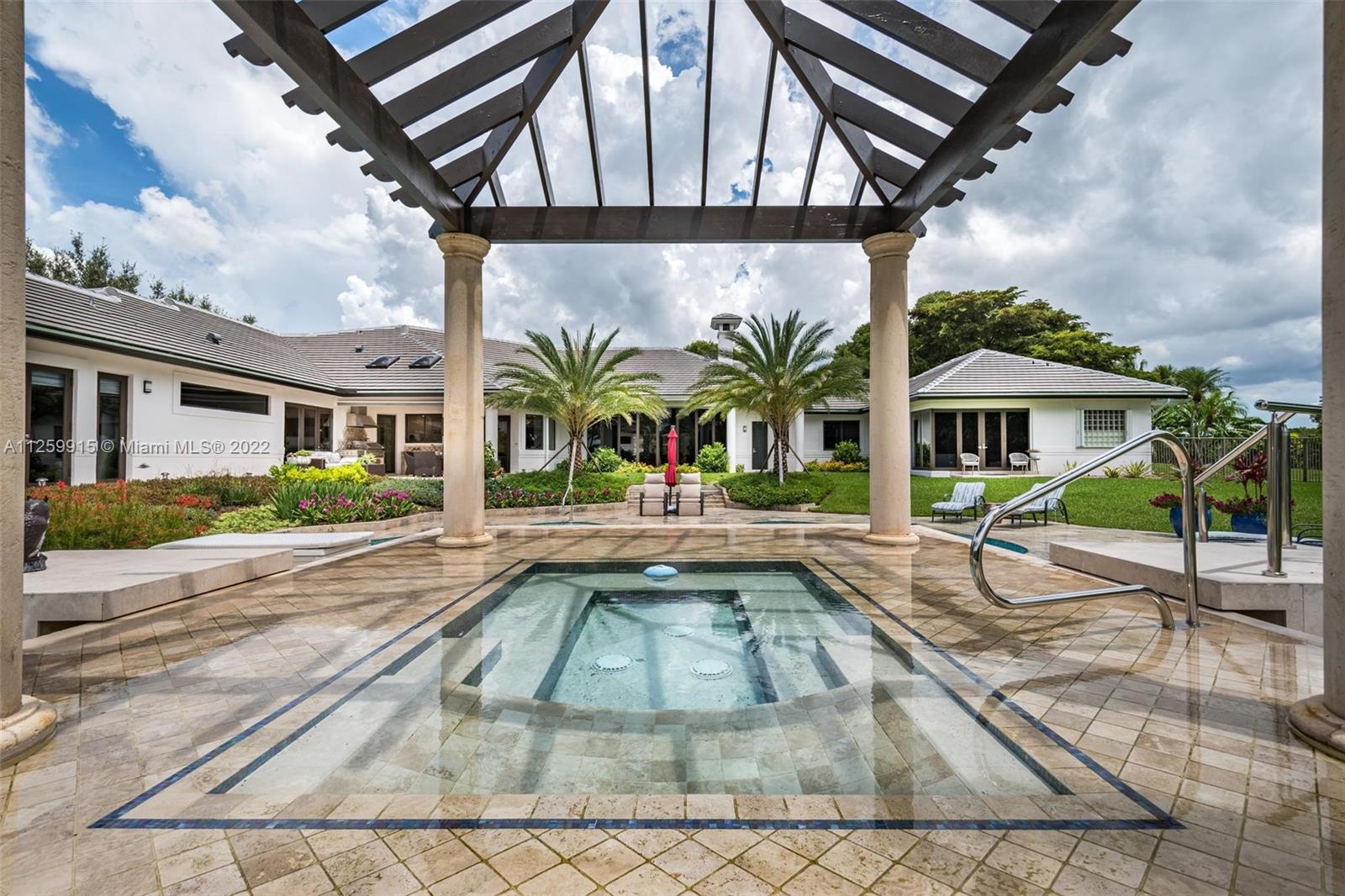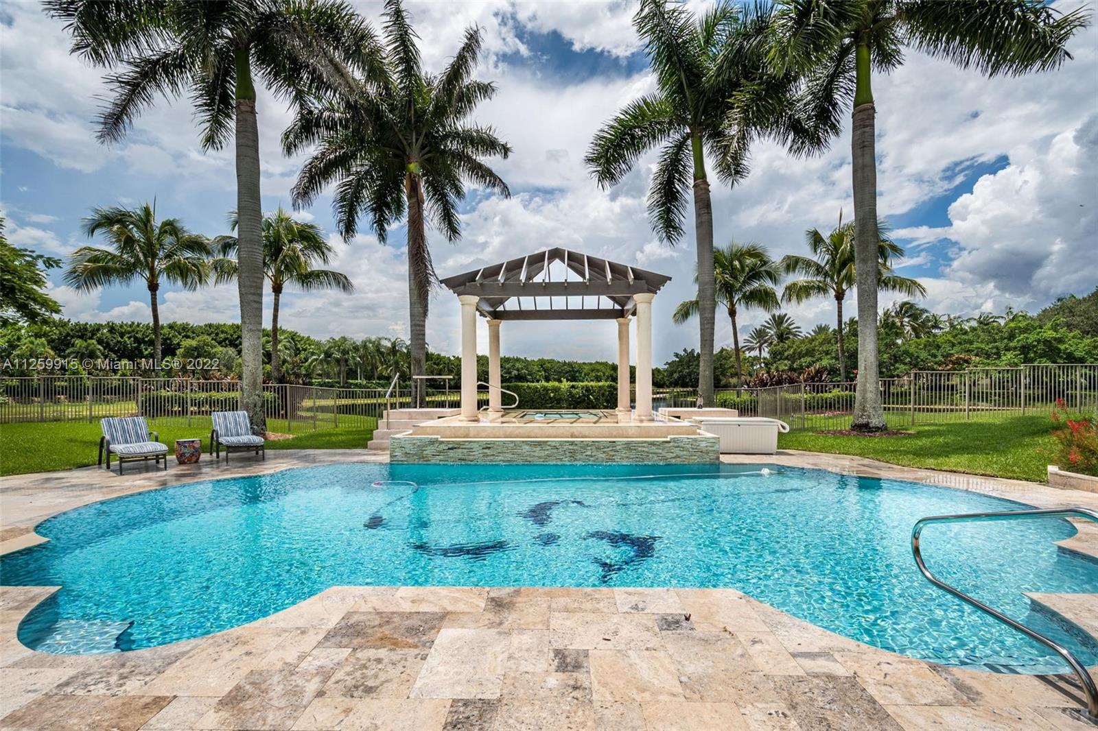 Highly renovated estate on a private 58,000 SF cul-de-sac lot w/ endless water views in prestigious Windmill Ranch Estates. New travertine circular driveway, 4 car garage & porte cochere welcomes you! Smart home w/ brand new roof, impact glass windows & doors, marble floors & custom millwork throughout. 5 bedrooms, 6 1/2 baths, master suite w/ large walk-in closets, master bath w/ spa & sauna. New chef's kitchen w/ top of the line Viking appliances - Viking 60" gas range, Sub Zero refrigerator. Formal living room w/ wet bar, fireplace, volume ceilings & picture window displaying endless water & sunset views. Resort style backyard w/ heated pool & spa, extensive new travertine pavers & summer kitchen. Sold fully furnished for list price excluding grandfather clock, piano, 2 area rugs.