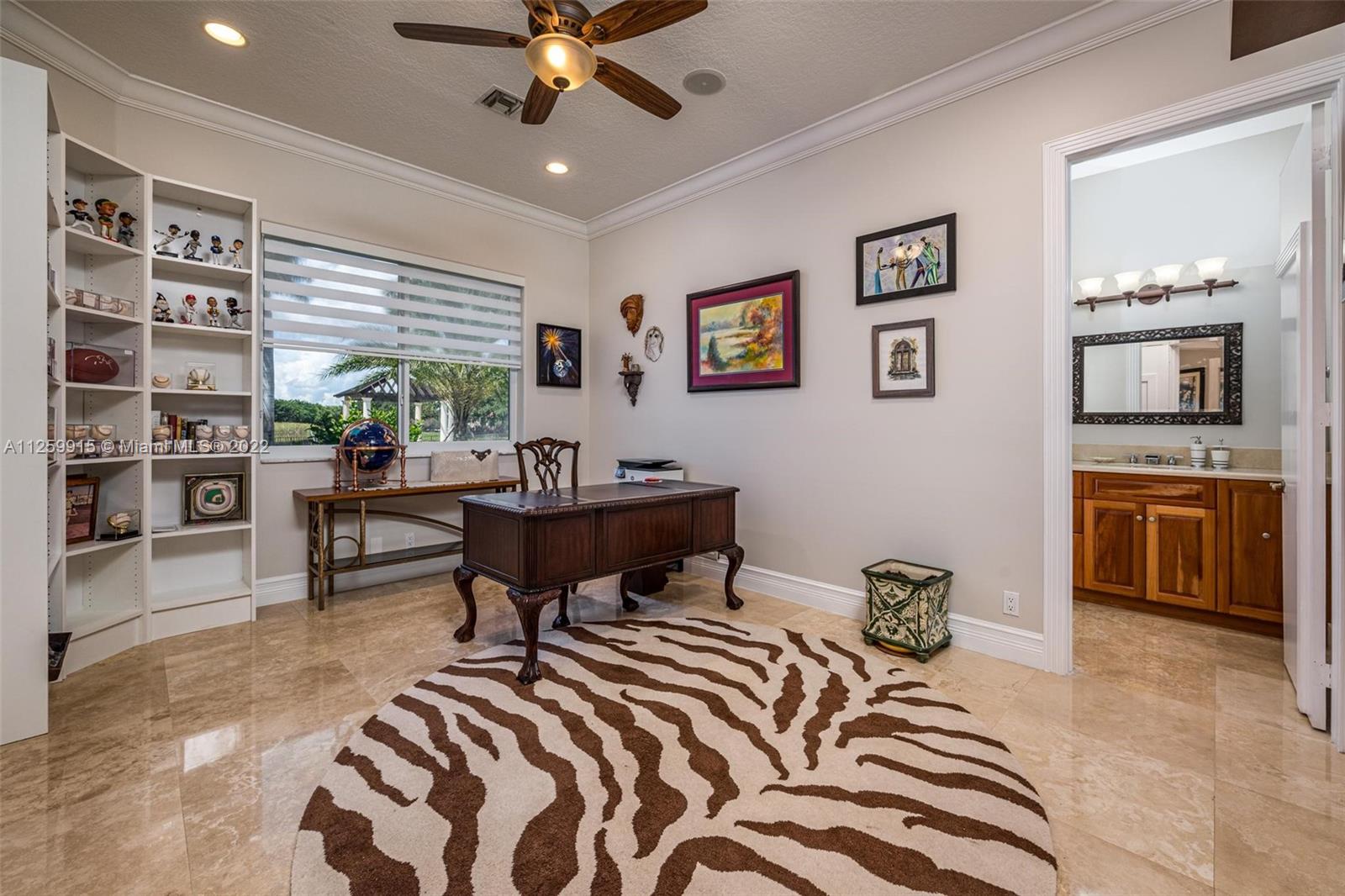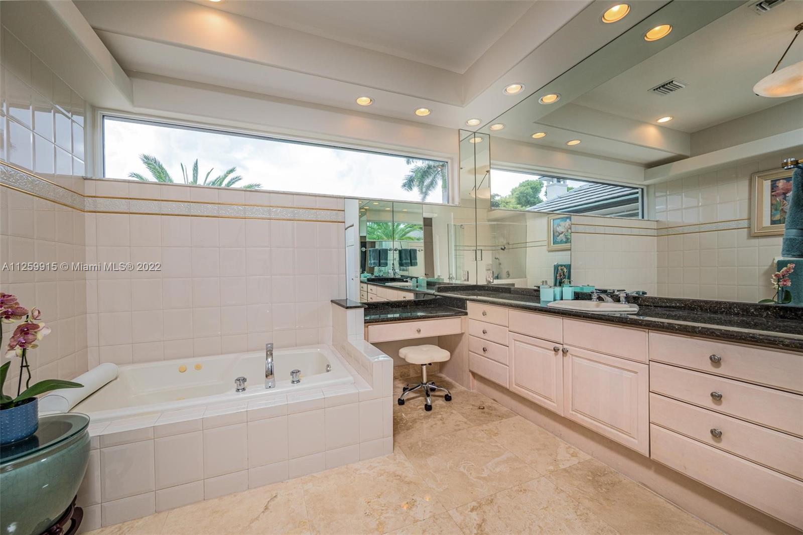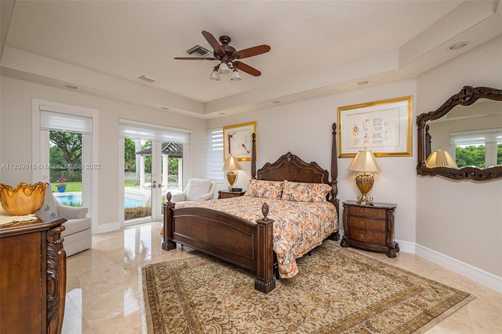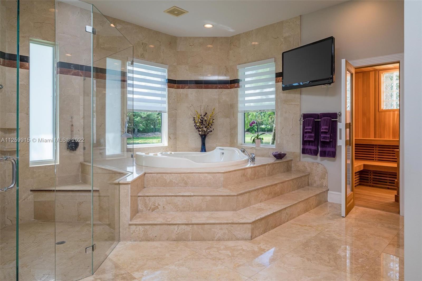 Highly renovated estate on a private 58,000 SF cul-de-sac lot w/ endless water views in prestigious Windmill Ranch Estates. New travertine circular driveway, 4 car garage & porte cochere welcomes you! Smart home w/ brand new roof, impact glass windows & doors, marble floors & custom millwork throughout. 5 bedrooms, 6 1/2 baths, master suite w/ large walk-in closets, master bath w/ spa & sauna. New chef's kitchen w/ top of the line Viking appliances - Viking 60" gas range, Sub Zero refrigerator. Formal living room w/ wet bar, fireplace, volume ceilings & picture window displaying endless water & sunset views. Resort style backyard w/ heated pool & spa, extensive new travertine pavers & summer kitchen. Sold fully furnished for list price excluding grandfather clock, piano, 2 area rugs.