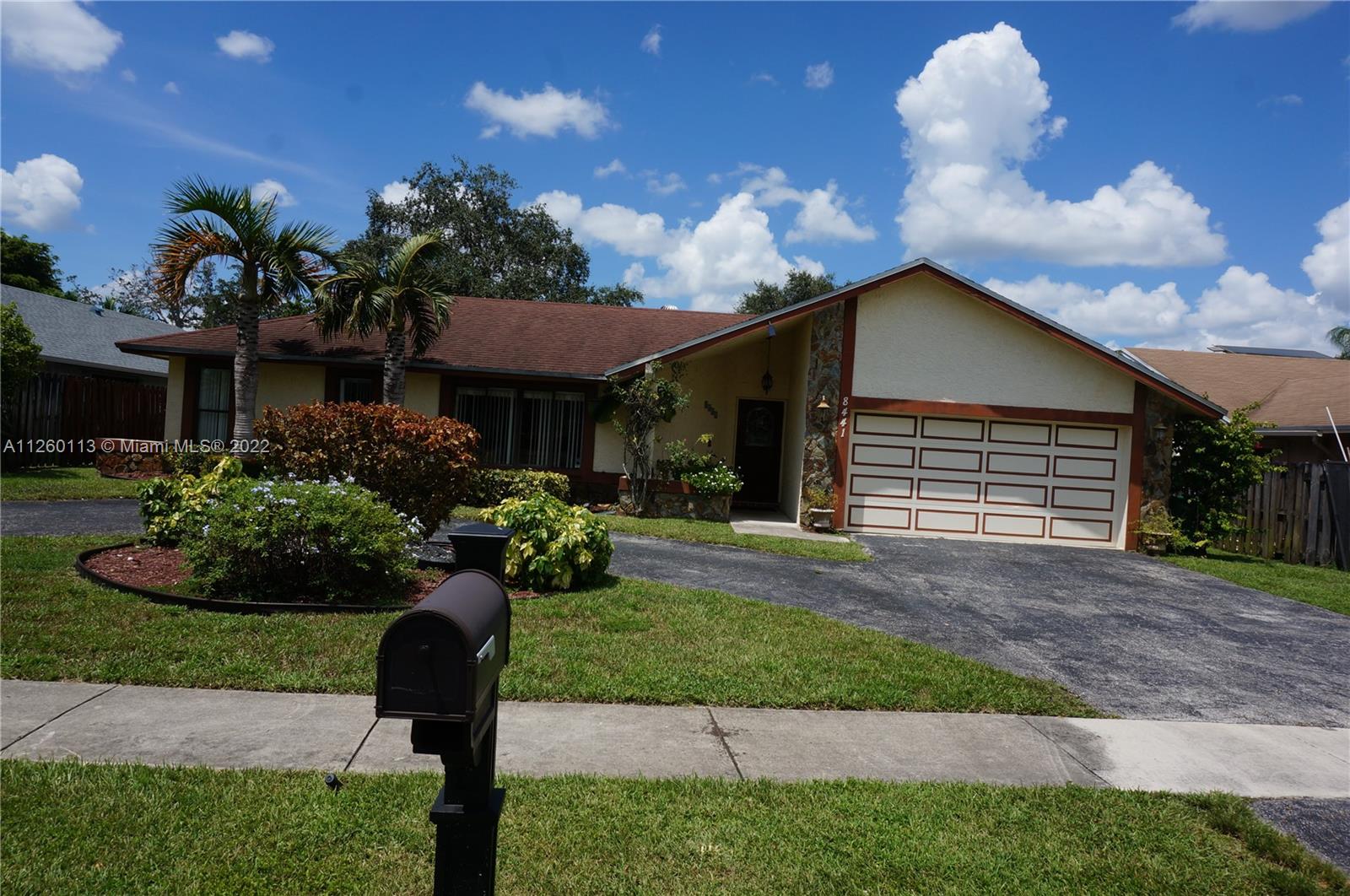 Location, location, location, in Rolling Hills Lake Estates Davie, no HOA, quiet street. Wonderful 4 bedroom 2 bath home, bonus play room with closet, could be 5th bedroom with slight modification. Foyer entry, formal living/dining room, huge kitchen with stainless steel appliances, solid wood cabinets, pantry, eat in kitchen, family room. Split bedroom plan. Separate laundry room with 2 car garage. Some updates, but ready for Buyer to add personal touches and make it their own. Fenced back yard has covered patio for BBQ's, room for pool. Convenient to schools, colleges, shopping, highways. 15 minutes to airport, less than 30 minutes to beach. This home will not last, bring Buyers today. Easy to show..