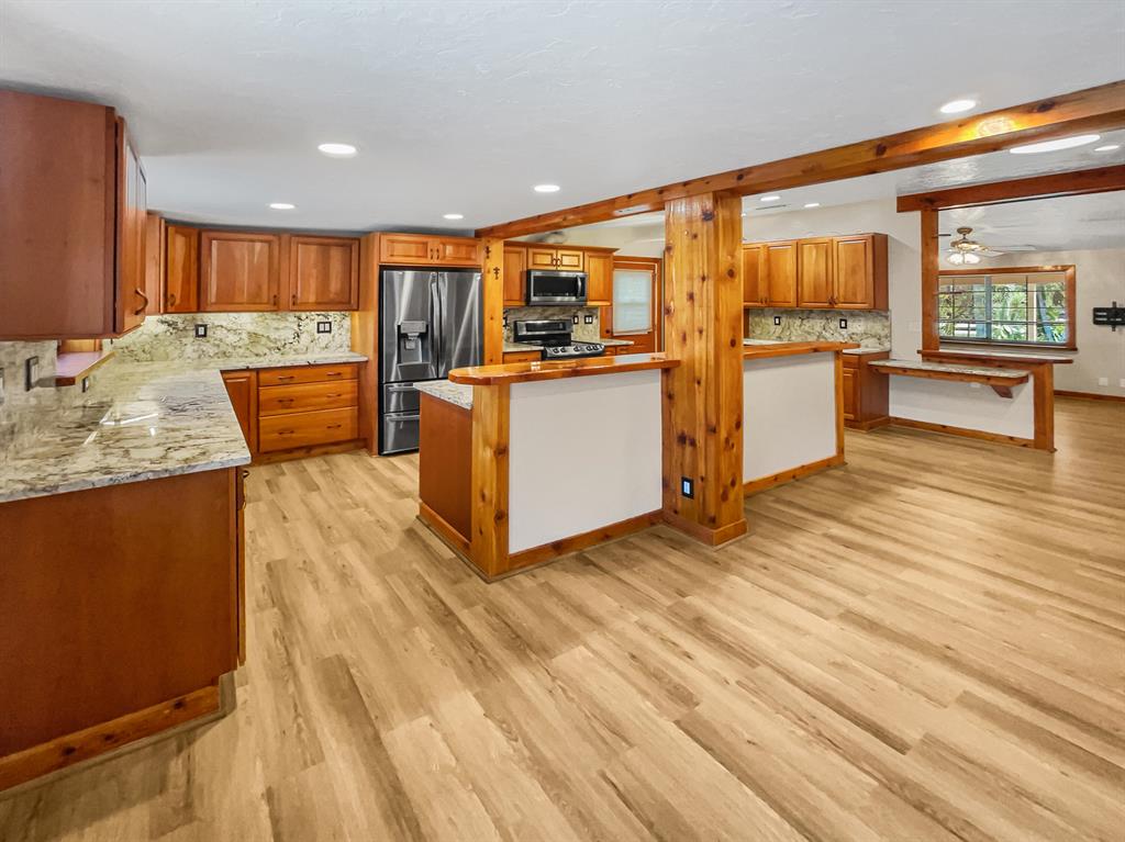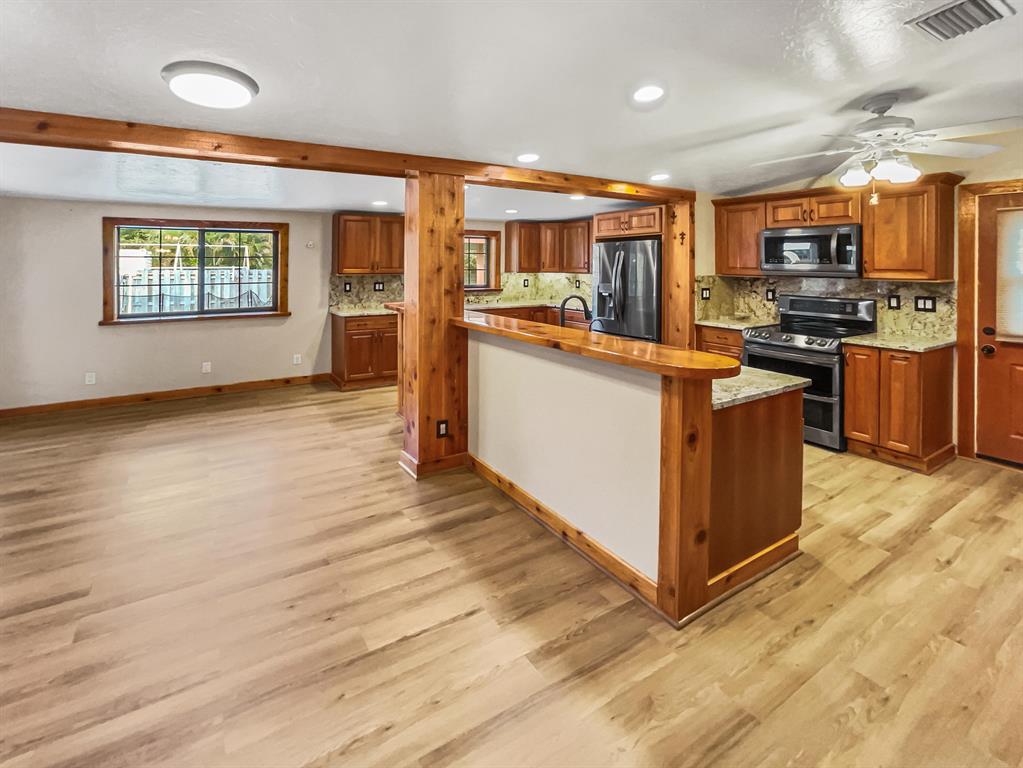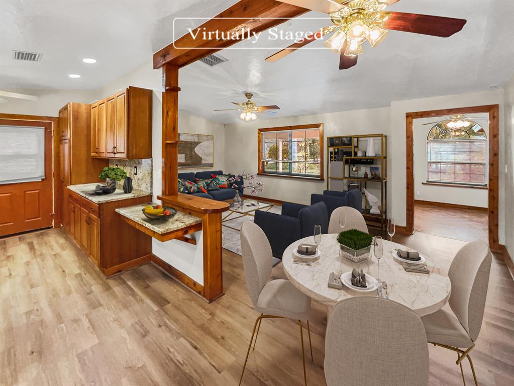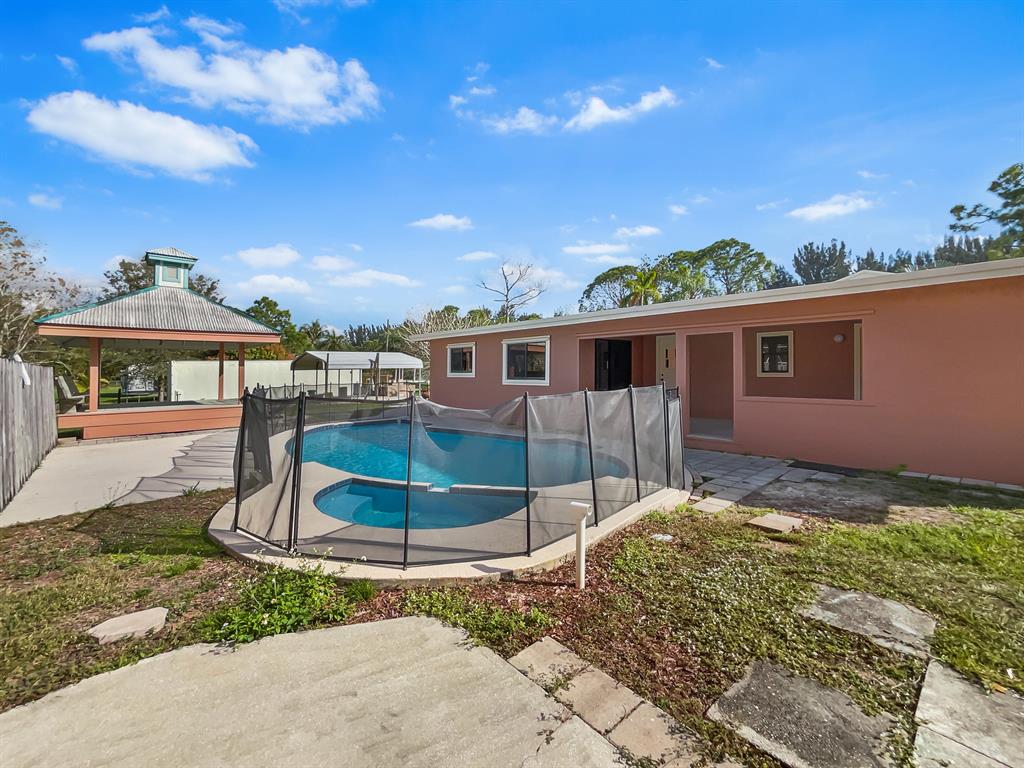Refreshed and Ready for you!! Your dream home is waiting just for you!. Enjoy preparing meals in this impressive kitchen equipped with sleek counter tops, a center island with a breakfast bar, ample cabinets, and included appliances. Discover a bright interior with a neutral pallet, ceiling fans and a unique floor plan. The main bedroom boasts a private ensuite with a shower and bathtub combo and ample closet space. Other bedrooms offer ceiling fans, and ample closet space. Relax with your favorite drink in the backyard with a covered patio, lush grass, fenced in in-ground pool, and amazing landscape details. Don't miss this incredible opportunity. This home has been virtually staged to illustrate its potential.