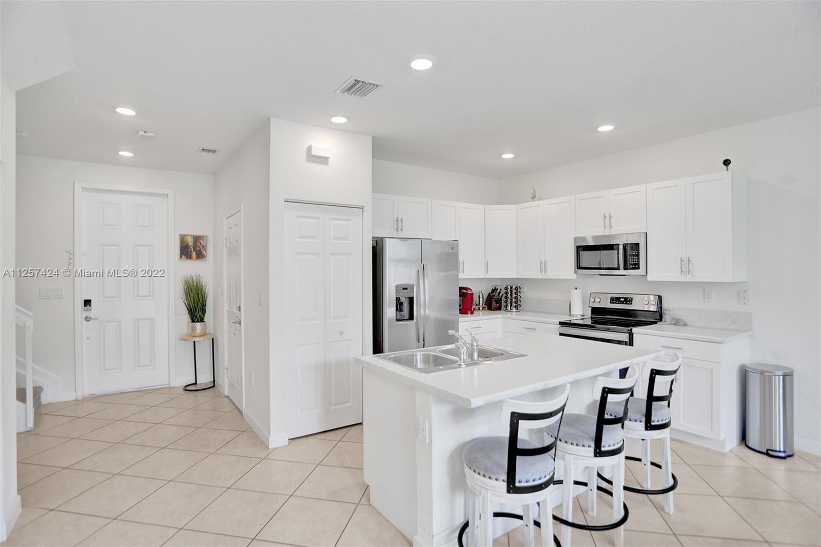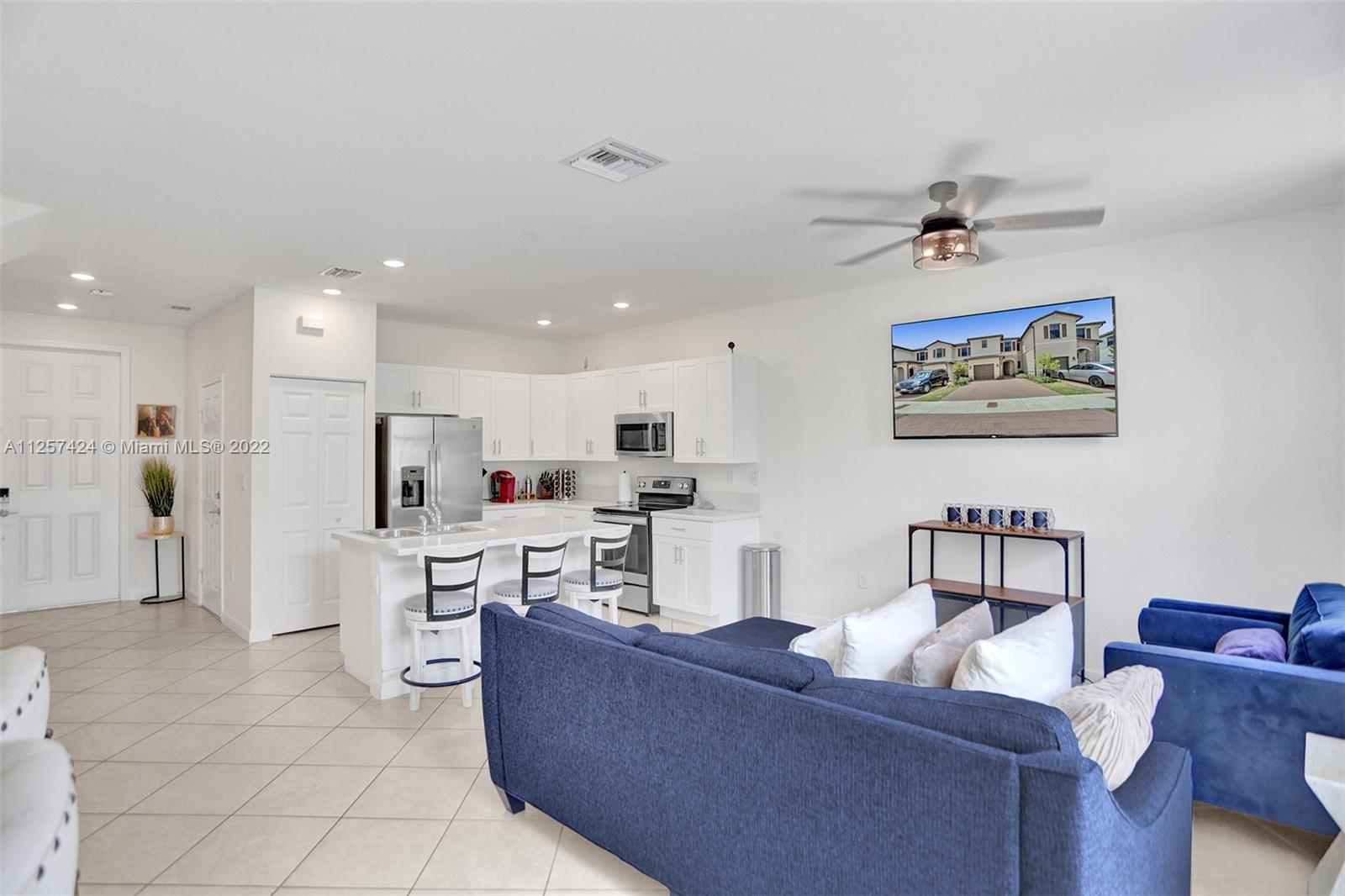 This beautiful modern townhome features 3 bedrooms 2.5 bath. Located in the highly sought after Aquabella community. Built in 2021 feels and looks like new!! Enter into a modern open floor concept stainless steel appliances, white kitchen cabinets, title floors, over sized fenced yard, laundry located on the second floor and much more enjoyable features. Easy access to MIA/FLL. Seller would like a 60 day post occupancy.