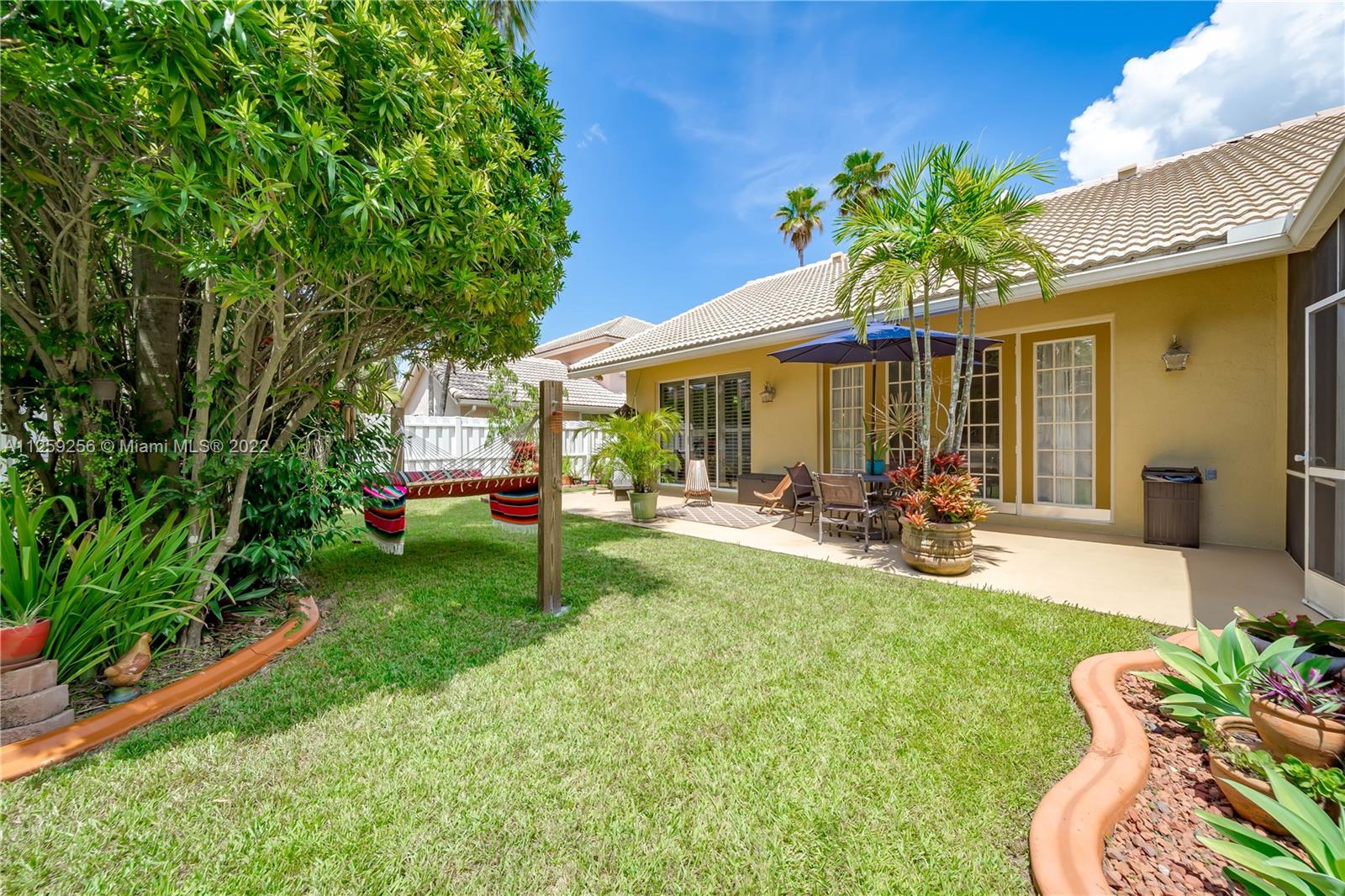 One of the nicest private backyards w/ large covered & expanded screened patio & large yard w/ hammock in this Zuckerman Built Home. Bright Split Floor plan w/lots of natural light, Tall Ceilings in all living areas & Master bed, plantation Shutters, Renovated Hall bath w/dual sinks, Tile Floors in main areas, Engineered Wood in Master Bed. Large Open Concept Kitchen w/ breakfast area & New Fridge, NEW AC & Water Heater 2022, Tile Roof 2007, New hurricane garage doors were just installed. 4th bed is office, plenty of parking w/ 2 car garage & Circular driveway, corner Lot. The Gated Community of Malibu Pointe in Silver Lakes has great bike & paths, community Pool & Clubhouse, volleyball, cable included (Fiber coming soon). Great supermarkets, & near I75,I595,Palmetto 826.