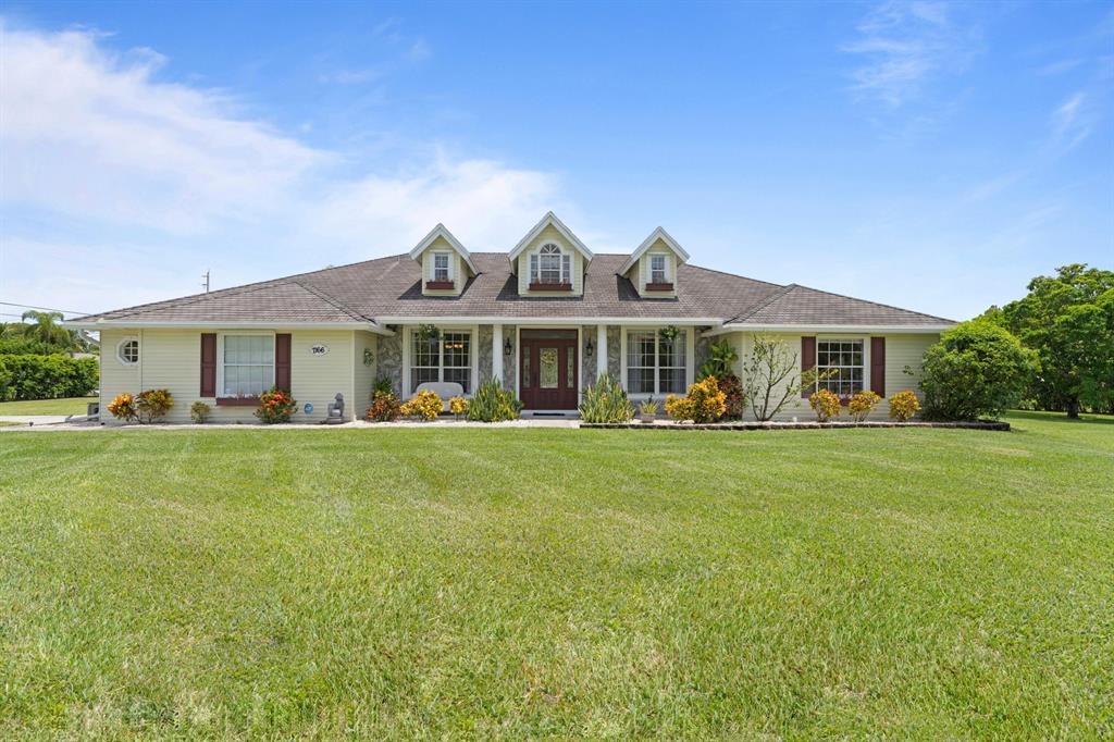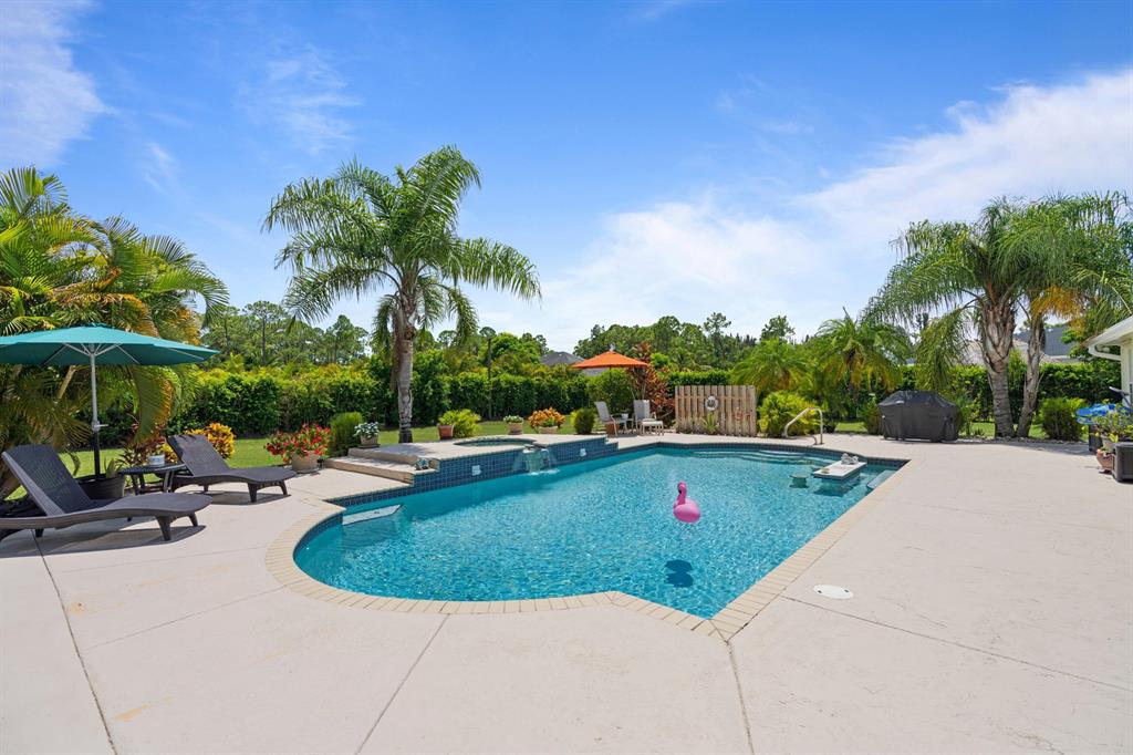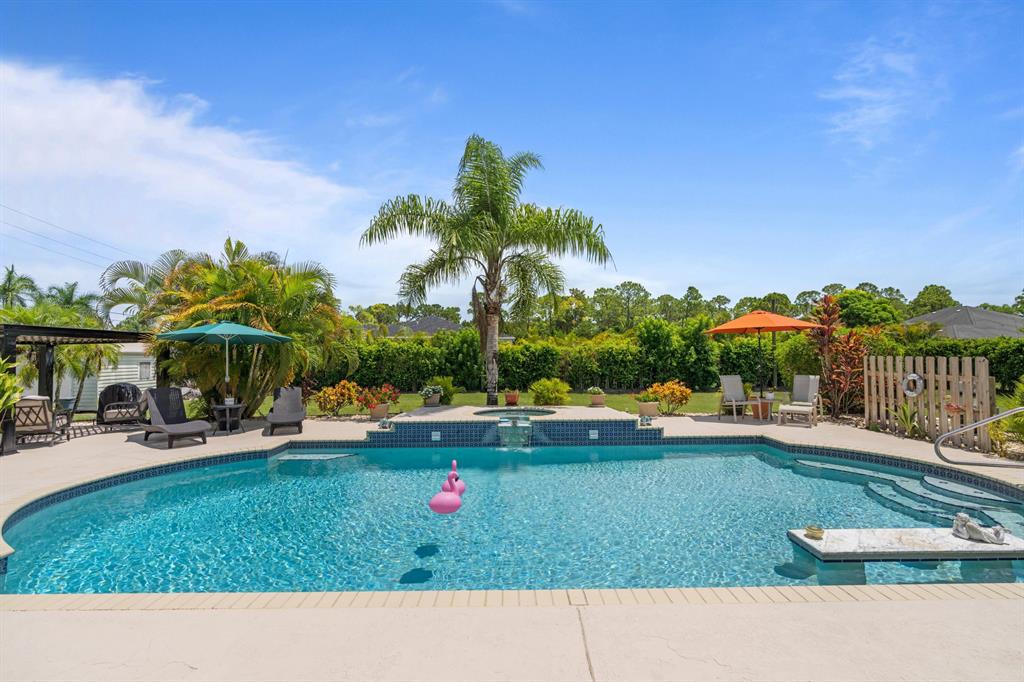 Stunning 1-Story Estate on HUGE Corner LOT l 1.38 Acres l Sought-After Neighborhood of The Acreage! 4 BR l 2 BA | Impressive Bright Open Split Floor Plan l Dramatic Vaulted Ceilings l Porcelain Tile l Crown Molding l Sky Lights. Beautiful Remodeled Eat-In Kitchen, Large Kitchen Island & Breakfast Bar, Custom Wood Cabinets, Wine Bar, Pantry & Luxury Vinyl Floors. Formal Dinning Room & Living Room. Master Suite with Vaulted Ceilings, Walk-In Closet, Hard Wood Floors, Ensuite with Dual Sink Vanity, Jacuzzi Soaking Tub & Custom Glass Shower. Quiet Lush Fenced Backyard, Covered Patio, Large Custom Pool with Waterfall, Fruit Trees & 2 Sheds. Minutes to Turnpike, Downtown City Place, Beach & PGA National Members Club! Roof 2009. AC 2013. WH 2010