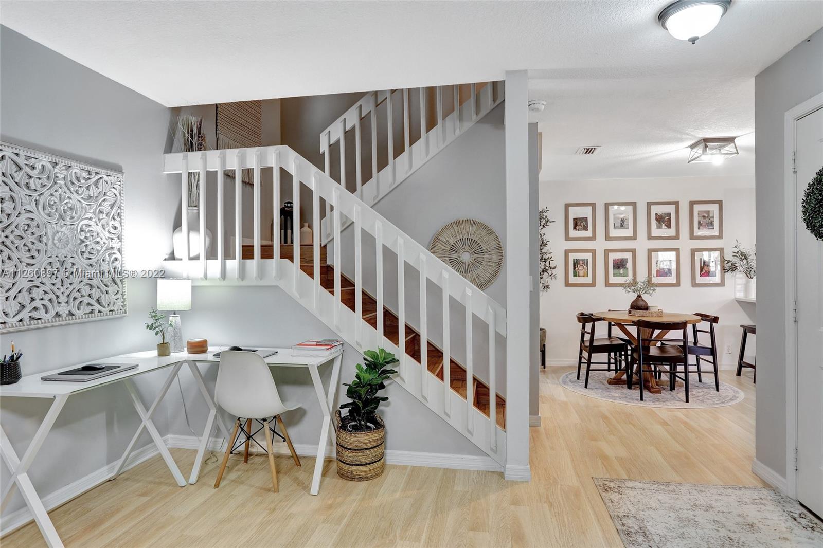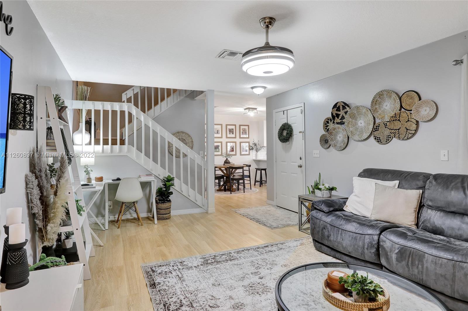 This townhome looks like it was renovated by an interior designer! Absolutely beautiful 3 bed 2.5 bath townhome with private fenced courtyard and a brand new roof replaced in 2022! Light and bright kitchen featuring white shaker cabinets with black hardware, subway tiles and stunning quartz countertops. Lovely and durable vinyl throughout the home. All bedrooms are located upstairs making it a perfect floorplan for separating entertaining space from living space. Oversized bedrooms and large closets in all rooms. The upstairs windows are hurricane impact resistant! Fantastic location close to highways, hospital, grocery stores, dining and shopping.