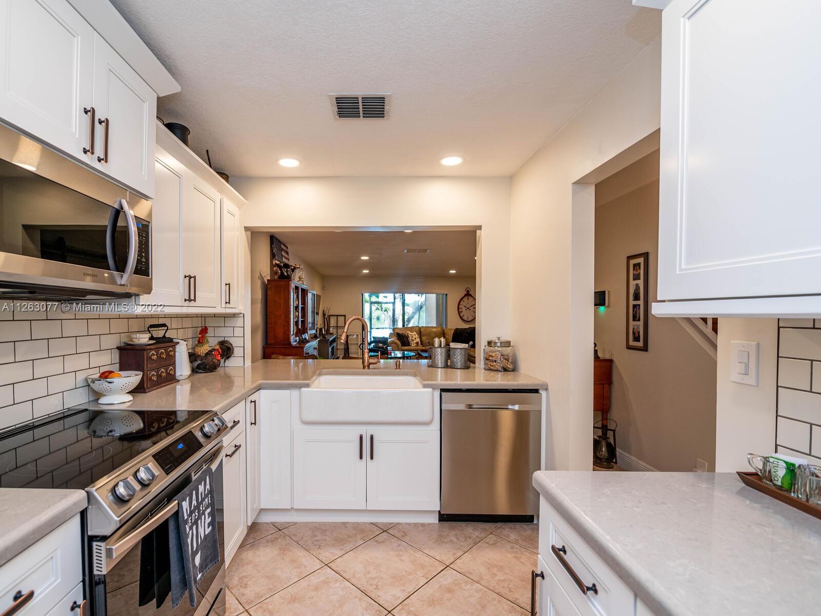Ready to move in!! Fabulous and newly renovated townhome in the central location of Pembroke Pines. This beautiful 2 beds, 2 1/2 baths home has new white kitchen with self close cabinetry, stainless steel appliances, quartz counter tops and breakfast counter. Recessed lighting on the 1st floor, new water heater, new upgraded electrical panel, new screened-in partial covered patio overlooks a pristine view of lake that include amazing sunsets. All bathrooms are renovated with new floors vanities, toilets, filtered shower heads. There is a community pool/hot tub. It's walking distance to kids playground, a dog park, a path for walking and bike riding. It's a quiet area conveniently close to shopping plazas and more. Some furniture is available to purchase. Call me for a showing!