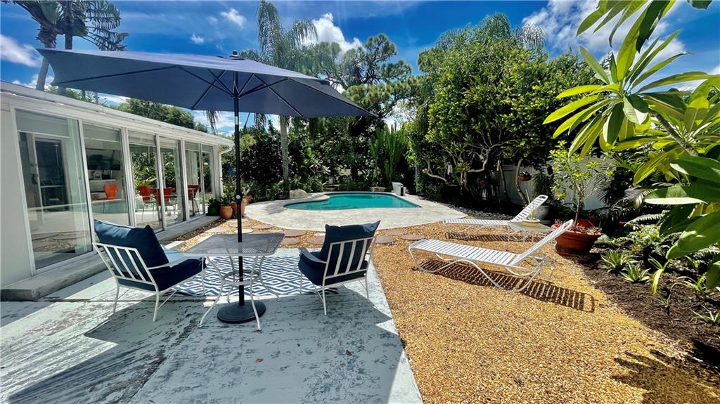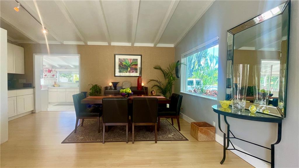 Pride of ownership shines as you walk through the door of this 3 bedroom 2 bath Mid-century modern beauty. Cathedral ceilings greet you with exposed beams throughout the entire house. Enjoy the open concept living room/dining room with a wet bar. The modern eat in kitchen with stainless appliances looks out to a very private swimming pool with a tropical landscaped extra large backyard with work shed. French doors from the living room lead to a private courtyard/patio area. Bathrooms/ADA requirements. What the seller loves about this home: A private tropical paradise conveniently located within minutes of I-95, I-595, Florida Turnpike, downtown, the Fort Lauderdale airport and Hard Rock Casino Hollywood. Backyard access through double privacy gates for a car, boat, or RV parking.