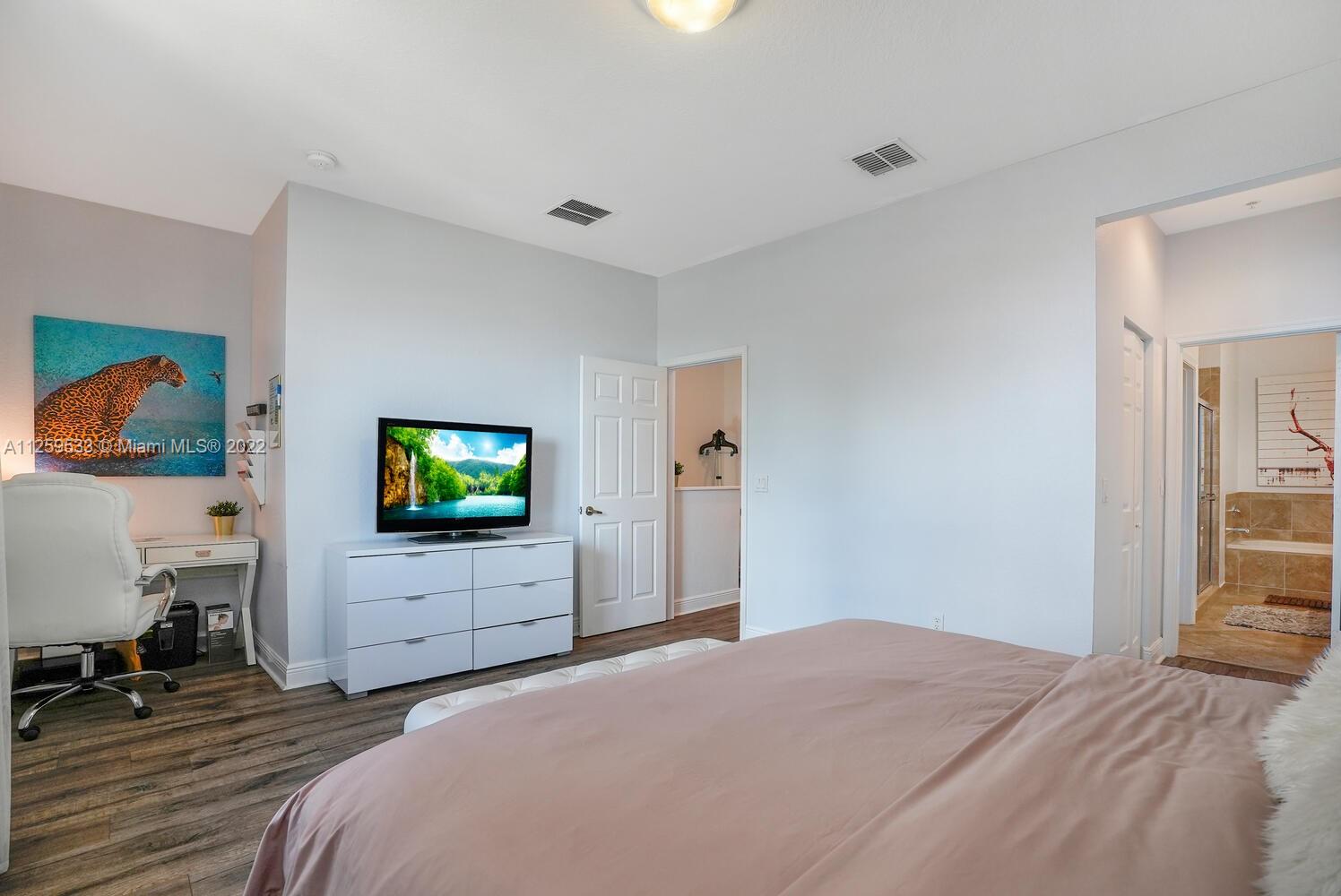 Beautiful, contemporary, spacious 3 story townhome in the desirable Montclair community in Miramar. 3 bedrooms, 3 full bathrooms & one half bath. 1st floor - enter into a living area with a half bathroom. 2nd floor features a full bedroom with ensuite bathroom & an additional great room area with a balcony, modern kitchen with stainless steel appliances. On the 3rd floor is the primary bedroom and bathroom with double sinks; 3rd bedroom with an ensuite bathroom; laundry area with full size washer & dryer. High impact doors & windows with great natural light. 2 car garage. The Montclair gated community offers a pool, gym, 3 playgrounds, outdoor kitchen, walking path around a scenic lake. HOA includes exterior insurance, cable & internet. Close to highways, shopping, restaurants.