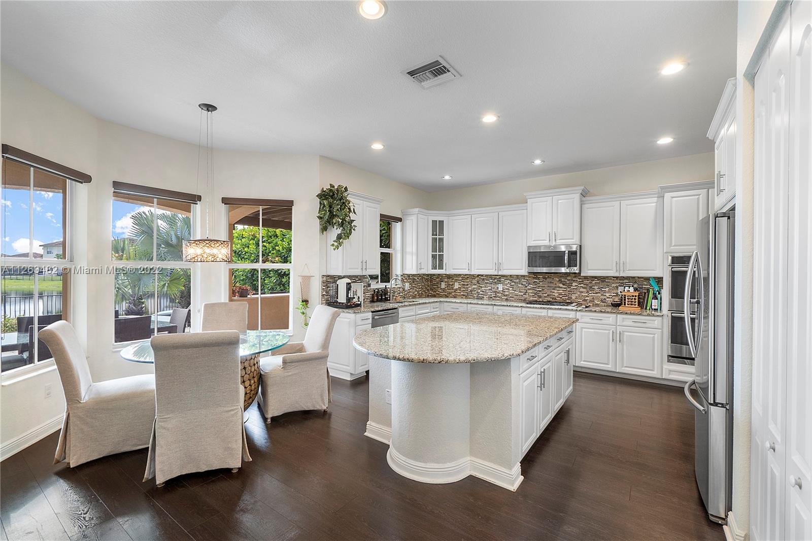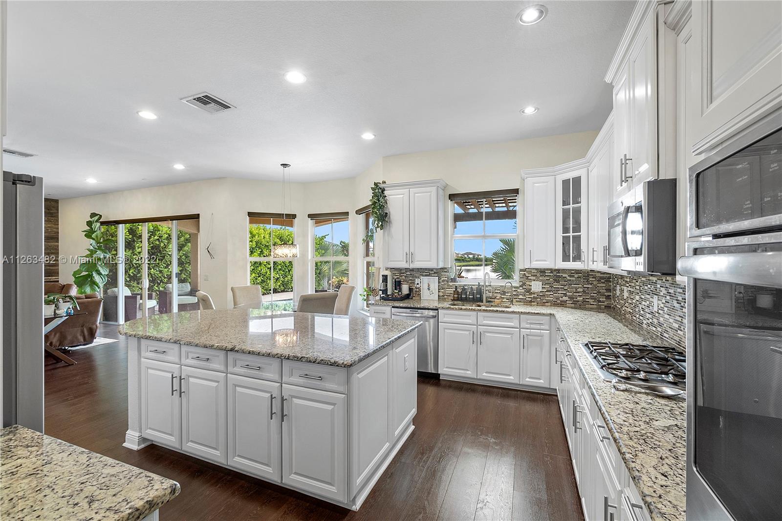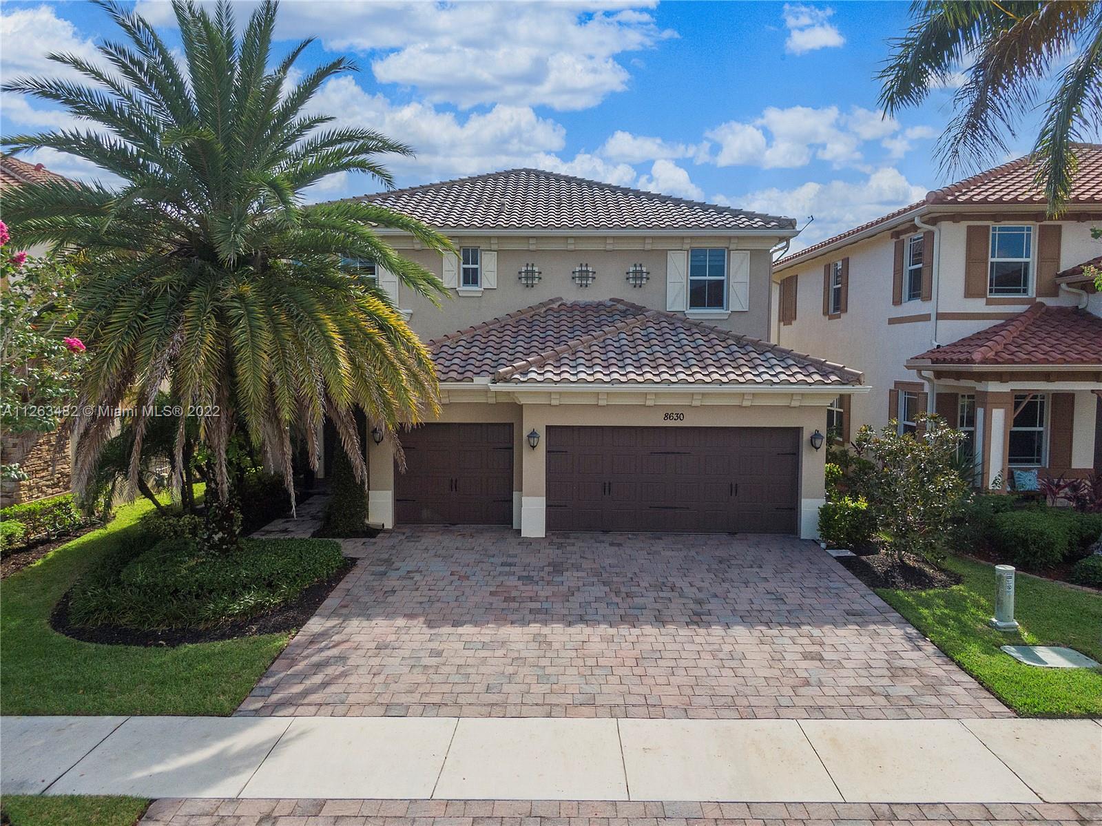Beautiful 2015 Tahoe Model in a stunning lake view lot and an impressive salt-water infinity pool. 3,714 Sq.Ft. under AC, 4 Bedroom + Den /4 Bath /3 Car Garage. Impact windows. Ground floor living room, eat in, formal dining and family room. Upgraded kitchen with White cabinets, granite countertop, gas cooking, double ovens and stainless appliances. Upstairs massive master bedroom suite with big walk-in custom closet. 3 Bedrooms all with walk-in closets. Laminated wood floors. Direct gas for water heater, stove, dryer, pool heater and outdoor grill. HOA includes lawn care front, back & sprinklers. "A" rated Schools. Enjoy two luxurious clubhouses which features a resort style pool, splash pad, fitness center, tennis courts;24-hour Guard Gated Community incl. secured pedestrian gate