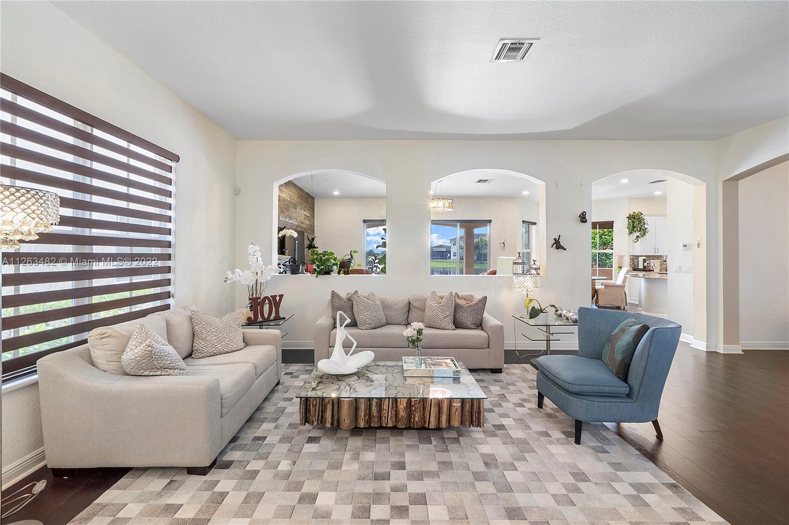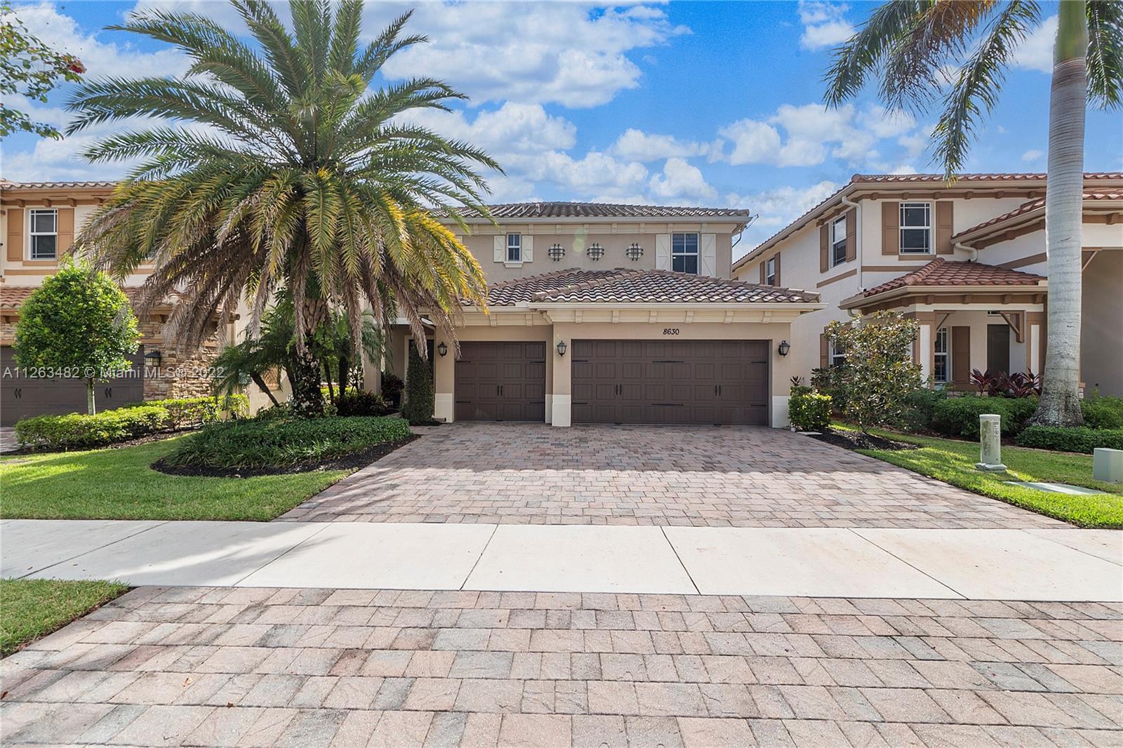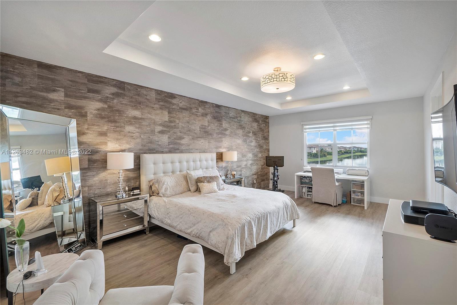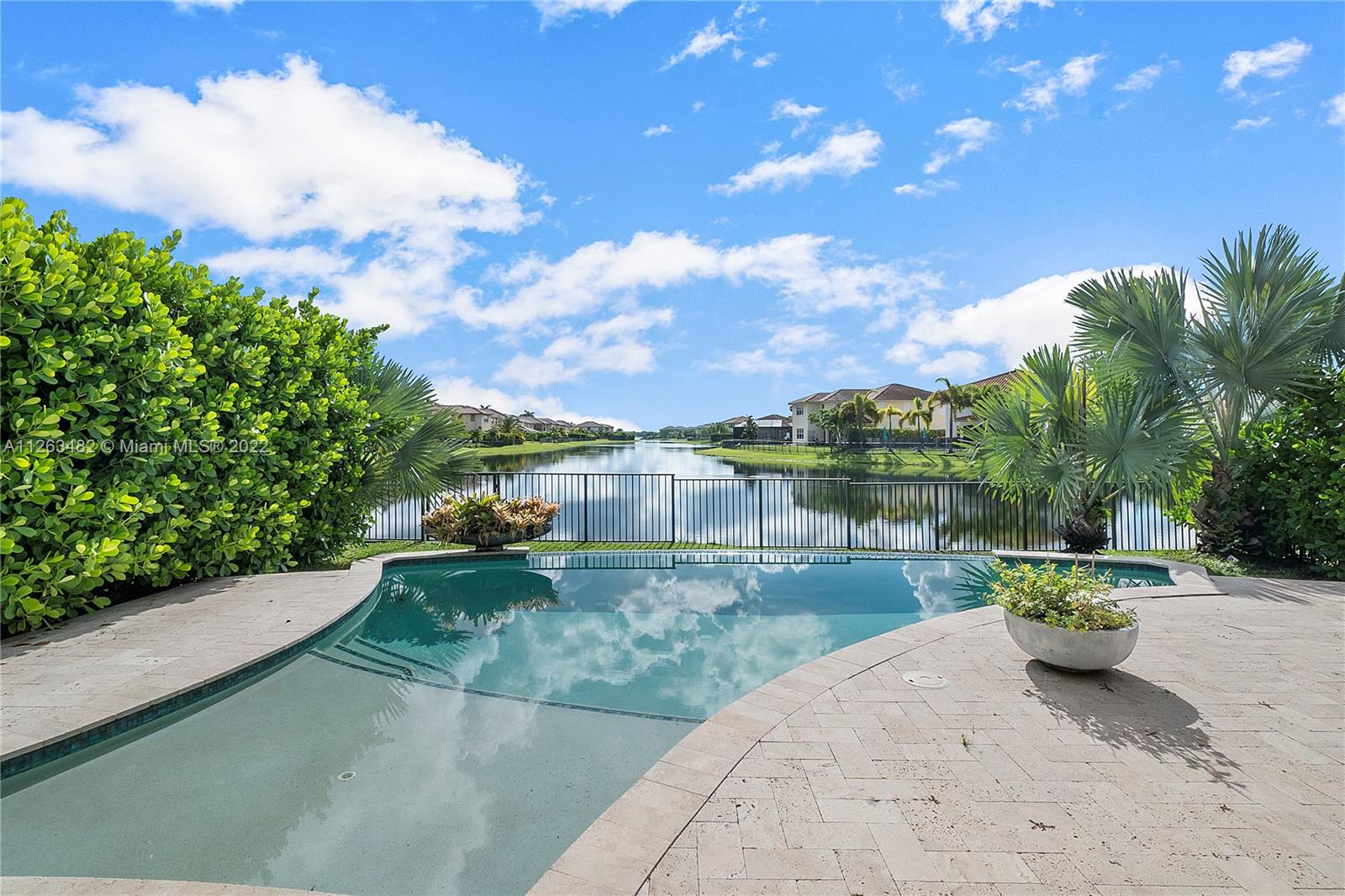 Beautiful 2015 Tahoe Model in a stunning lake view lot and an impressive salt-water infinity pool. 3,714 Sq.Ft. under AC, 4 Bedroom + Den /4 Bath /3 Car Garage. Impact windows. Ground floor living room, eat in, formal dining and family room. Upgraded kitchen with White cabinets, granite countertop, gas cooking, double ovens and stainless appliances. Upstairs massive master bedroom suite with big walk-in custom closet. 3 Bedrooms all with walk-in closets. Laminated wood floors. Direct gas for water heater, stove, dryer, pool heater and outdoor grill. HOA includes lawn care front, back & sprinklers. "A" rated Schools. Enjoy two luxurious clubhouses which features a resort style pool, splash pad, fitness center, tennis courts;24-hour Guard Gated Community incl. secured pedestrian gate