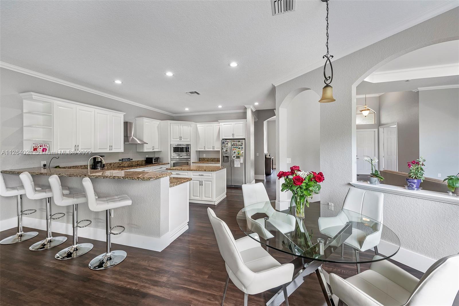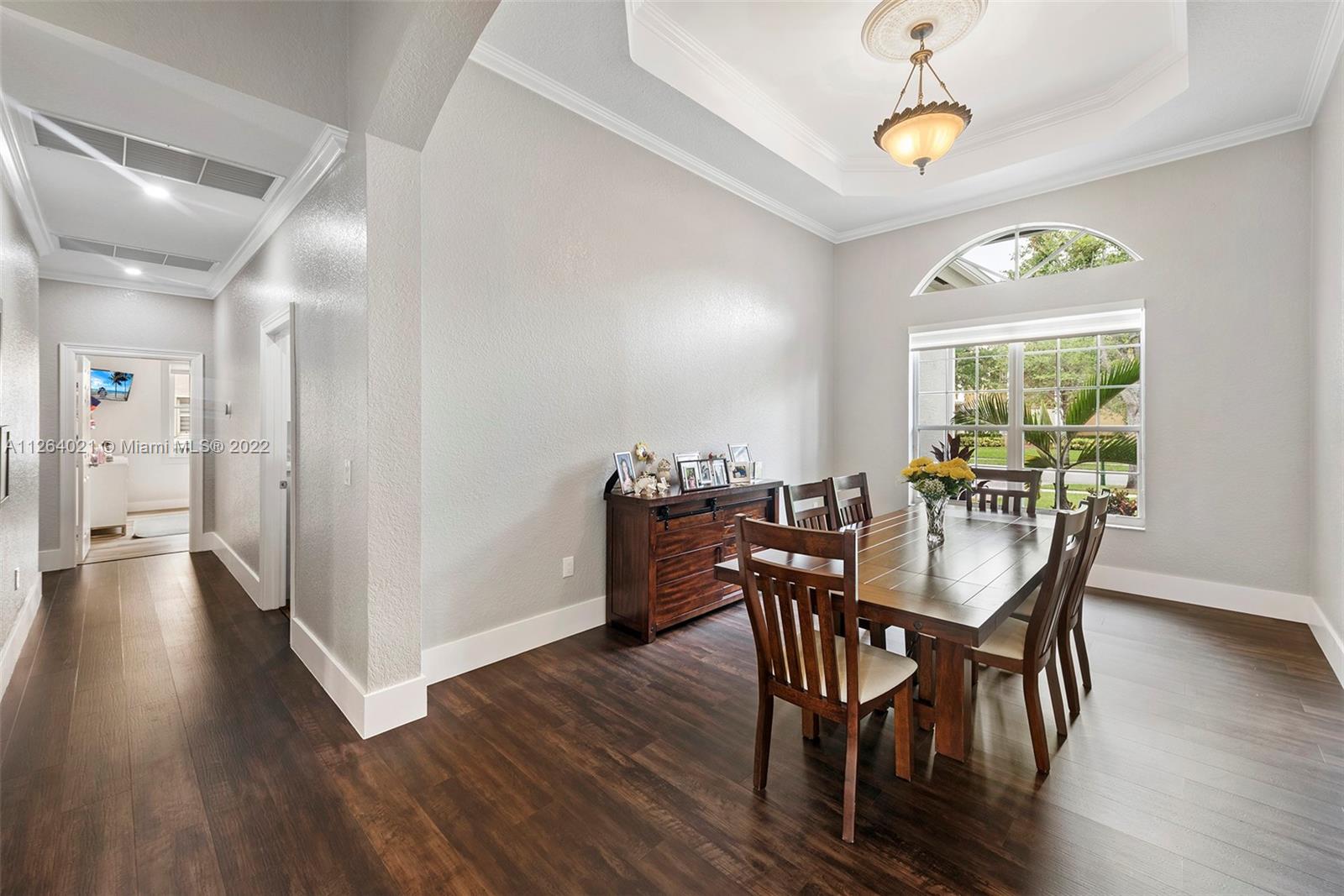 Captivating and beautiful renovated residence with a triple split floor plan, five bedrooms, three and one half bath featuring exquisite upgrades, very private & spacious living. The home is situated in the idyllic surroundings of the resort style community of Sunset Lakes. Luxury abounds throughout the home, with high ceilings and filled with natural light, bright spaces and clean lines. The impressive main suite features a custom master bath with spacious shower, top of the line fixtures, built out walk-in closets and serene views to the pool and garden. The open concept kitchen has stainless steel appliances and flows to the breakfast area and family room. Casa Caliterra is a great family home located in one of the most coveted communities in West Miramar.
