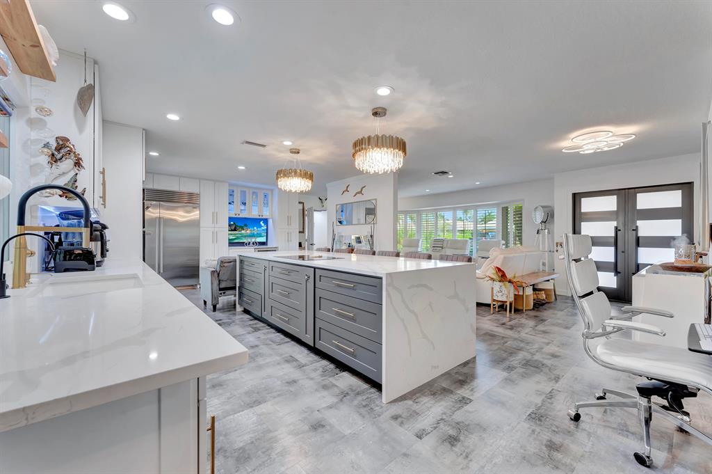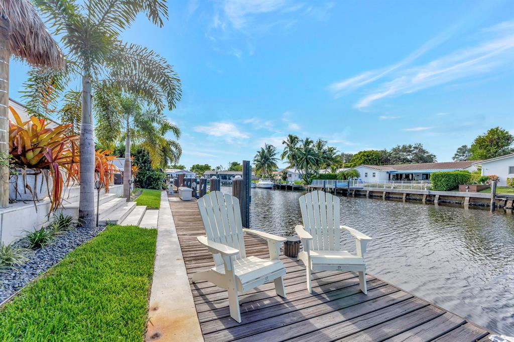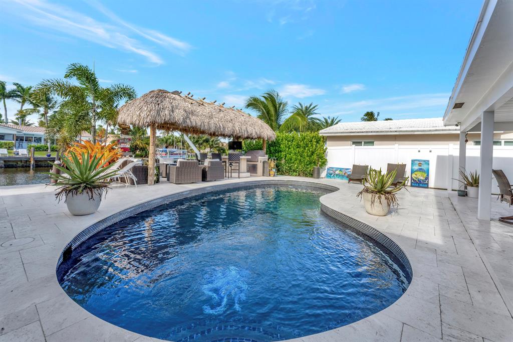 Amazing updated waterfront pool home with OCEAN ACCESS and FULL GYM w/GLASS Enclosure! Bayview area, Kitchen with quartz countertops, waterfall island. Subzero and Jenn Aire appliances. Backyard paradise with $200k in upgrades including new pavers, pool refinished with salt water system, Tiki summer kitchen, 85' of waterfront - 70' Dock equipped with water and electric, jet ski lift. Toto bidet toilets. Generator 2022, New Roof 2022, Water Filtration System 2022, A/C 2020, Rainbird sprinkler 2021 - New Hot Tub, Full Home Impact Windows and Doors 2021. Too many upgrades to mention. Near Lauderdale By The Sea, Westminster Academy, Pine Crest, Coral Ridge and BEACH!
