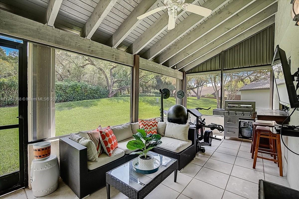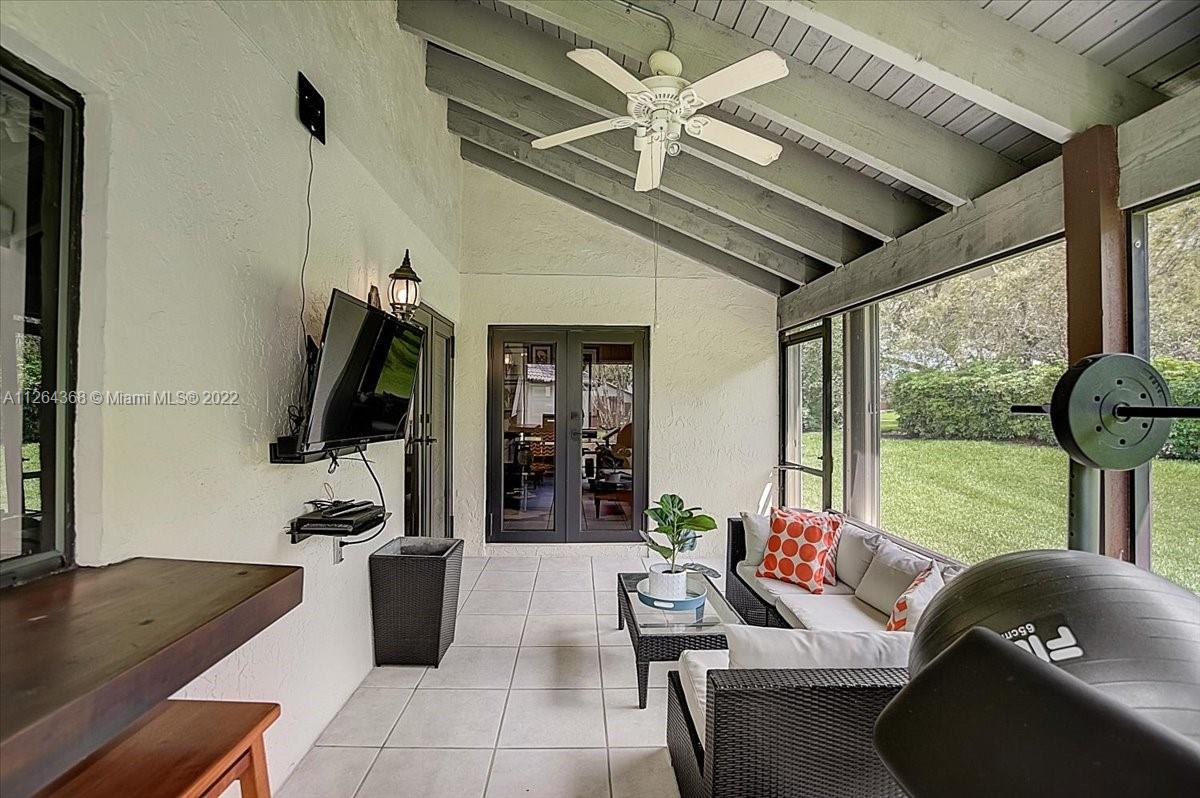 Welcome home to warmth and serenity! Located on a quiet cul-de-sac, this updated 3 Bedroom 2.5 Bathroom home is nestled in a quiet neighborhood down the street from an A-rated elementary school. This home features a loft perfect for a home office, playroom, or 4th bedroom. Entertain on the large screened patio with vaulted cedar ceilings overlooking the lush green space. Cook tasty meals in your open kitchen with white wood cabinets, stainless steel appliances, and granite counters. Enjoy serving dinners in the formal dining room. The primary bedroom features a custom built-in walk-in closet with tons of storage. All windows and patio have accordion shutters that are serviced yearly. This one is special! Lawn care included in low HOA. Close to Weston Town Center, Airport
