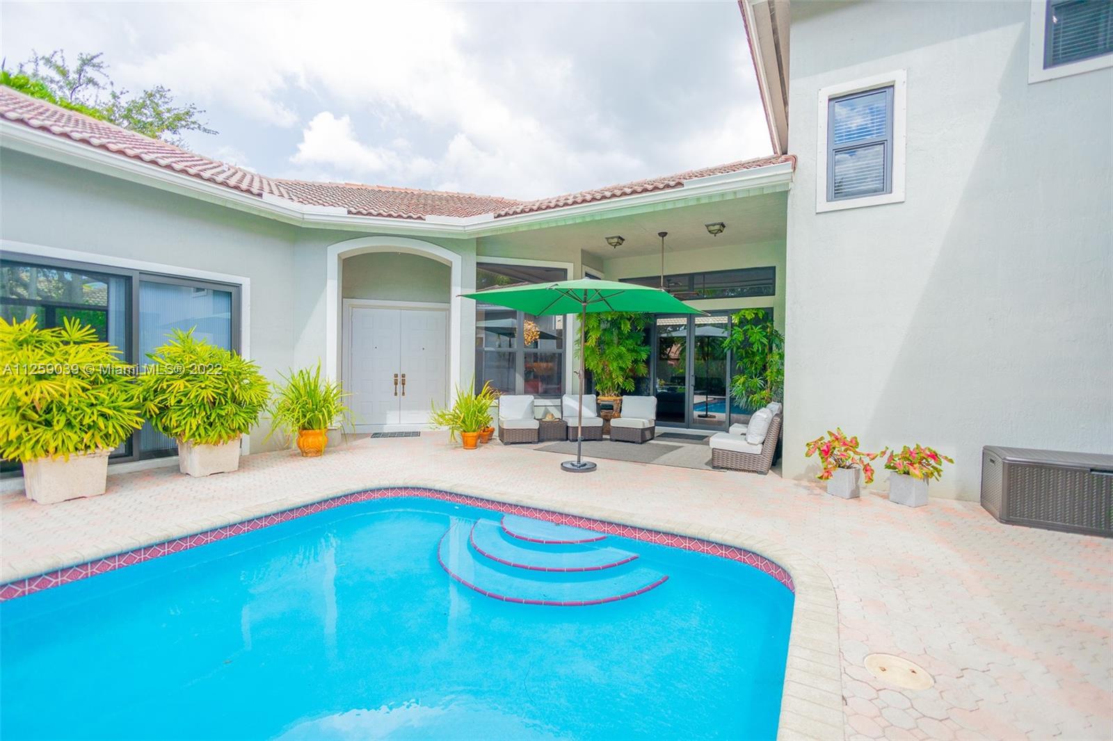 Paradise Awaits In your Tropical Oasis, Exquisite Courtyard Home in Gated Community of Mariners Cove, Large Premium Lot, Guest Quarters overlooks Pool, Perfect for Home Office. Impact Windows and Doors Throughout, 5 Bedrooms, 3 and One-Half Bathrooms, 3 Car Garage, Kitchen remodeled and exrended, Large Island, Brazilian Tile Floors, Top Of The Line Stainless Steel Appliances, Thomasville Cupboards, Granite Counters. Top Of The Line Wood Floors, 12' high Ceilings, Custom Window Blinds on First Floor, Master Bedroom Located on 1st Floor Features Black out Blinds, Step Into Your Spa Like Master Bath to Unwind. Pool Resurfaced in 2021, New AC 2021, New Water Heater 2020, Hi Hats and Recessed Lighting installed on Fist Floor in 2022, Interior House Painted 2021. Close to Sawgrass Expressway.