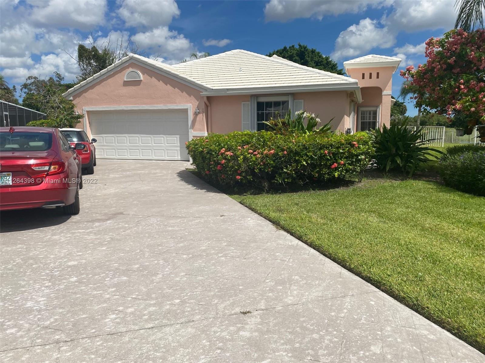 Beautiful Spacious, Light & Airy residence located in the private guarded Grand Palms Community in Hollywood Lakes Country Club and Resort. Surrounded by lush green landscape,this 2Bedroom+den (3rd bedroom) 2bathroom home has a spacious master bedroom opening to the terrace & pool. Family room, laundry room, 2car garage, accordion shutters, fenced yard. Oversized 10,573 sq. ft.lot. Grand Palms amenities include 3 golf courses, Mediterranean Designed Country Club, State-of-the-Art Tennis & Athletic Club, Guest Suite Hotel. Close to major highways I-75 & Turnpike,Restaurants & shops.2 Monthly HOA Payments,Grand Palms $175.Wilshire $215. HOA covers lawn maintenance, ADT home security, basic cable, roof & sidewalk pressure cleaning, exterior house painting, 24hr gate and neighborhood security.