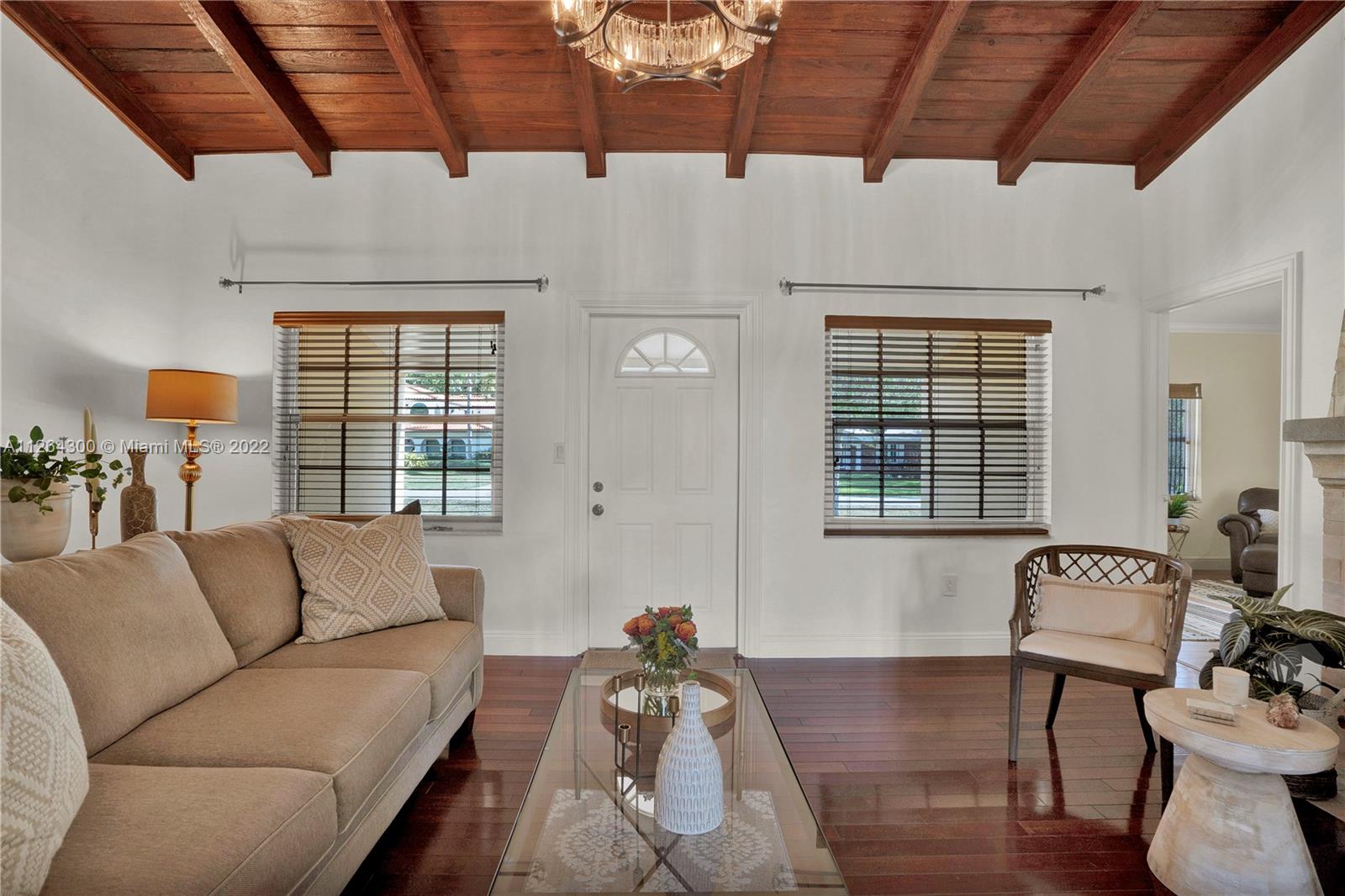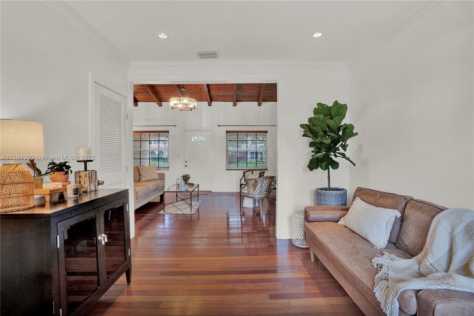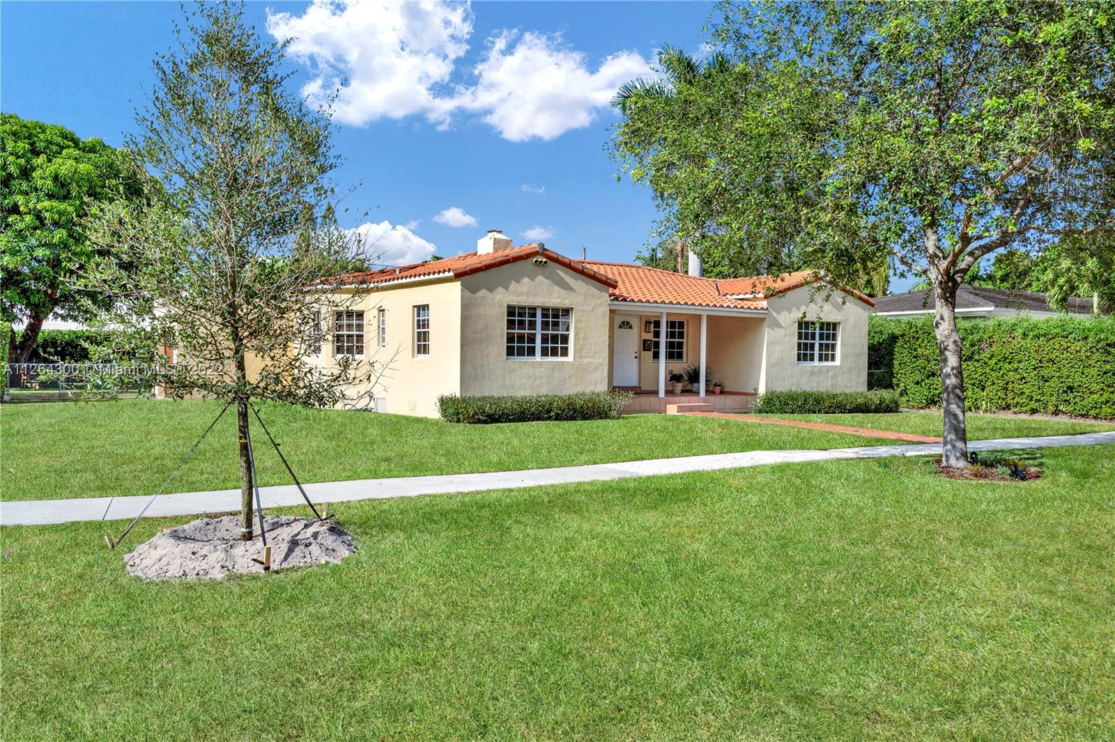 Step inside this charming and immaculate home situated on an oversized corner lot in the highly sought-after neighborhood of Miami Shores! This well-kept residence features a split floor plan with 3 bedrooms, 3 full baths (2 remodeled), single-car garage, large dining room for lots of entertaining, and much more. Other unique features include the living room high ceilings that boast refinished exposed beams, tastefully re-designed fireplace, and a welcoming covered front porch. Dreaming of being poolside in a large private backyard for the kids to play? You've got plenty of room to add it all, plus a mature fruit-bearing mango tree to go with it. Between the A-B rated school district and only walking distance to the Miami Shores Rec Center & Country Club, there's no place you'd rather be!