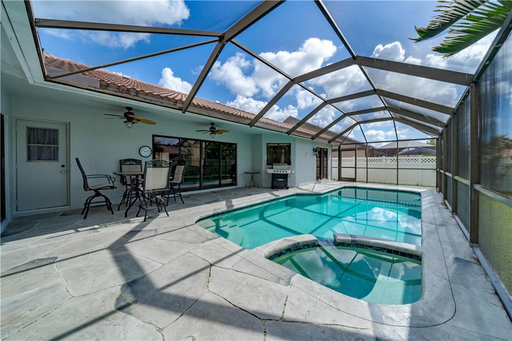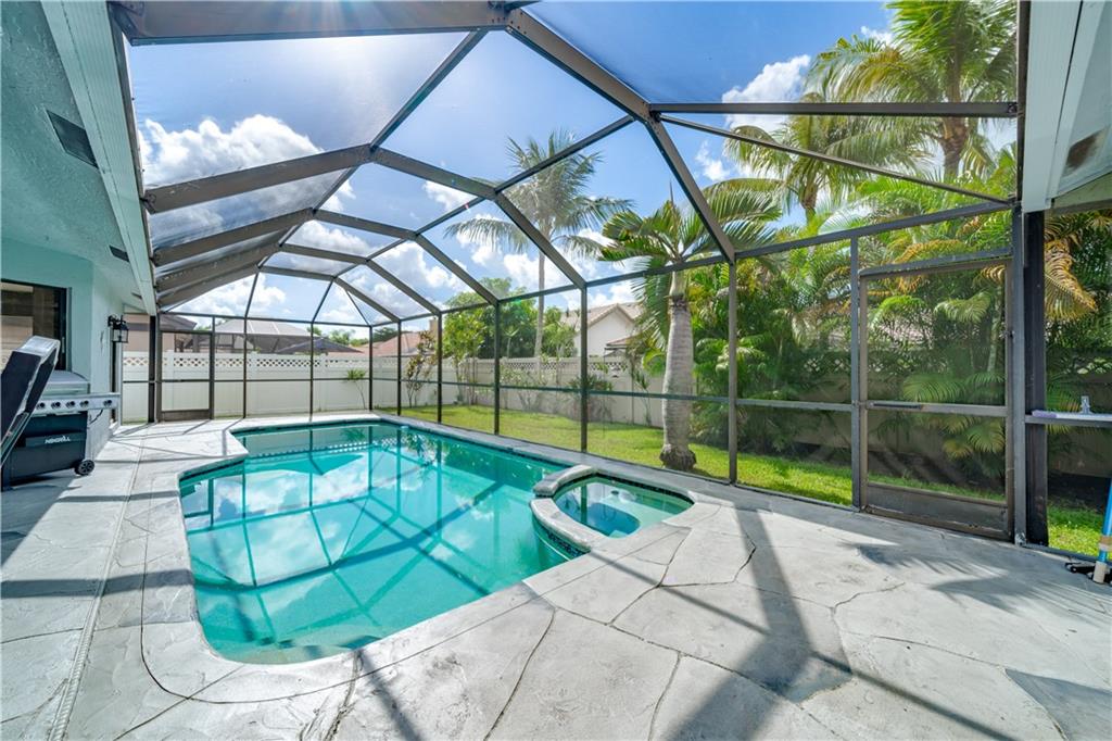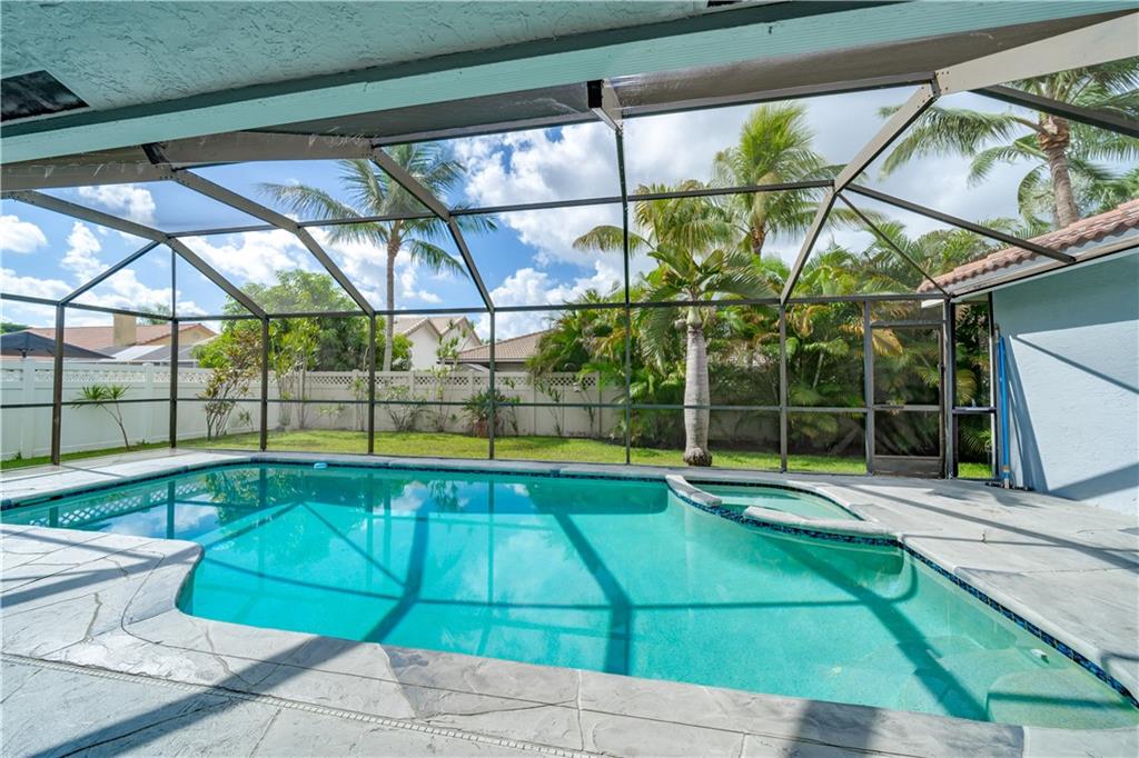 THIS IS A MUST SEE BANYAN MODEL ON A NICE A QUIET INTERIOR LOT! THE HOME WAS JUST PAINTED ON THE INTERIOR AND EXTERIOR! NEWER BARREL TILED ROOF 2007 AND NEWER A/C AND WATER HEATER 2015! THIS FLOOR PLAN FEATURES AN OPEN FLOOR PLAN WHICH THE OWNER REMOVED THE WALL BETWEEN THE LIVING ROOM AND THE FAMILY ROOM TO MAKE IT A MUCH LARGER FEEL! THE LIVING AREAS FEATURE LARGE WHITE AND LIGHT GREAT PORCELAIN TILE THROUGHOUT! LAMINATE FLOORING IN THREE BEDROOMS AND CARPEING ON THE OTHER!ALL UPGRADED STAINLESS STEEL APPLICANCES! SCREENED IN POOL OVERLOOKING THE FENCED IN BACKYARD WHICH IS GREAT FOR PRIVACY! CLOSE TO THE WALKING TRAIL IN THE NEARBY PARK AND WALKING DISTANCE TO THE SCHOOLS! TWO NEW VANITIES IN THE MAIN BATHROOM ALSO THE SECOND CABANA BATHROOM!HOME HAS A WELL FOR THE SPRINKLERS!