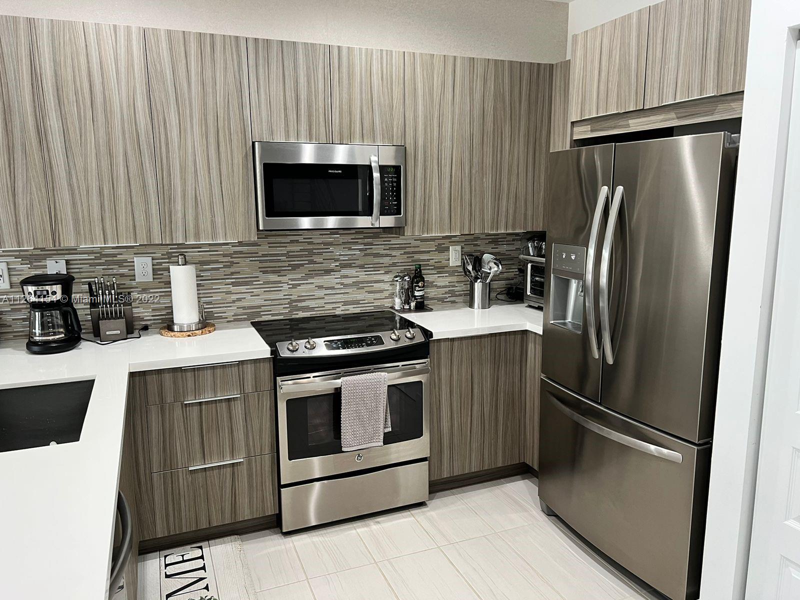 Welcome to Astoria in Doral. Enjoy the privacy in a gated community, with a resort-style clubhouse that includes a pool, gym, party room, tennis court, kid's water park, and much more. Beautiful townhouse, 3 bedrooms, and 3 bathrooms. Open kitchen with quartz countertops and stainless steel appliances. !!NEW HURRICANE IMPACT WINDOW AND NEW CUSTOM-MADE CLOSETS INSIDE BEDROOMS!!