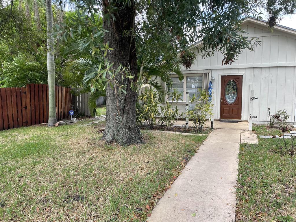 INVESTORS SPECIAL!!! NO HOA!! Cozy, 1/2 a duplex on the largest lot in the cul-da-sac. The duplex is a 2 bed 2 bath unit with an open concept living room and dining room with vaulted ceilings. The gally kitchen has a door to the back patio that is currently being used as a bedroom that has a door to the backyard. Next to the kitchen is the washer and dryer. Down the hall from the living room is the guest bathroom, guest bedroom and 2 linen closets. The master bedroom has a walk-in closet, bathroom with walk in shower, a foyer and private entrance that leads to the backyard. The large, fenced yard has plenty of space for you to create an oasis of tress, bushes, flowers or add a pool. AC is 3 years old.