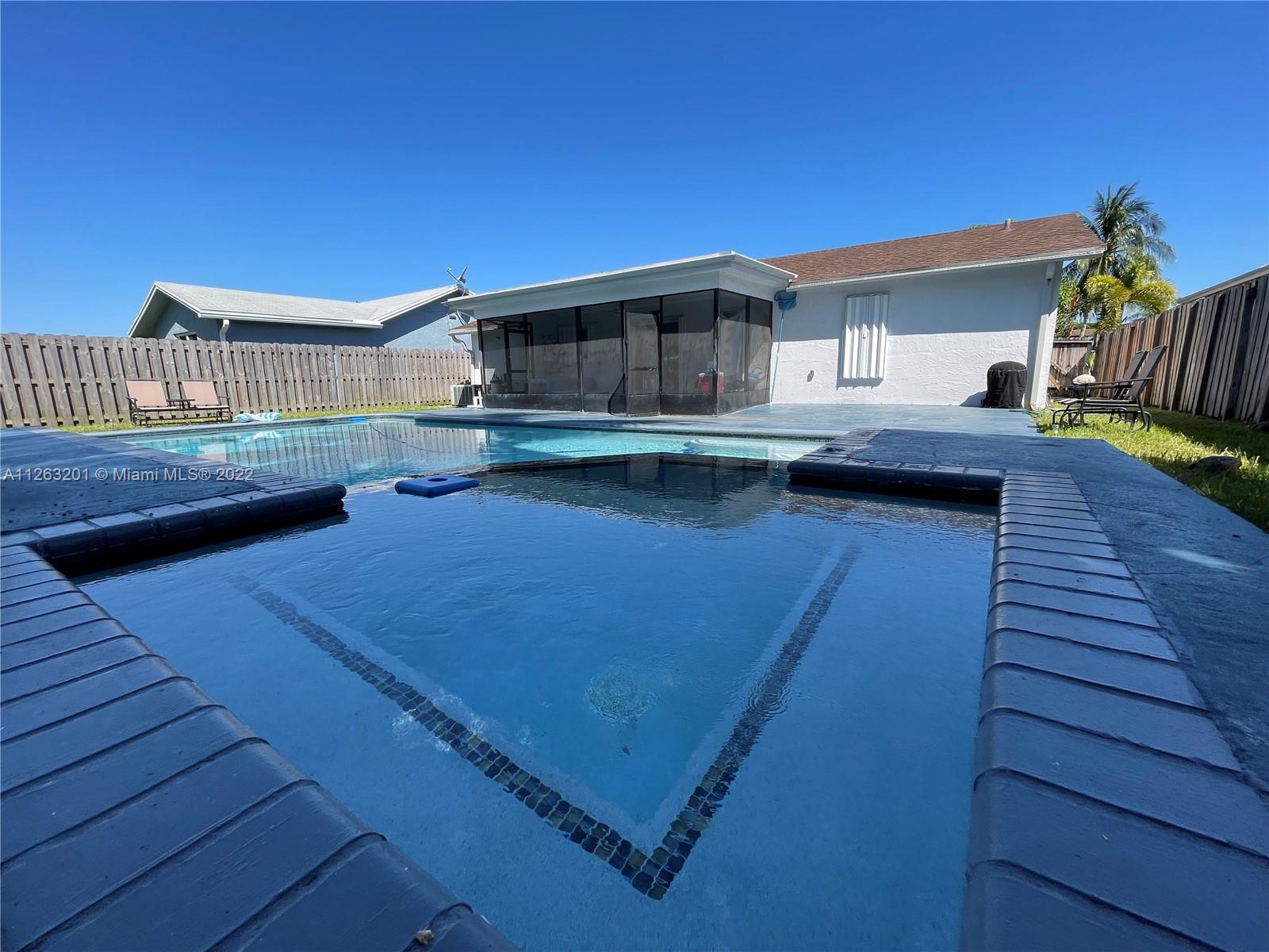 Incredible opportunity to own this fantastic property!! The best neighborhood in West Sunrise. Interior features include an exquisite and modern kitchen with quartz counter top, LED high hat lighting. This pool home features 3 bedrooms and 2 bathrooms. New Outdoor Sprinkler System, beautiful and Oversized pool with dimensions 18x36 surrounded by fruit trees, and large Fenced Back. NO HOA