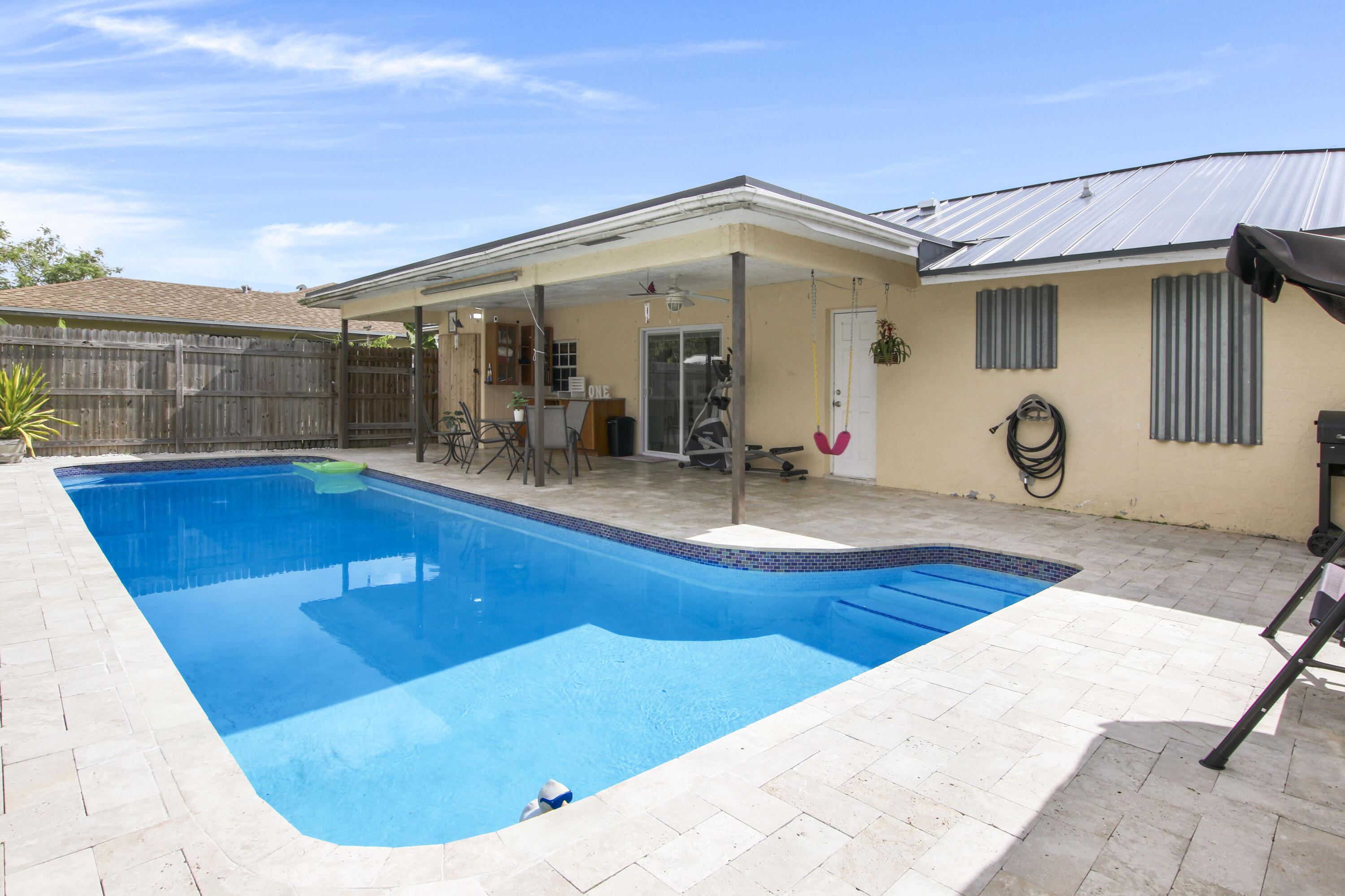 Incredible opportunity to move into this Beautiful pool home with new metal roof. A/C and water heater. The main house has 3 bed 2 bath garage turned into an in laws apartment, Money maker that features 1 bed 1 bath & double fenced backyard. open floor plan. Both kitchens are updated with granite counter-tops & stainless-steel appliances.Too much to say just book your showing.SOLD AS IS