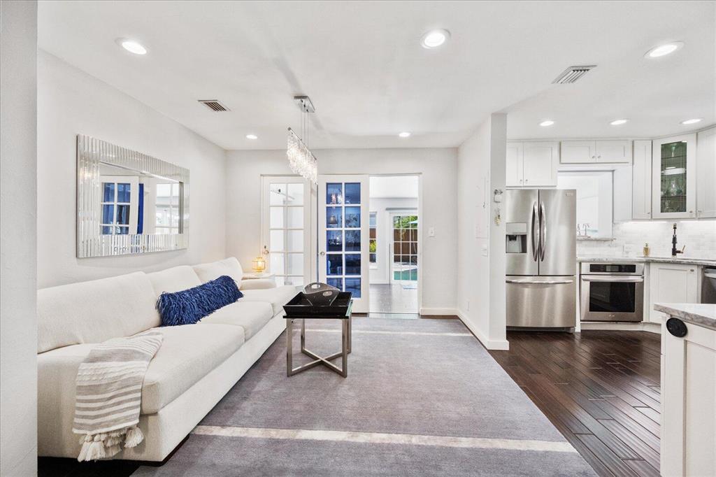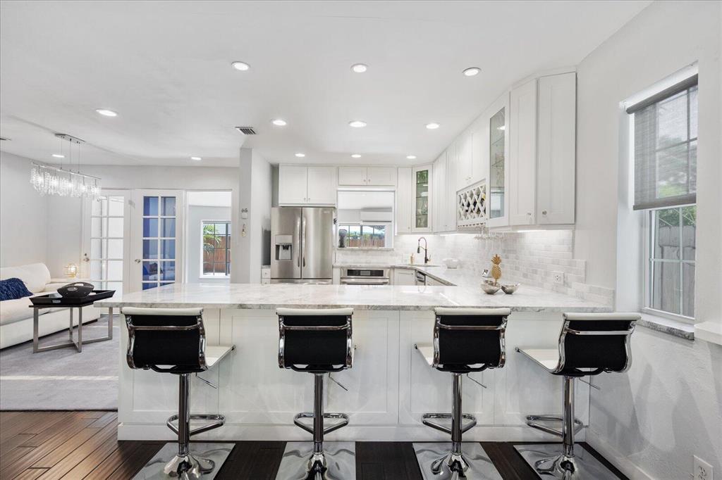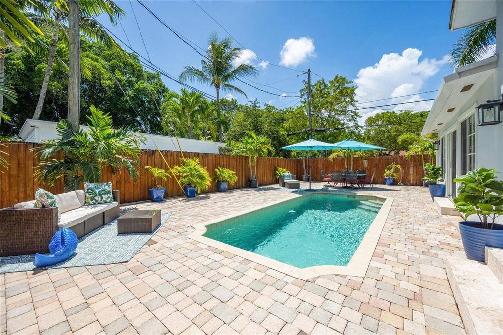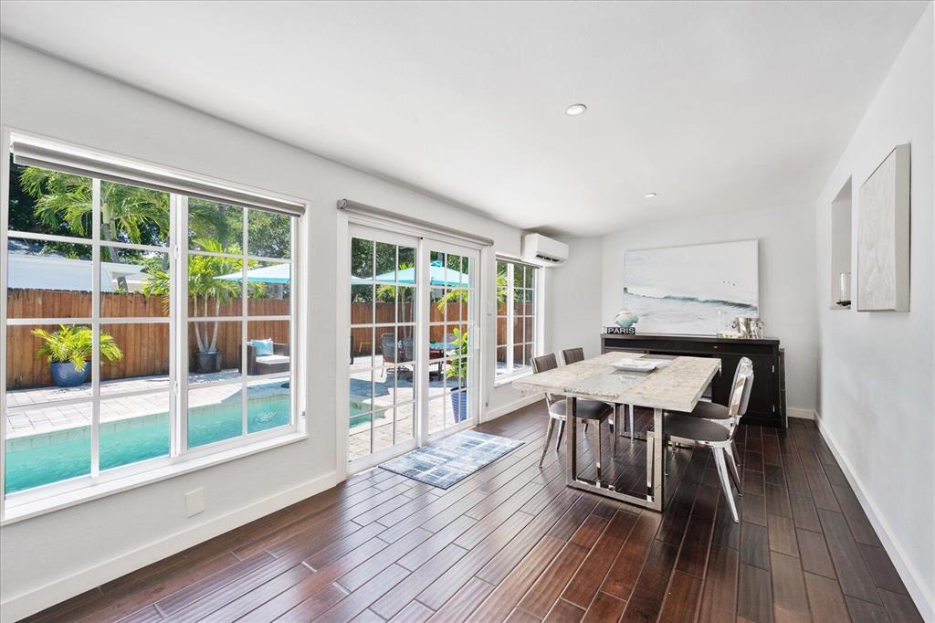 This beautiful gem is a one of a kind. This immaculate corner home with pool is move in ready with custom kitchen and bathrooms with top of the line everything! A resort-like feeling throughout the home and outdoors prevail. Generator, newer roof, A/C and all impact glass. Wood floors throughout. The backyard is oversized with an inviting pool. Chicago brick double driveway that can accommodate 3 cars for off street parking. Close to all the existing great restaurants and the new ones coming soon! It is the place to be. No details overlooked in this inviting home. One room could be converted to make another bedroom. Great area for seasonal/annual or airbnb rental income. Must see to appreciate!