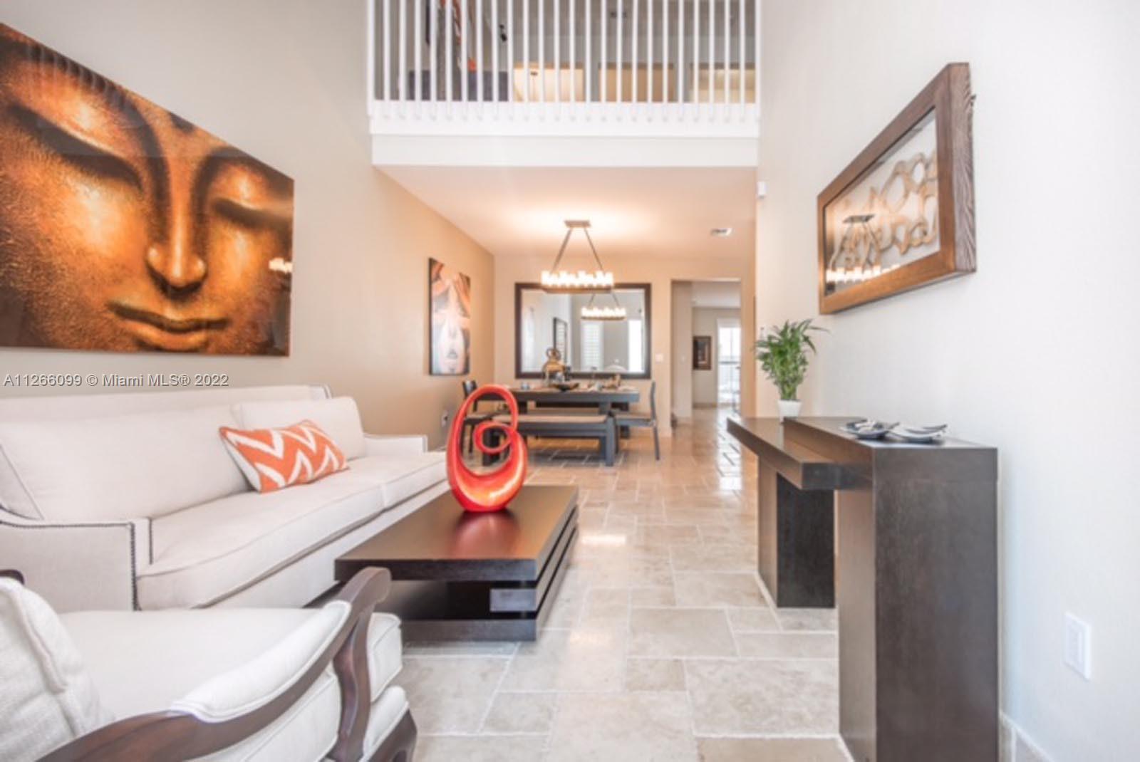 Stunning Model-like home. Available Turn-key, Fully Furnished. Upgraded 3/3 with 1/1 on the first floor. High Vaulted Ceiling loft with Bose Surround Sound Theatre. Italian Travertine Floors and Hand Scraped White Sand Walnut Wood on stairs and loft. Plan tation Shutters decorates the interior along w/oversized Crown Molding. SS Kitchen w/Bar Area leading to the Family Room. Paved Patio ready for Bbq gatherings. Don't Miss this Opportunity as Impeccable Upgraded Properties like this are Hard to find.