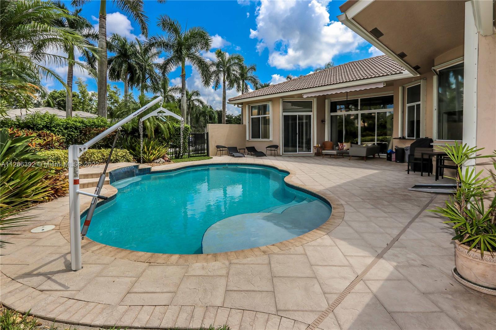 Welcome to your Dream House in beautiful Weston Hills Country Club. This is a ONE STORY , 4 Bedrooms + Office or an Extra Bedroom(oversized bedrooms) and Circular Driveway with Extra Parking Space ( 6 and over) . Upon entering gorgeous pool views set the tone for an inviting and classic South Florida living area. The home is walking distance to the BUS STOP from all schools and a beautifully maintained neighborhood park .The home is meticulously maintained with high-end custom design touches , including high ceilings ,custom closets and saltwater pool with cascade. The property is excellently located near top rated A+ schools, restaurants, major highways, a twenty minute drive to Florida famous beaches at Ft. Lauderdale and Hollywood international Airport.