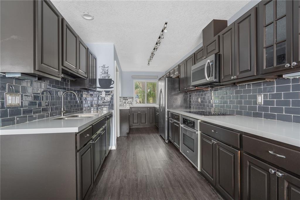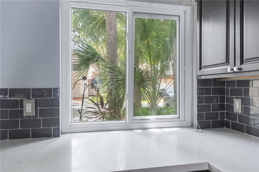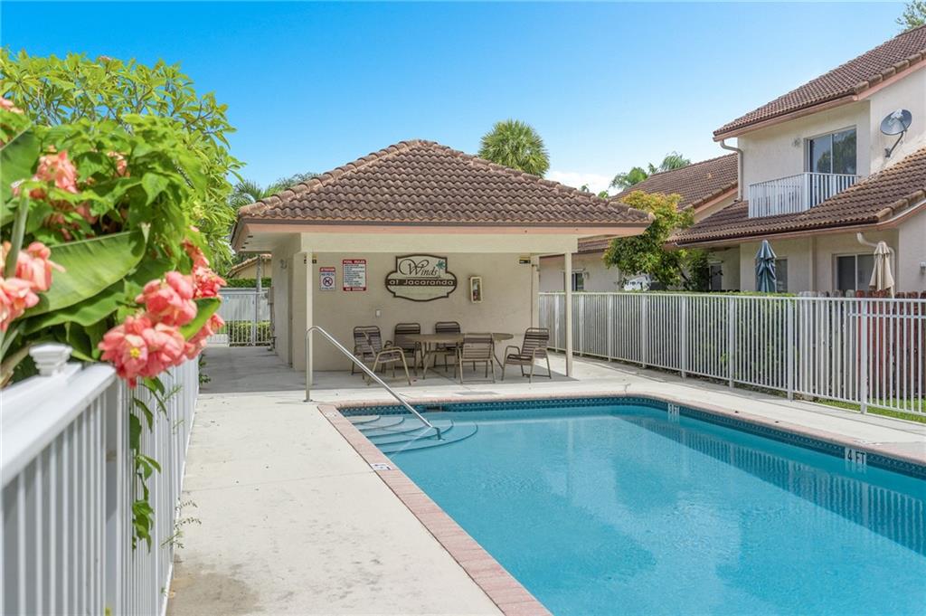 Centrally located in the desirable Winds of Jacaranda townhome community, fall in love with the style & convenience in this light, bright two-story home featuring many upgrades including impact windows & doors for added peace of mind. Design details include vaulted ceilings, new paint, updated flooring, new kitchen & baths, plus updated fixtures & finishes. Private fenced yard plus enclosed terrace offers plenty of space for al fresco living, dining & entertaining. Outside you’ll find hot tub-ready electrical for easy installation. Elegant kitchen features custom cabinetry, tile backsplash & stainless steel appliances. Upstairs primary bedroom features walk-in closet & en suite bath. Secondary bedroom has its own private bath as well. Winds of Jacaranda features private pool & low HOA.