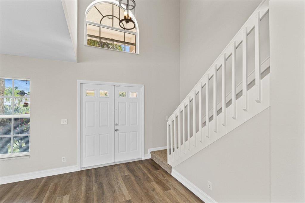Charming four bedroom updated two story home perfectly positioned on a tranquil private lakefront lot. Flexible open floorplan offers formal living and dining room, family room, bright open white kitchen w/stainless appliances. All bedrooms are upstairs. Recent updates include wood look vinyl plank flooring, freshly painted throughout, new soaking tub and step in shower in primary bath and new carpet upstairs. Screened patio plus a spacious backyard perfect for kids play area or entertaining family and friends. Low HOA fee includes front lawn maintenance, sprinklers, community pool & tennis court. Close to great schools, shopping, Publix, parks & restaurants. 2CG. Close to the community pool & tennis court. INVESTOR FRIENDLY - CAN RENT IMMEDIATELY! NEW AC/HOT WATER HEATER JULY 2022