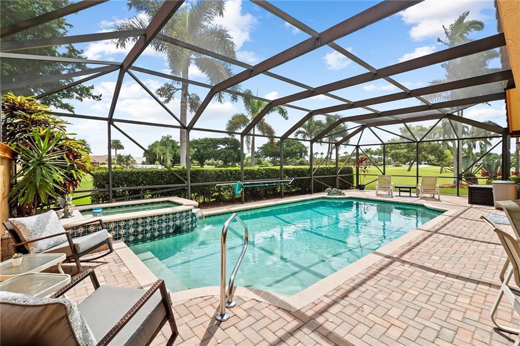 Beautiful landscaped oversized lot located on a cul de sac with pool and spa overlooking a golf view! Updated two bedroom, two bath plus office/den, two car garage. Pristine home features an open, bright and spacious living area, updated open kitchen, quartz counter tops, newer ss appliances, updated baths, tile throughout living area ,laundry room w/sink and storage closets. Oversized lot features a screened in expansive paved patio with pool/spa. Resort style living w/two 18 hole golf courses, tennis facility, pickelball, new state of the art fitness center, spa, game room, fine/casual dining & more! Mandatory membership $95,000 ($20,000 equity refundable when you sell home) paid to BWCC 10 days prior to closing. See attachment for additional yearly dues& fees to BWCC & POA.