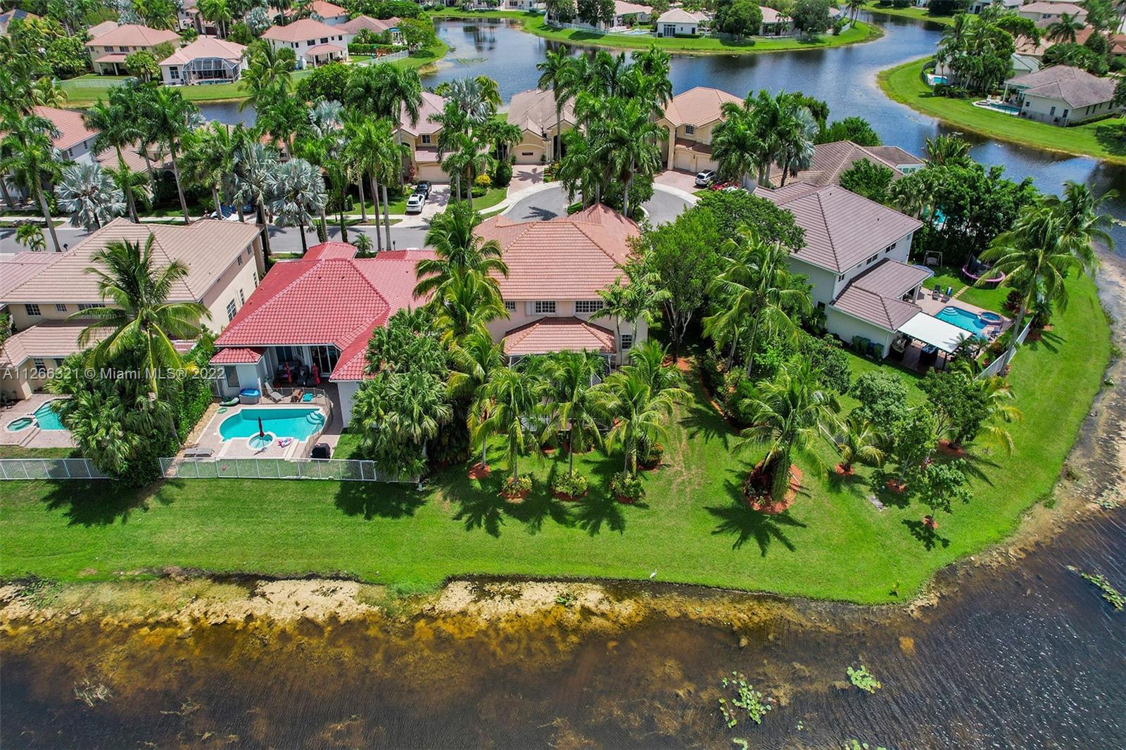 Heatherglen model on oversized cul de sac lot w/ unobstructed water views. Enjoy views from your screened patio, w/ plenty of room for pool. Oversized family room w/ full bath and 3 car garage. 2nd level features 5 bedrooms plus den (could be 6th bed) and 3 full baths. Renovated white kitchen w/ SS appliances and granite countertops. Imported Italian tiles throughout house. Owner Suite has sitting space w/ connected Den/Office space/6th bed, large walk-in closet. owner bathroom has shower and whirlpool tub. Newer AC unit for upstairs and water filtration system throughout. Hurricane protection includes impact windows on 3 sides, back side full accordions. Garage w/ specialty flooring and plenty of storage w/ sauna. Walk to community park w/ soccer field, playground, and basketball court.