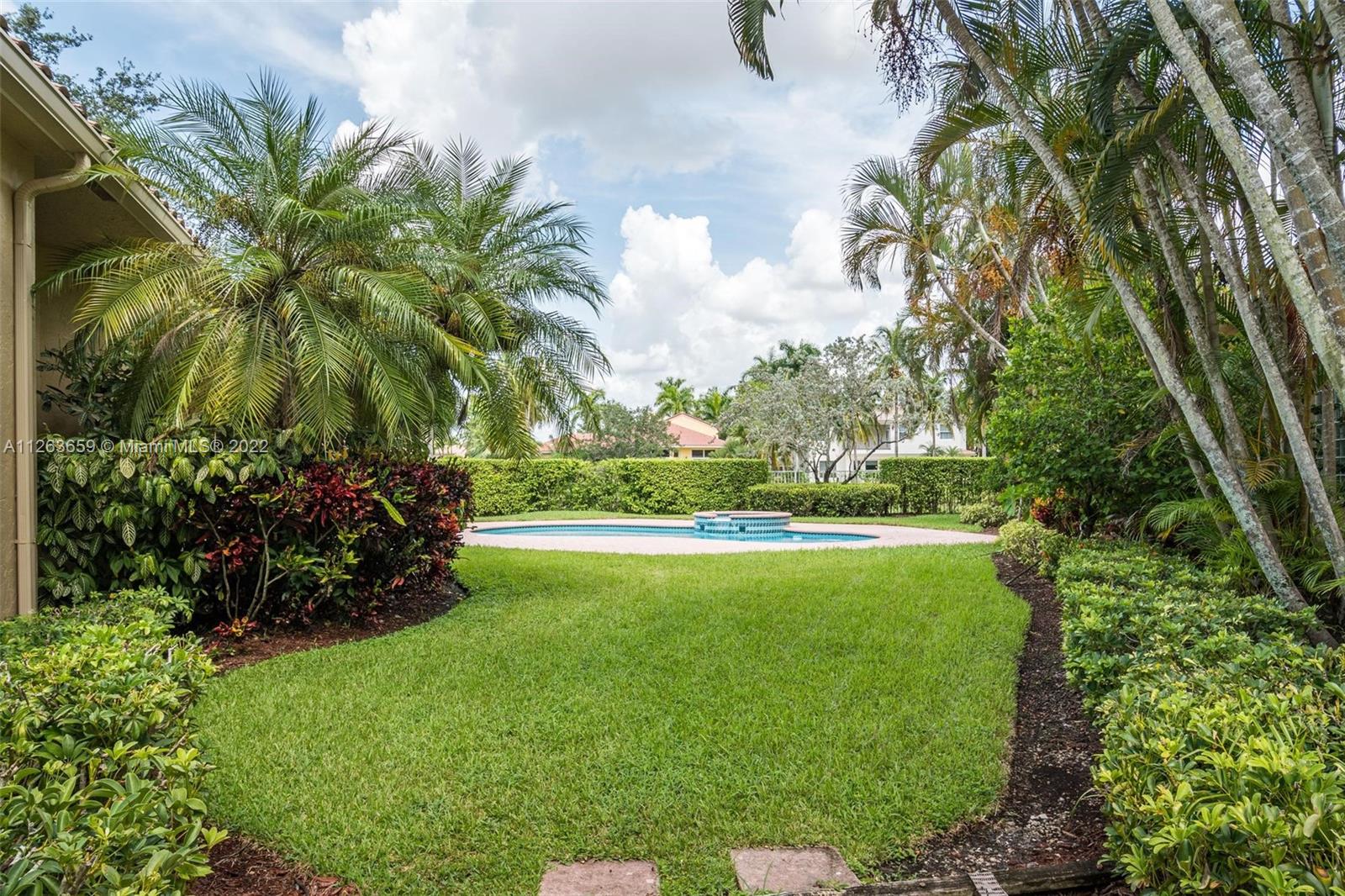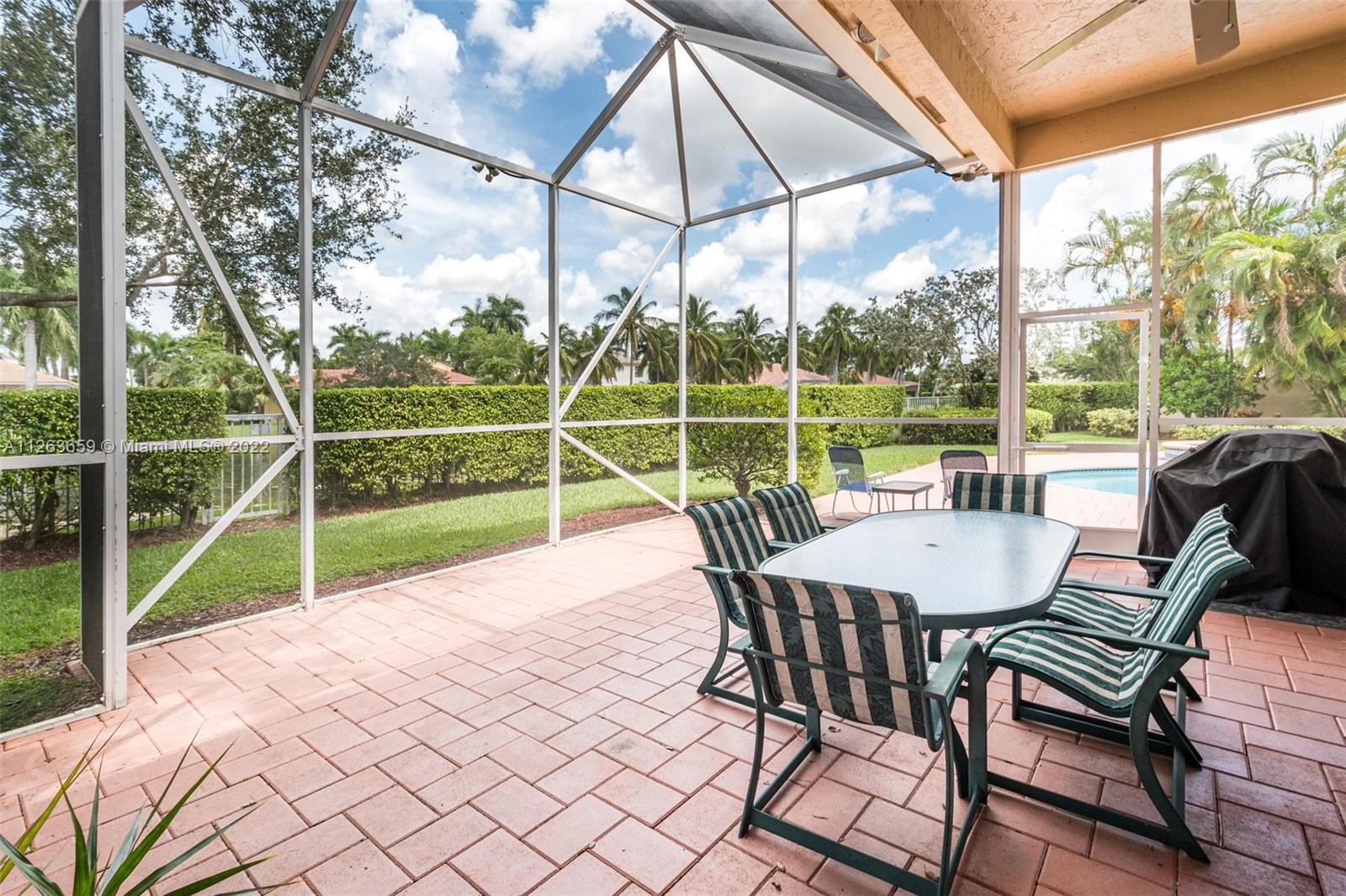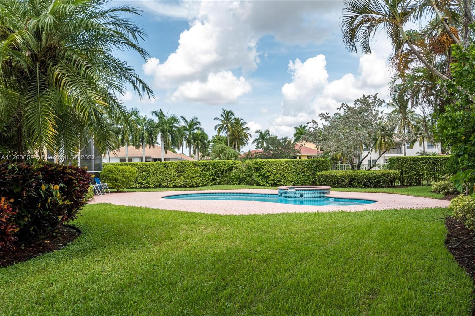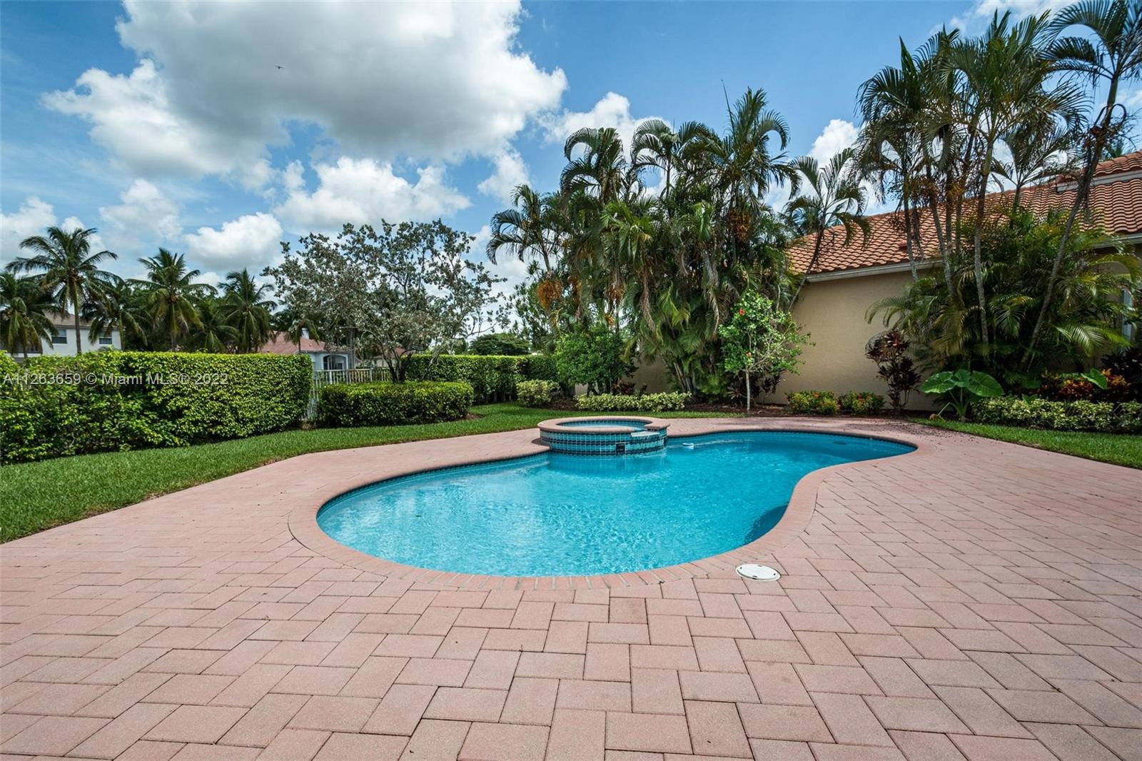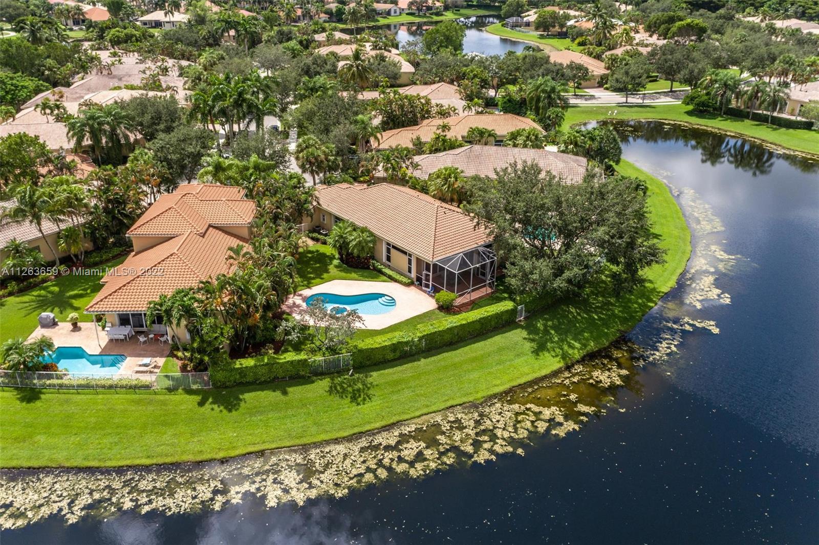 This spacious 3 bed/3 bath waterfront home in Bay Isle - Weston Hills CC has it all. This 2,652sf home is located on a 14,241 cul de sac lot. NEW ROOF. NEW AC. Pool surface just refinished. Open floor plan with 14' ceilings. Open kitchen w/ new appliances and granite countertops. Plantation shutters. LED lighting. Enjoy incredible sunset views from your screened in patio with oversized lot providing the ultimate privacy. Accordian shutters throughout. 2-car garage. Fully maintained community including lawn/landscaping, fertilization, pressure cleaning and painting.