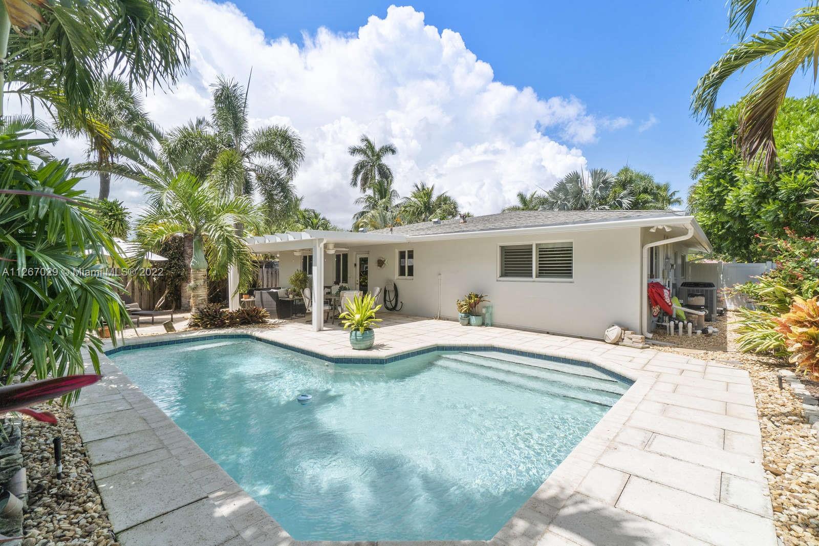 PRIME LOCATION in HOT area! A few short blocks to the beach, pier, restaurants and shopping! Paradise awaits in this 2/2 w/garage, fully remodeled, open-concept pool home w/impact windows/doors, neutral tile throughout, custom kitchen w/Bosch S/S appliances, pantry w/ pullout shelves, granite counters, plus a HUGE center island perfect for entertaining! Step outside and enter a tropical oasis! Fabulous, temperature controlled pool, spacious covered patio, fully-fenced yard w/outdoor shower, professional tropical landscaping, lighting, pavers and sun pad. Newly installed turf will be perfect for your pets! Huge circular driveway and no HOA. Nothing to do here but relax and enjoy the south Florida lifestyle. Hurry!