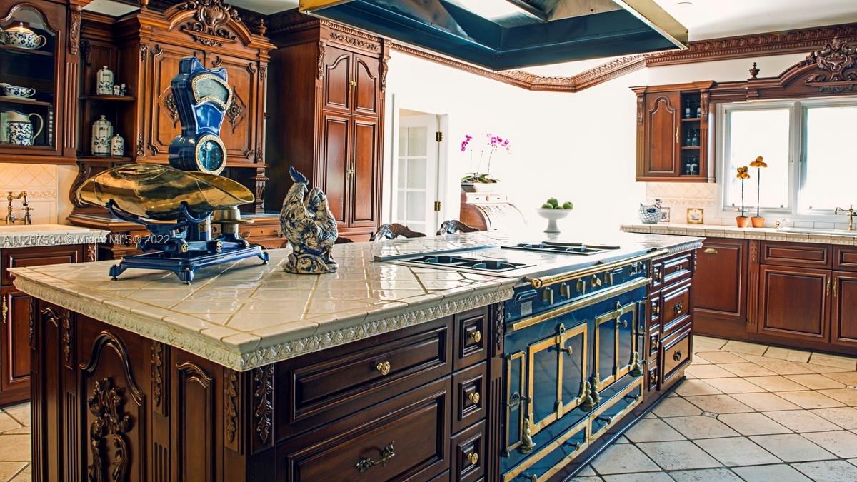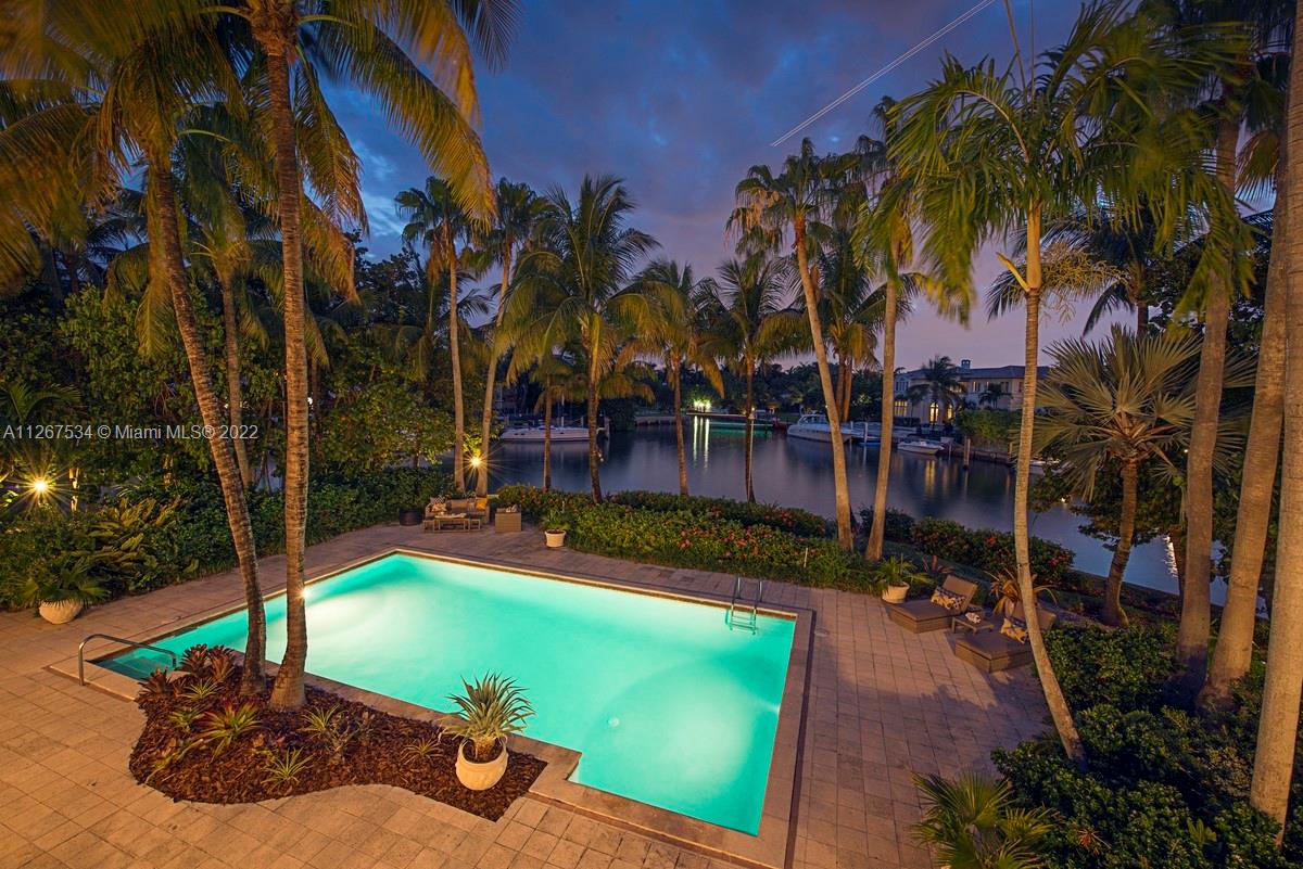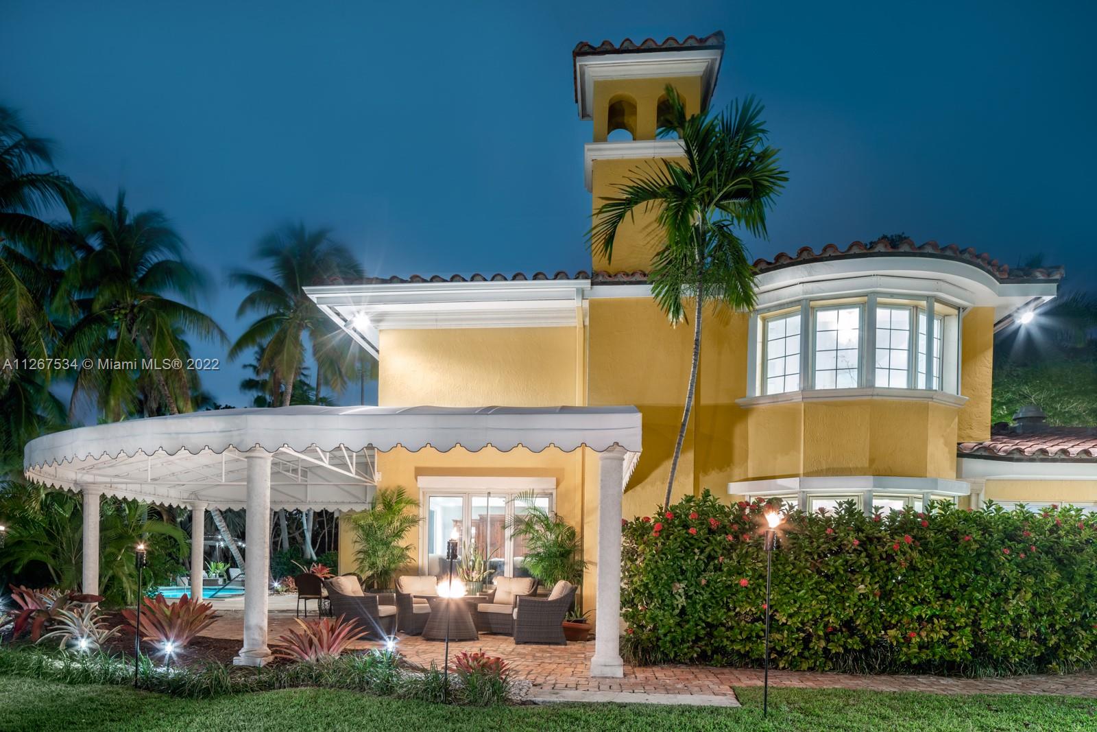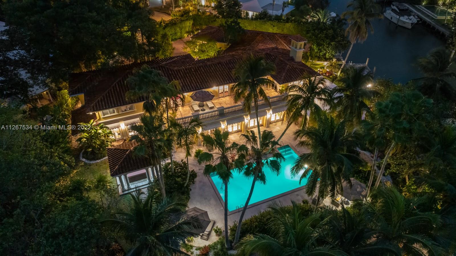 Peninsular ¾ acre estate on a tranquil cul-de-sac with 327 feet of waterfront views behind a 10 ft tall iron gate provides resort-style privacy minutes-walk from sandy beaches, shopping and dining. The 6BR/8BA Mediterranean residence features an upstairs Master with bayfront balcony overlooking a deep-water swimming pool. Wood-paneled office & den downstairs tempt you to work from home. Epicurean kitchen with hand-carved artisan cabinets, Sub Zero appliances, LaCornue range, pizza oven and rotisserie, beckons entertaining for 50+. The 8,800sf two-story residence on a 31,000sf waterfront lot with 4-car garages, 15+ car driveway, porte-cochere and dockage for a 70+ ft yacht plus tender plus jet skis with no bridges to Biscayne Bay & Atlantic Ocean will entice boat and car enthusiasts alike.