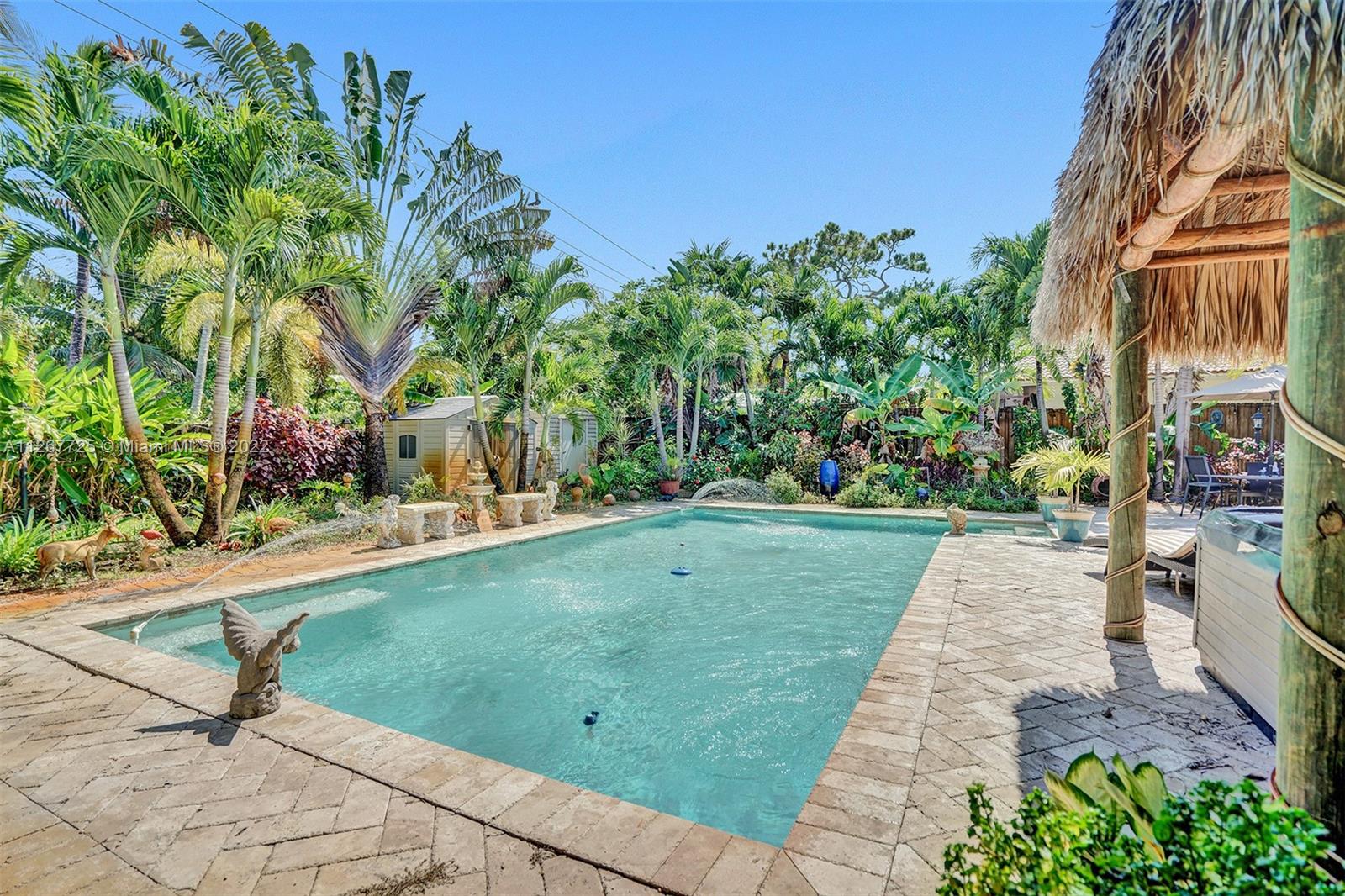 This 3 bedroom/2 bath/ 1 car garage pool home has been completely updated and has been meticulously maintained!! The backyard is stunning with high end etched/sealed marble pool deck, a tiki hut and new jacuzzi! The kitchen has granite countertops and stainless steel appliances. All the windows and doors are storm rated for not only safety..also insurance discounts!! The roof is in great condition/installed 2013, the AC is 2013, and the plumbing is PVC. The home comes with 2 sheds for storage and there are no restrictions for boat trailers or RVs in this neighborhood! Close to the beach, Las Olas, 95, 595, turnpike, the Fort Lauderdale Airport and the Fountains of Plantation! This would be a great family home, second home or luxury Air Bnb.