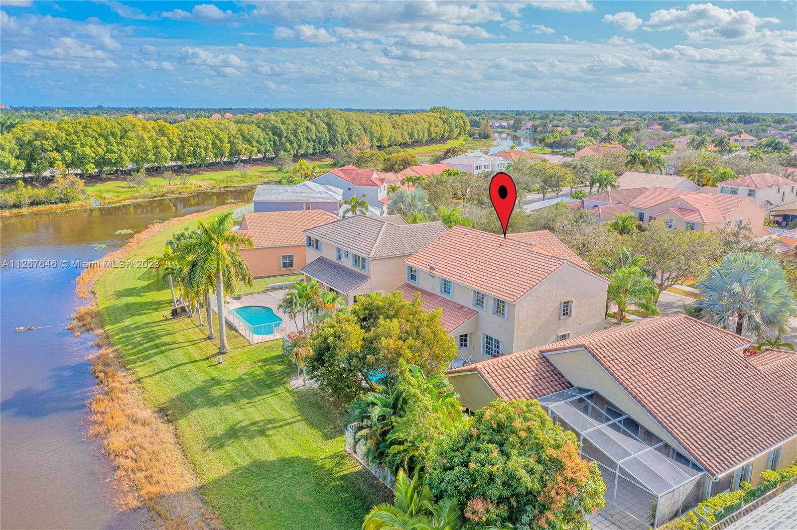 Highly desirable model home at the Falls. This beautiful property features 2 stories, 4 bedrooms, 2.5 bathrooms, 2 car garage, ample living room with high ceilings and lots of natural light, dining room, kitchen, spacious family room to entertain the entire family, laundry room and the most beautiful backyard to enjoy the true South Florida lifestyle with pool and lakeview. The master suite features a sitting area perfect for an office, yoga studio, or additional TV room. This stunning home was recently painted inside with no popcorn ceilings, brand new AC 2021, hurricane shutters and paver driveway. The Falls is a guard gated community with A+ rated schools, close to restaurants, coffee shops, parks, and much more!