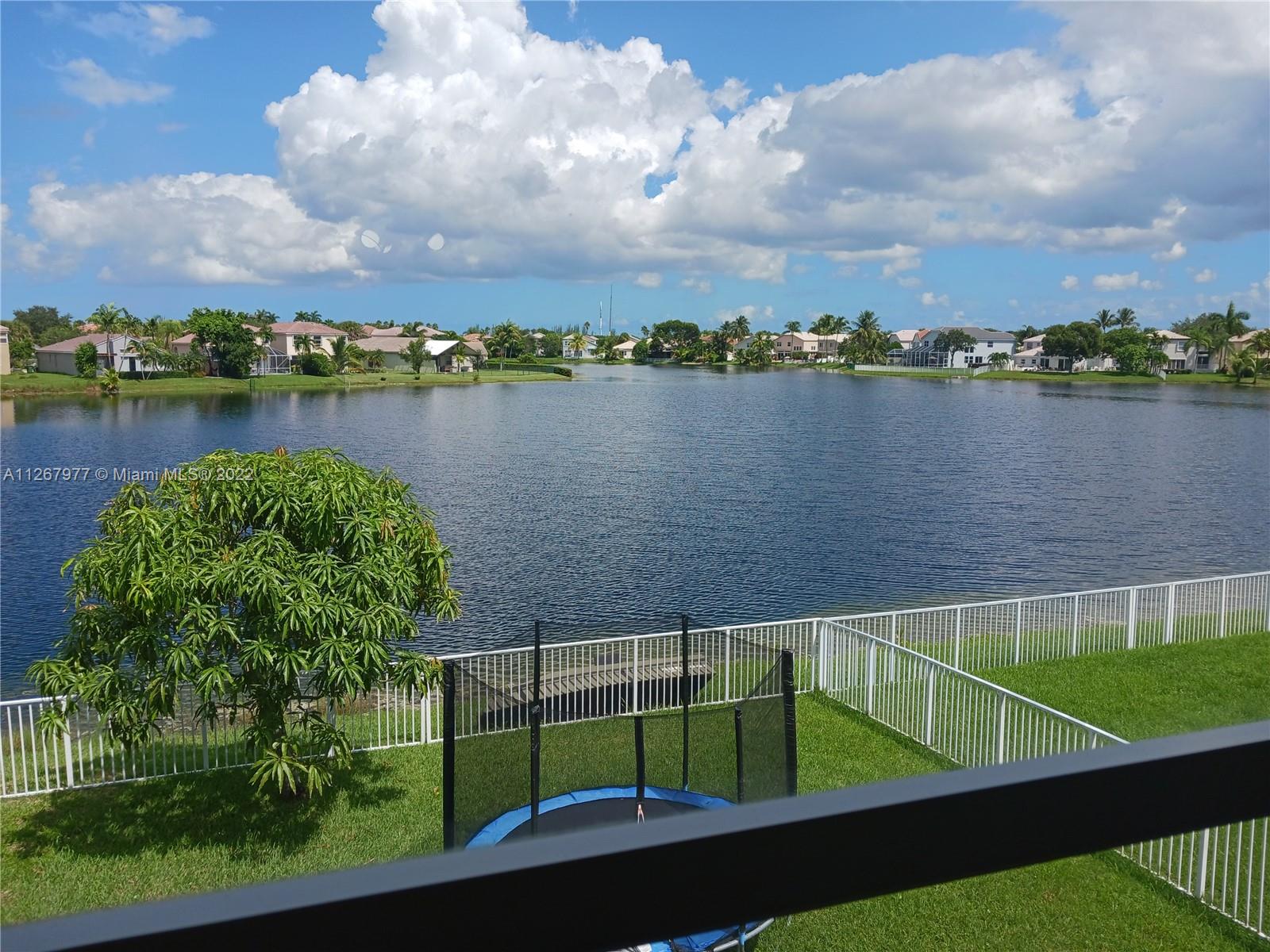 Towngate home on premium lot with wide open lake view. West of I-75 between Pines Boulevard and Sheridan street. This Minto built home is constructed of all concrete block and cement subfloor throughout. New Rheem A/C unit just installed, Tesla charging station in garage, brand new garage door and lift system, accordion hurricane shutters and some new appliances including the refrigerator, range and washing machine. Association has installed new mailboxes for the entire community.