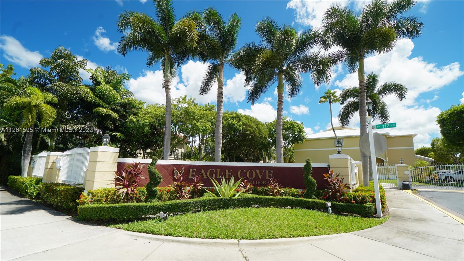 Beautiful 2-2 1/2 Lake Front Townhouse with Garage at Gated Community, Eagle Cove at DORAL. Very Well located, close to A+ Schools, Turnpike, Banks, Starbucks, restaurants and much more. Nice Patio and very quiet Community, family oriented. 2 Entrances Via 112th and 109th Ave.