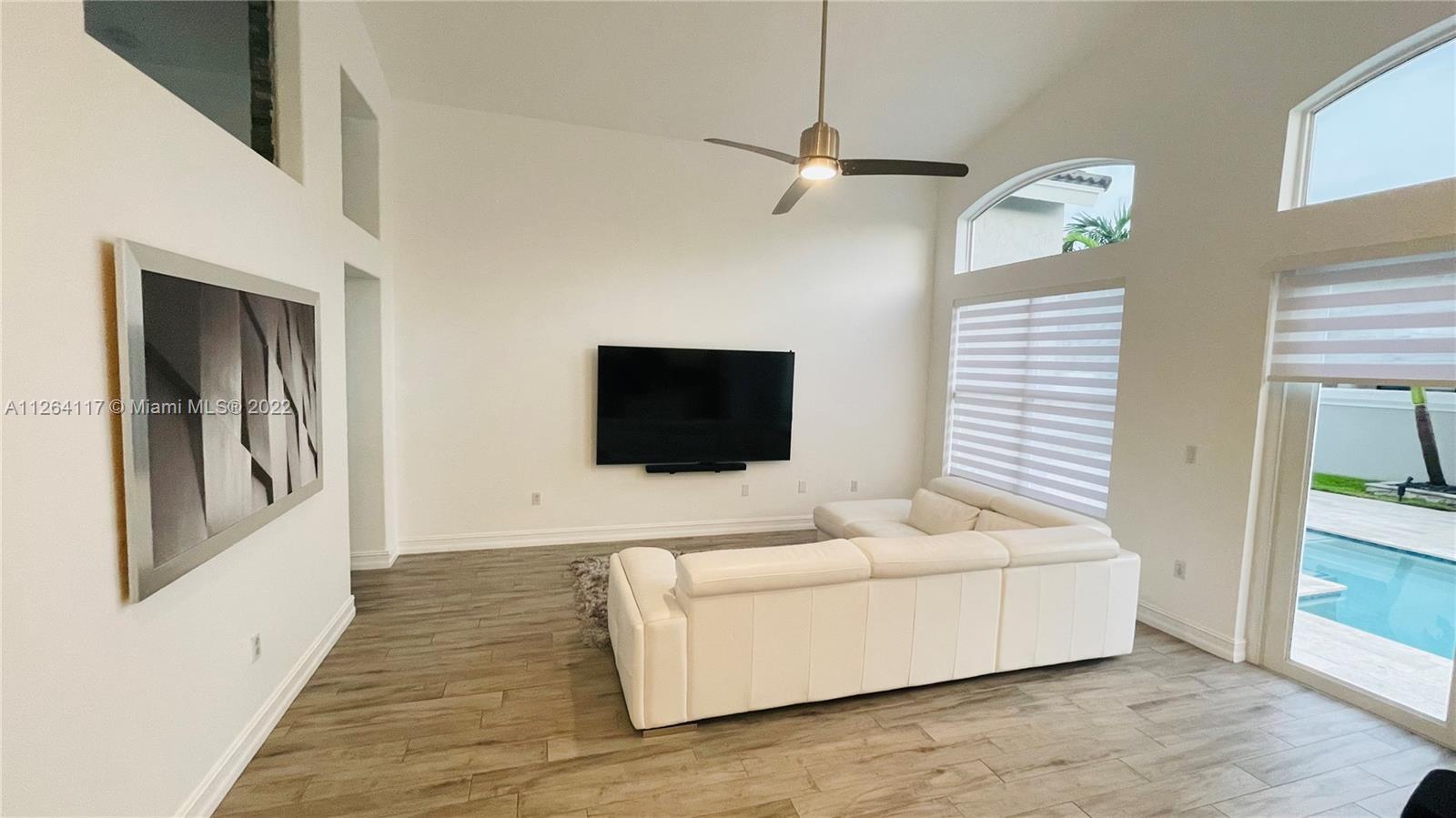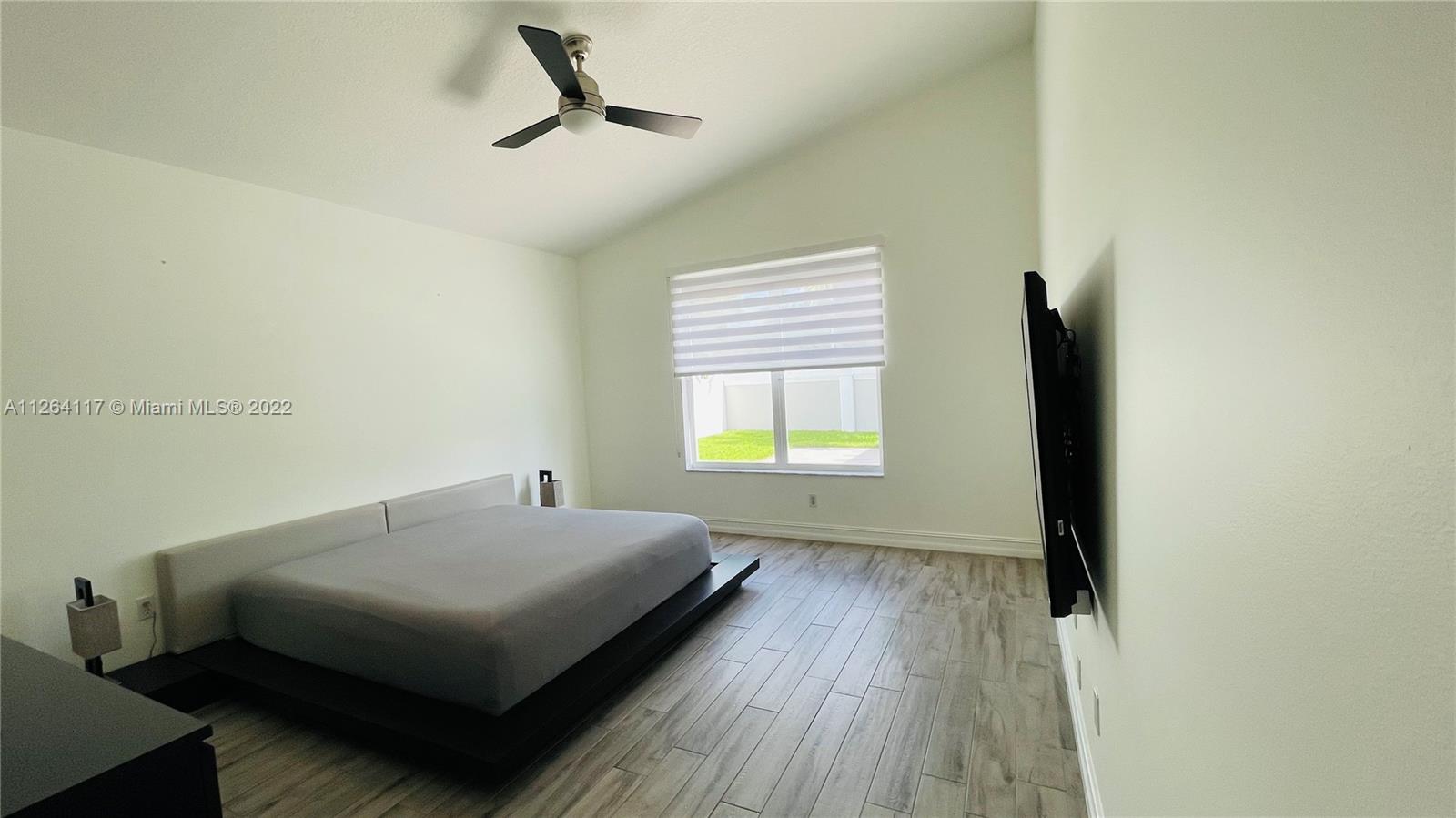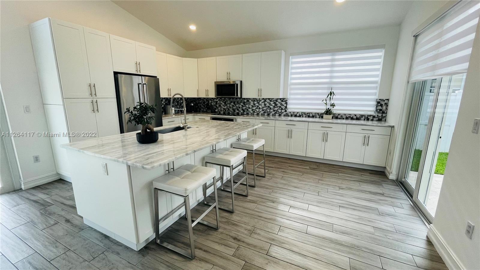 This luxurious, modern, dream home in gated Sunset Lakes features 3 bed/2.5 bath, interior laundry room & a 2 car garage. The spacious fenced in backyard features a pergola with a salt water pool system built in 2019, pool heater, LED multicolor pool lighting and a separate fenced in side patio with travatine pavers. The spa-like master bath features a double sink vanity, large glass enclosed shower, soaking tub and walk-in custom California closet. The spacious kitchen includes KitchenAid built in stainless steel appliances & an oversized quartzite island. Zebra blinds, custom closet doors, custom closets, hurricane impact windows & doors, new Carrier AC unit, LED lighting throughout, upgraded security system, elegant zen landscaping with up lighting and much more.